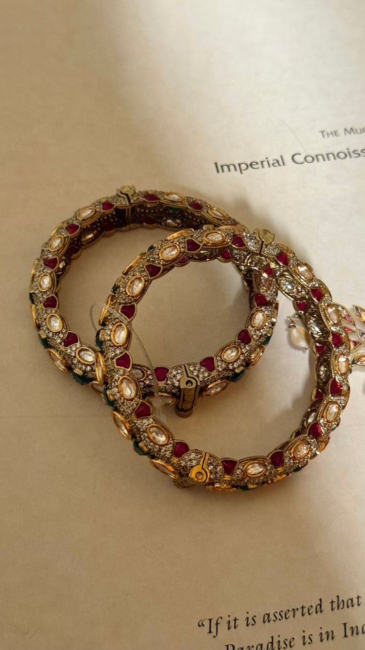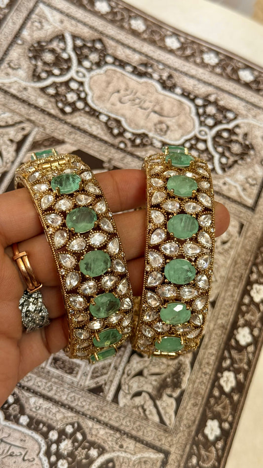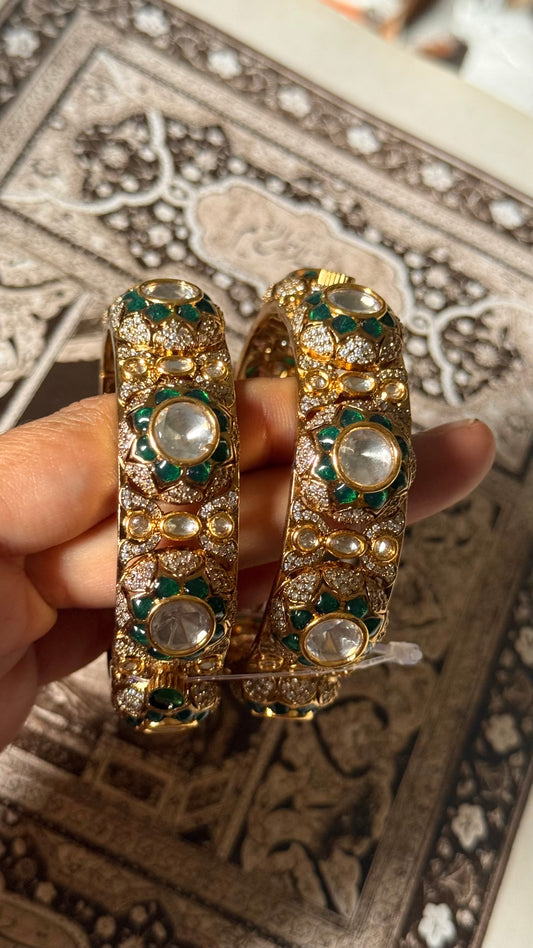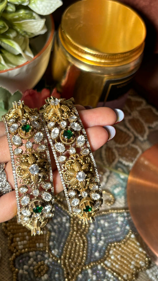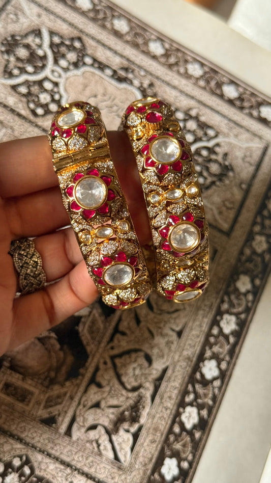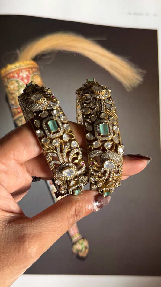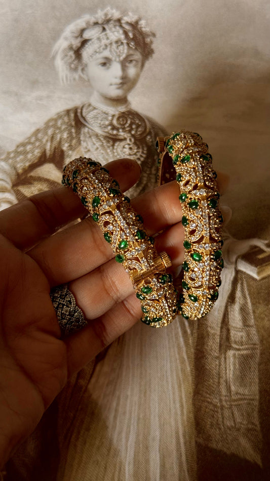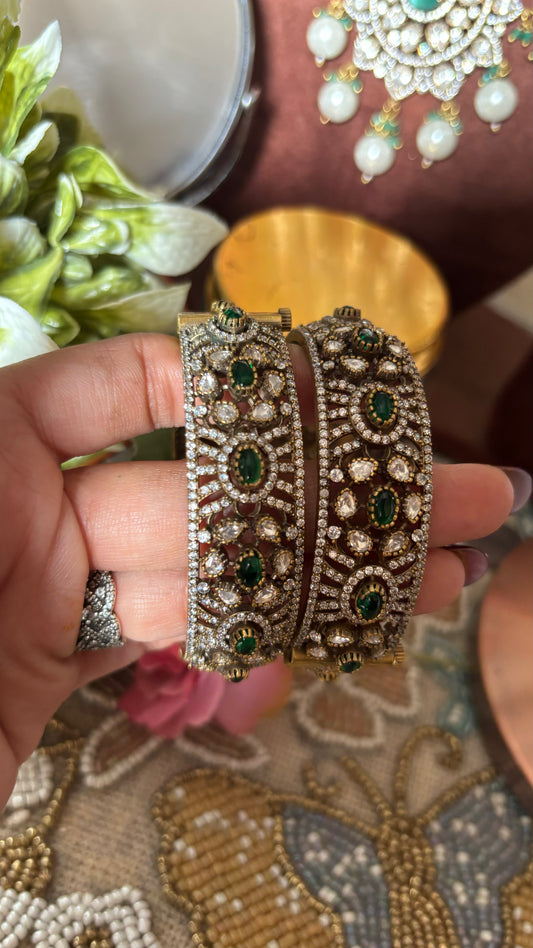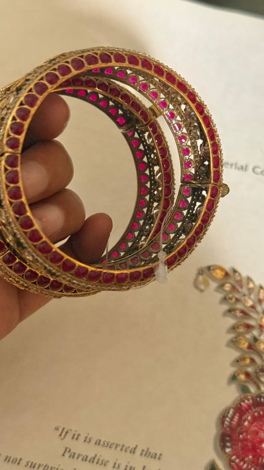 Emerald doublet & rani pink moissanite Victorian openable bangle