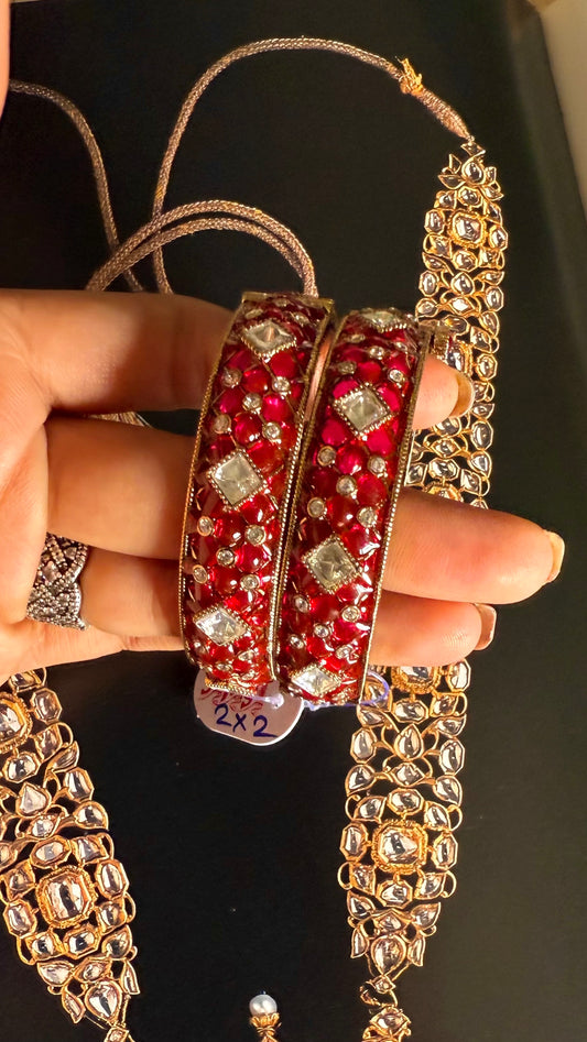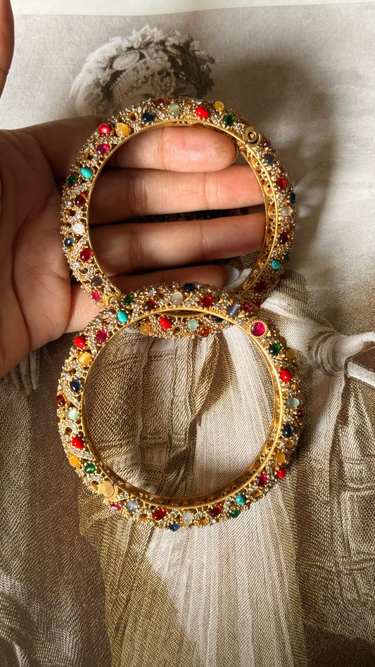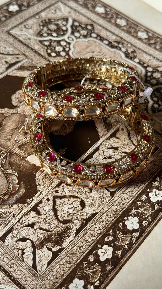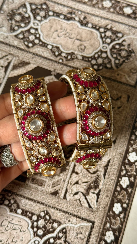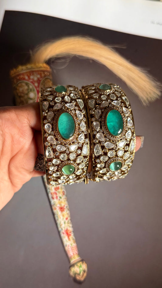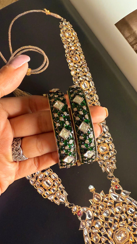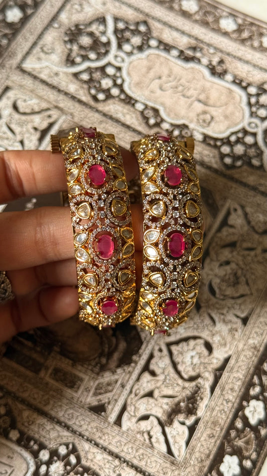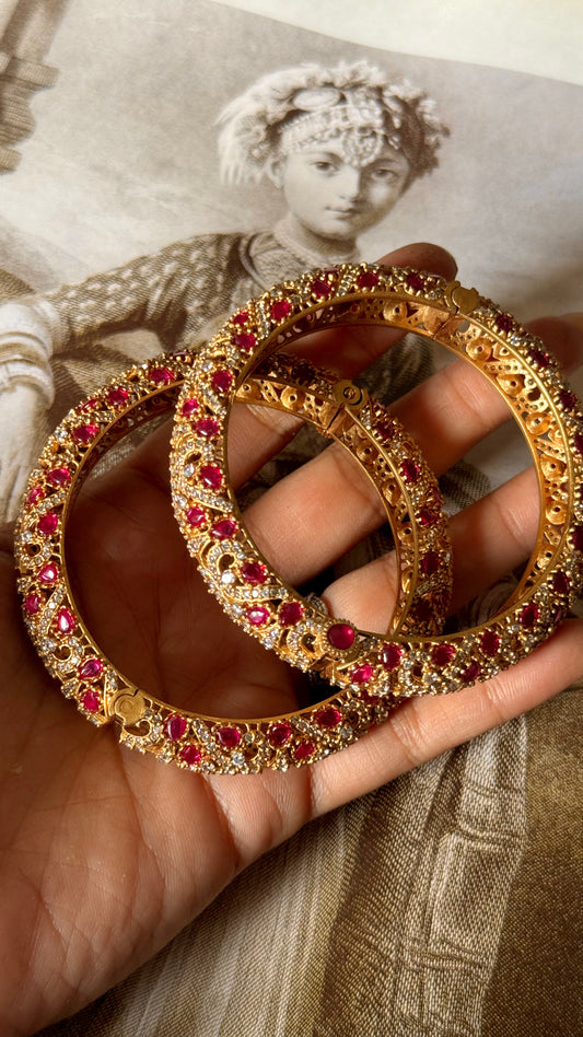 Emerald doublet & rani pink moissanite Victorian openable bangle