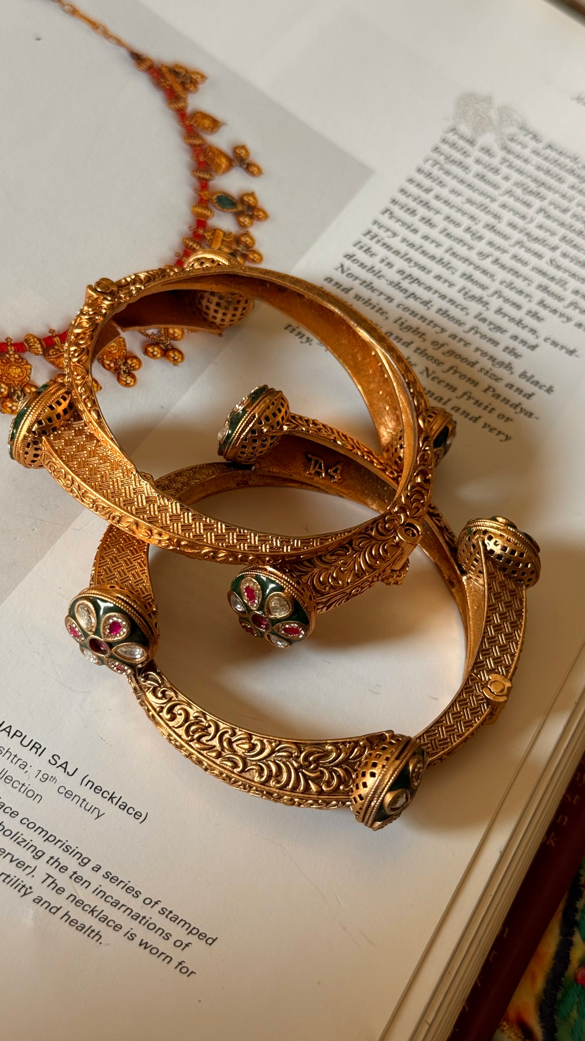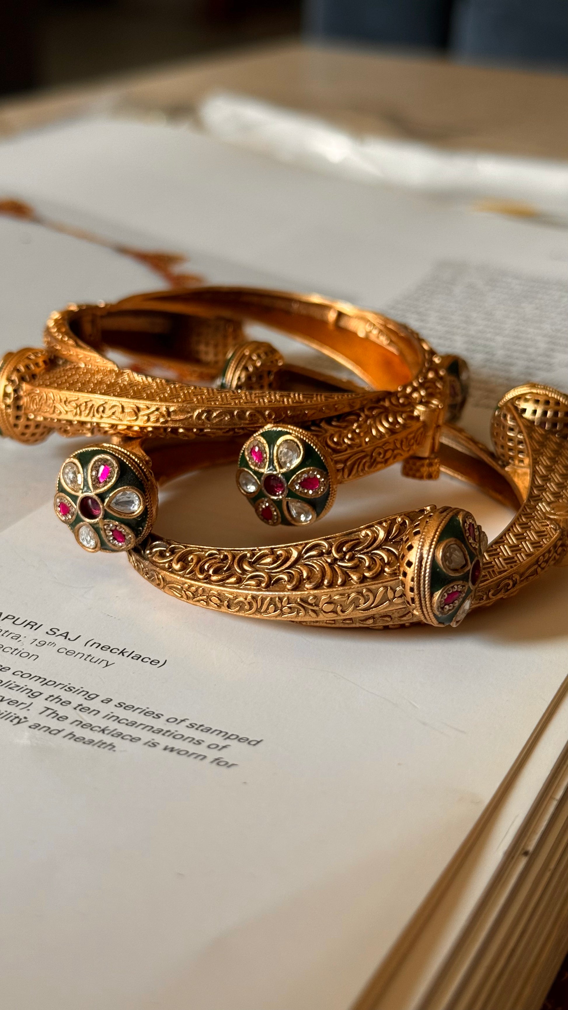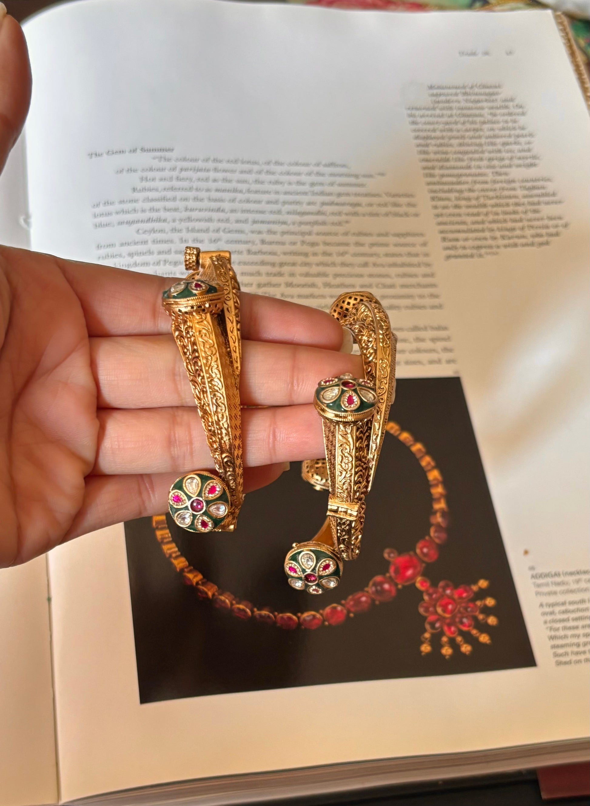 Polki floral emerald & ruby bangle