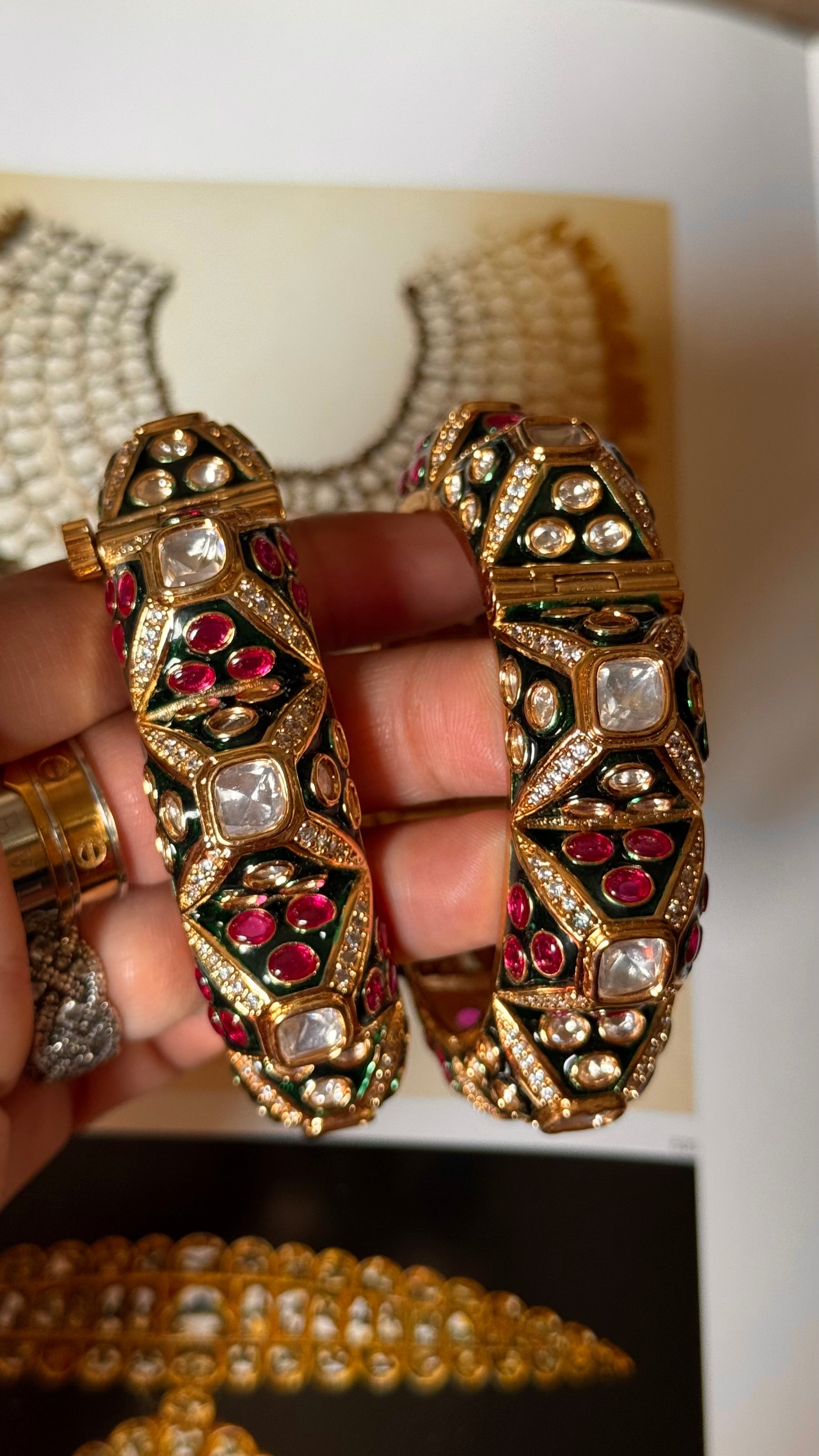 Emerald and ruby meenakari statement bangles