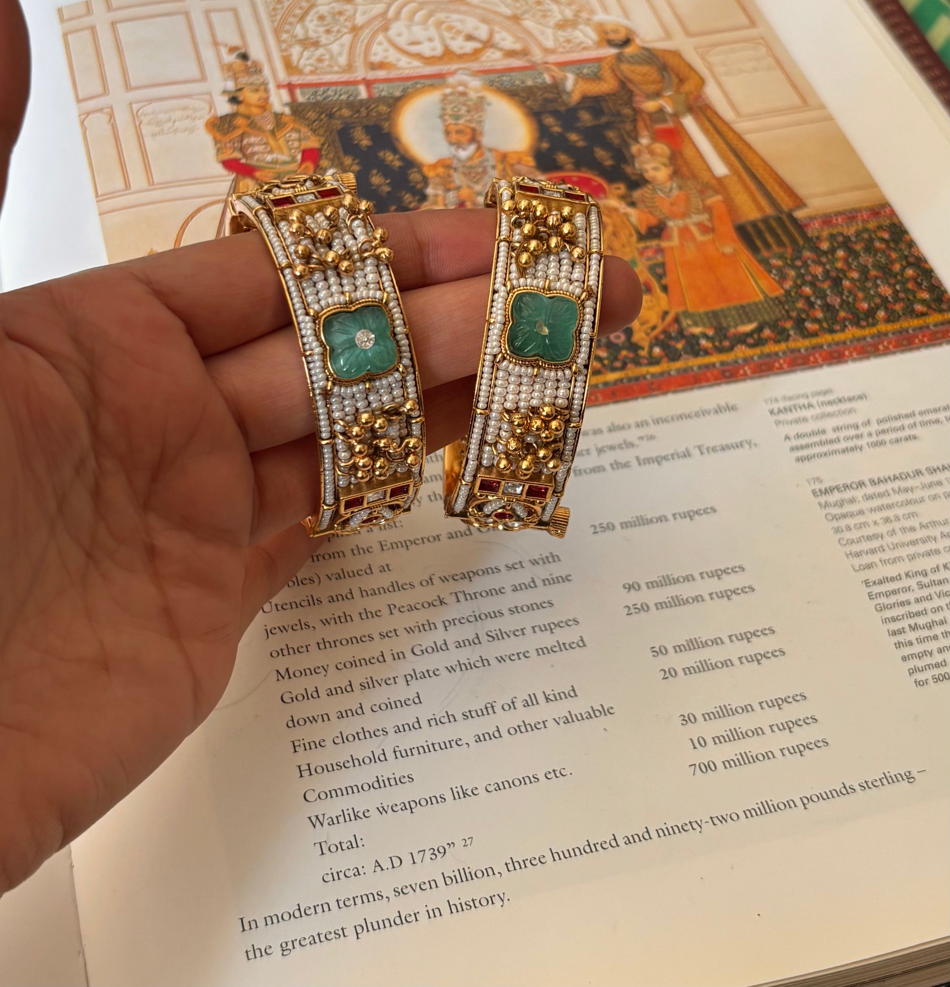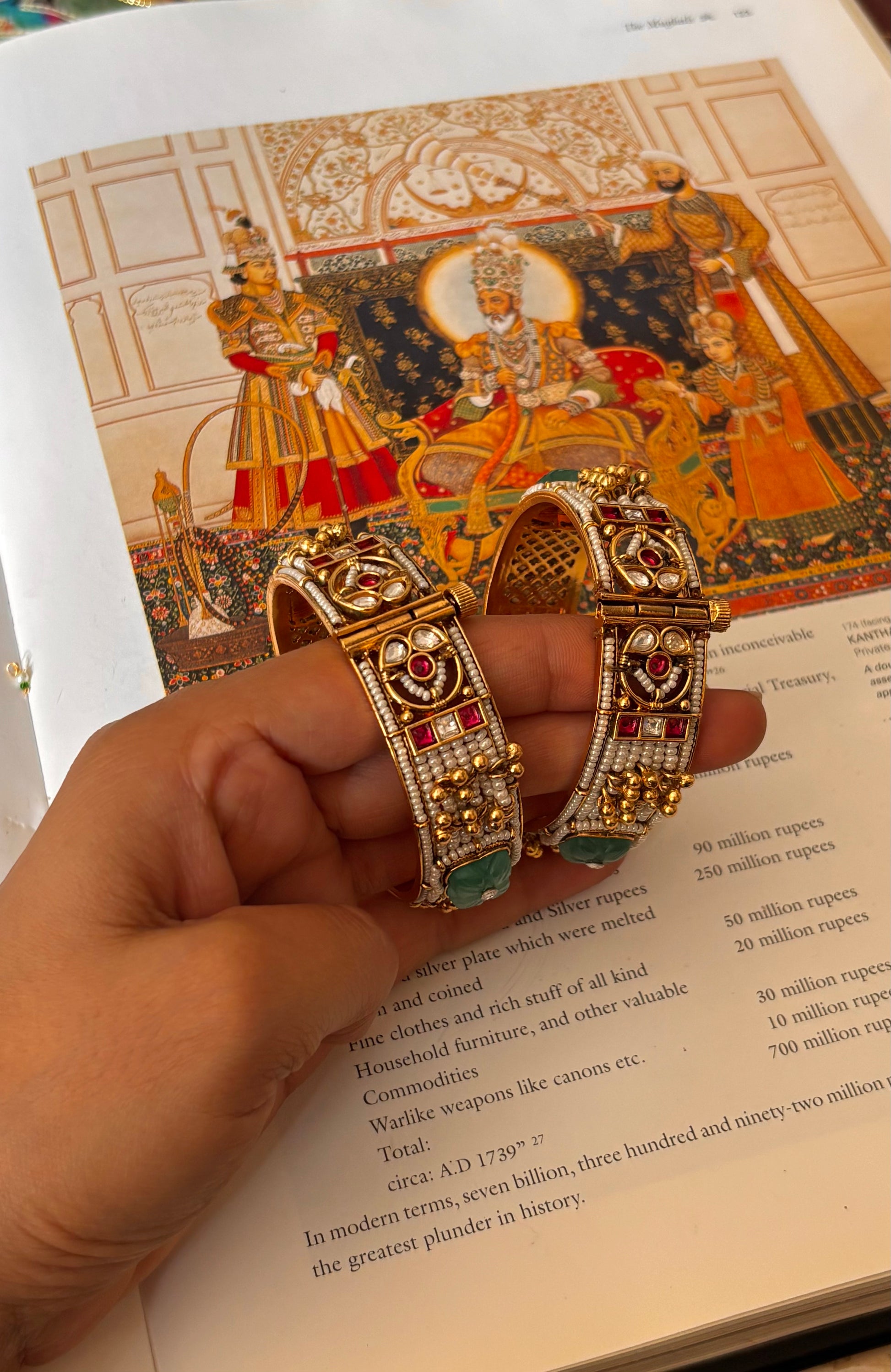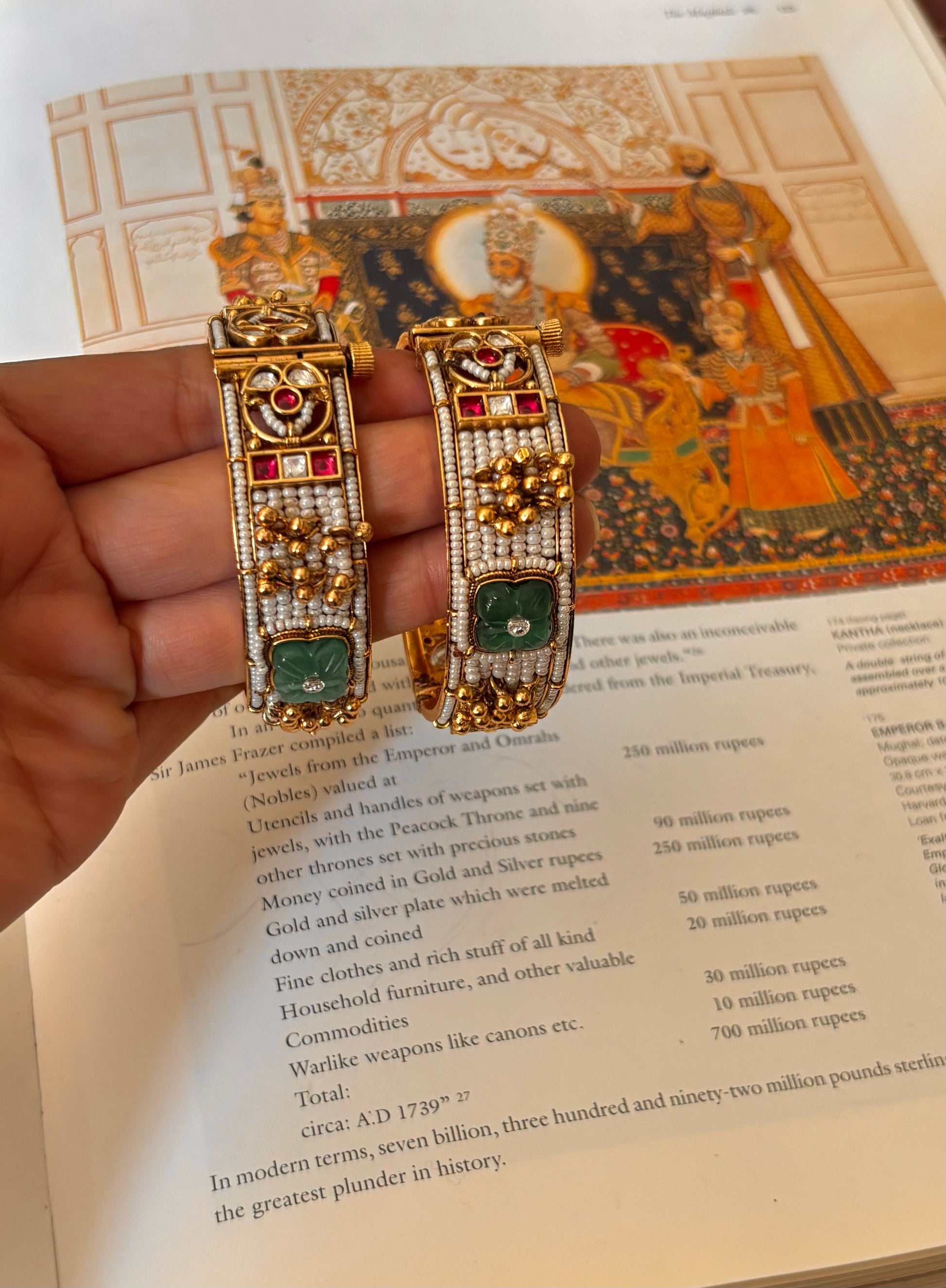 Rajwadi pearl detailing & mint doublet bangles