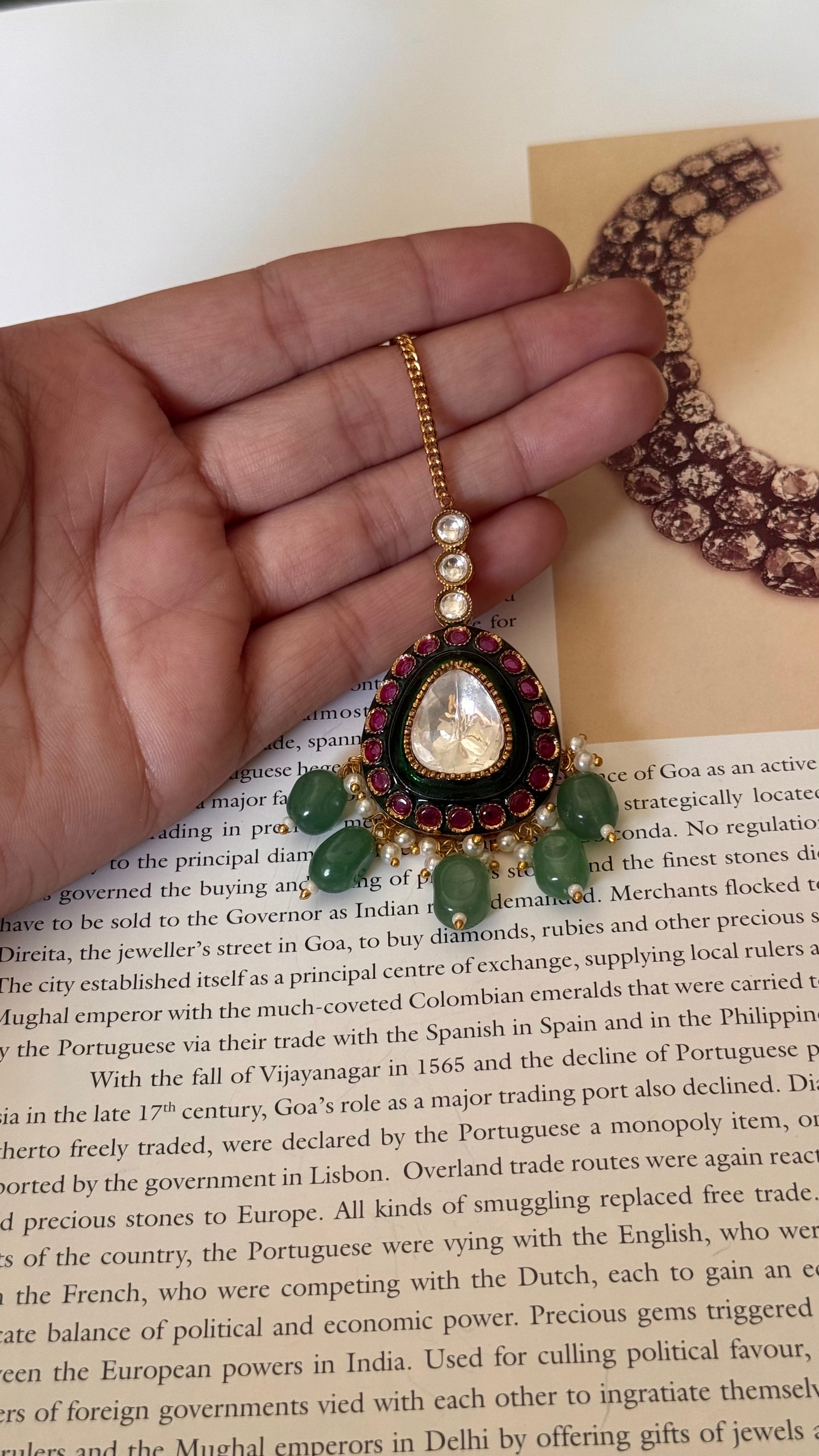 Emerald mint ruby polki maangtika