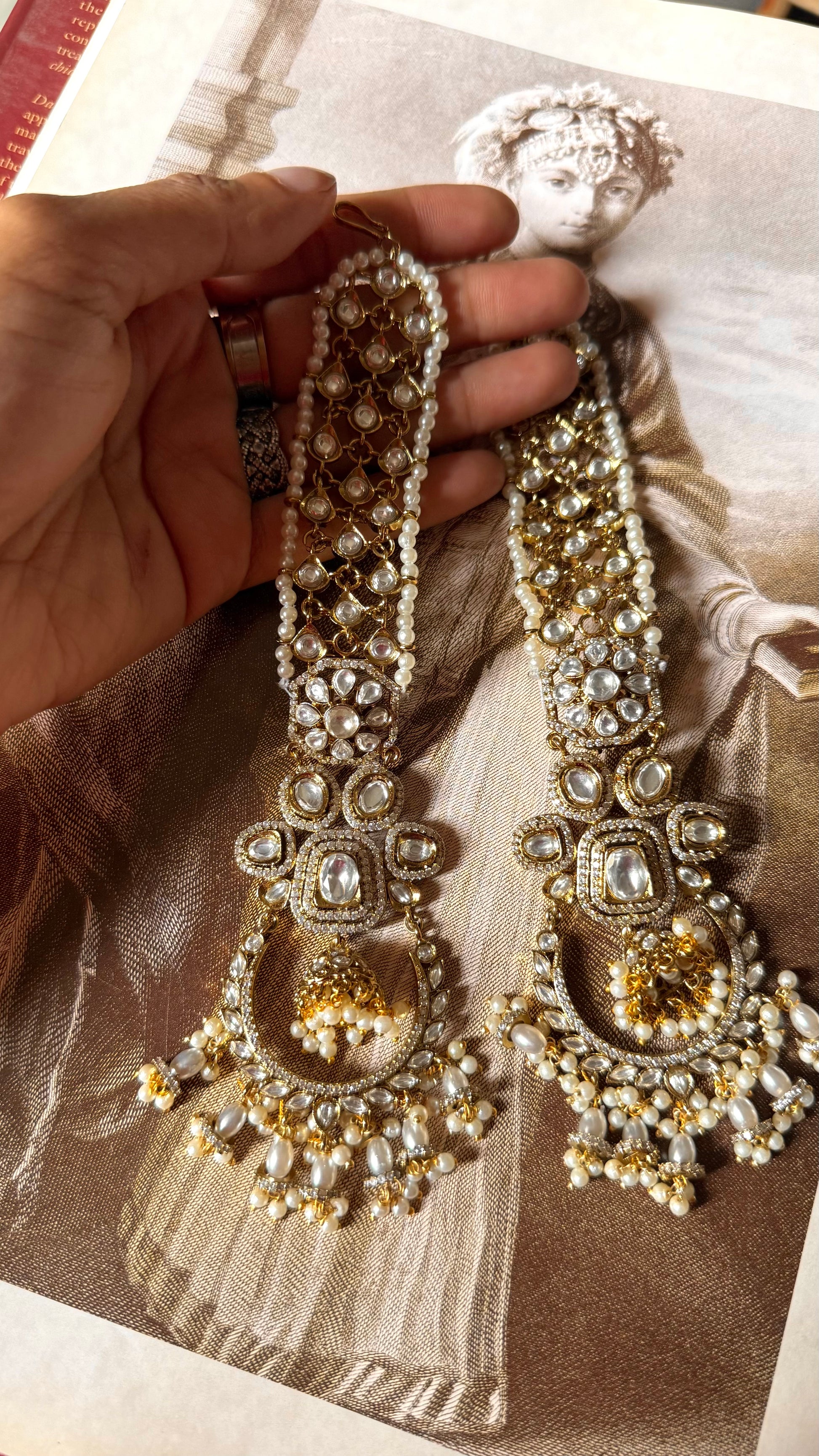 Mughal designs inspired polki Chandbali with kaanchain