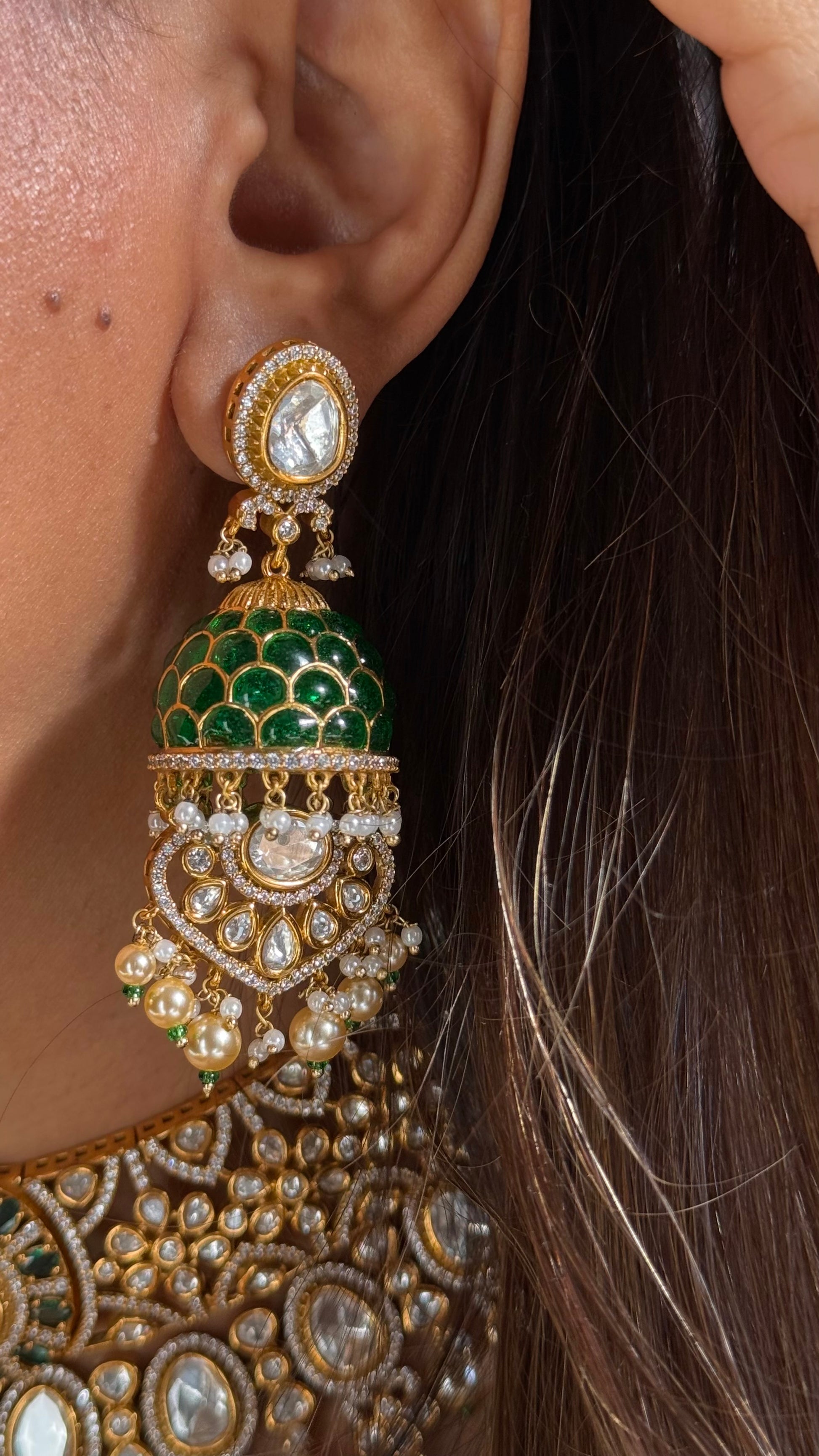 Emerald dual layer real Moissanite takkar work bridal choker