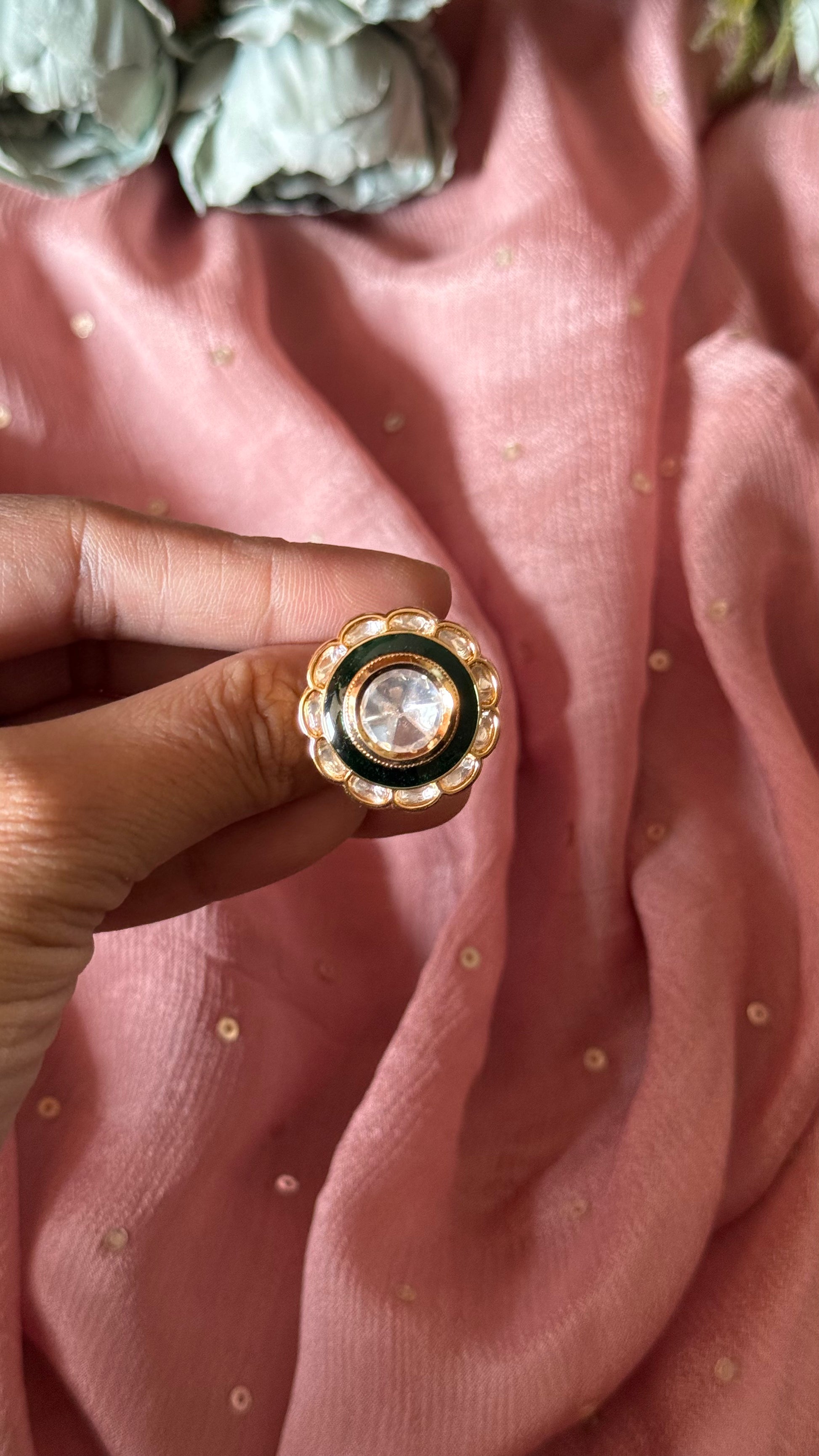 Emerald adjustable meernakari polki ring