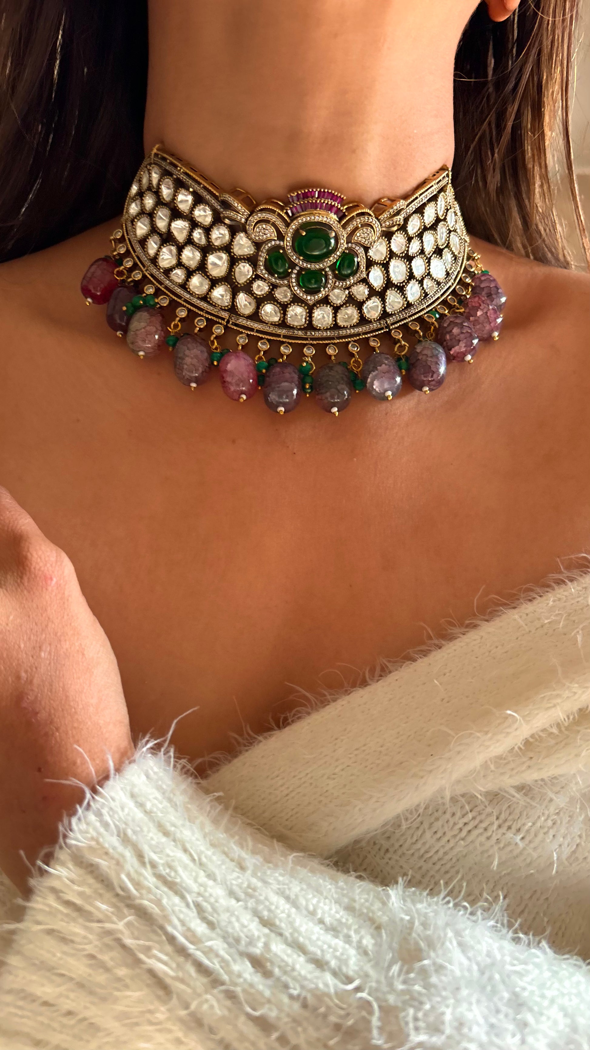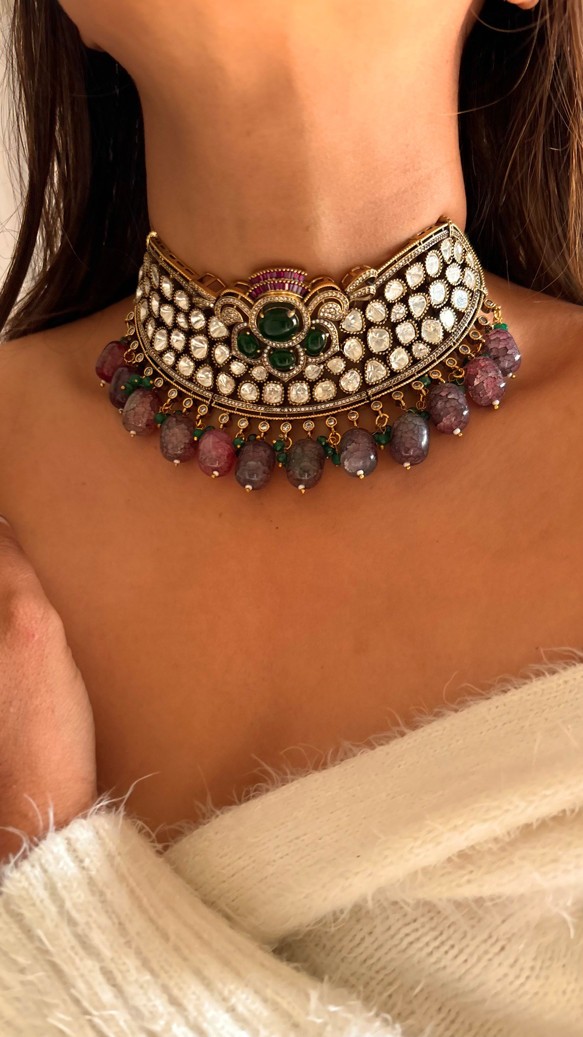 Moissanite onyx beads designer choker
