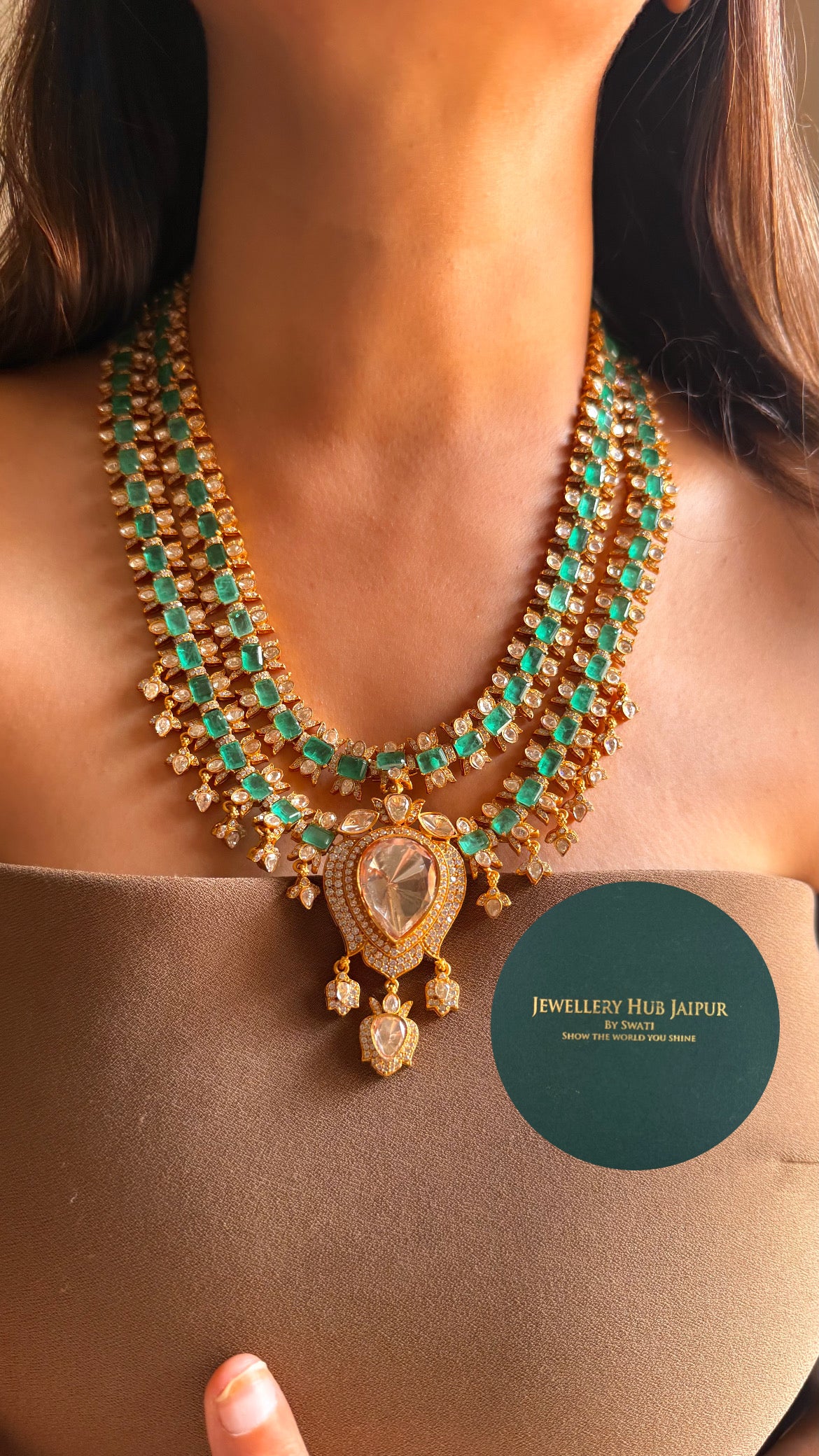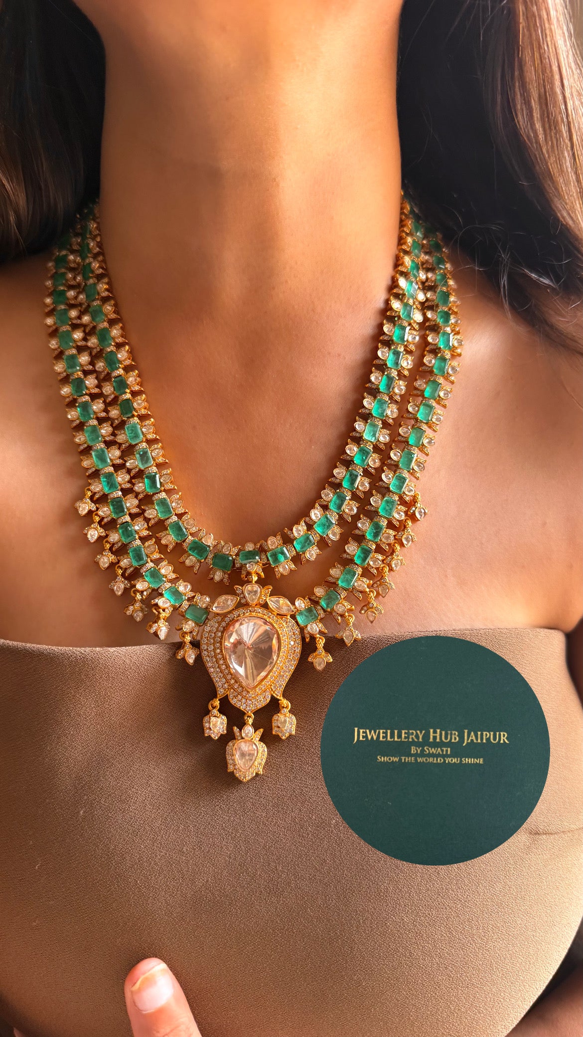 Emerald doublet dual layered moissanite polki mid length set
