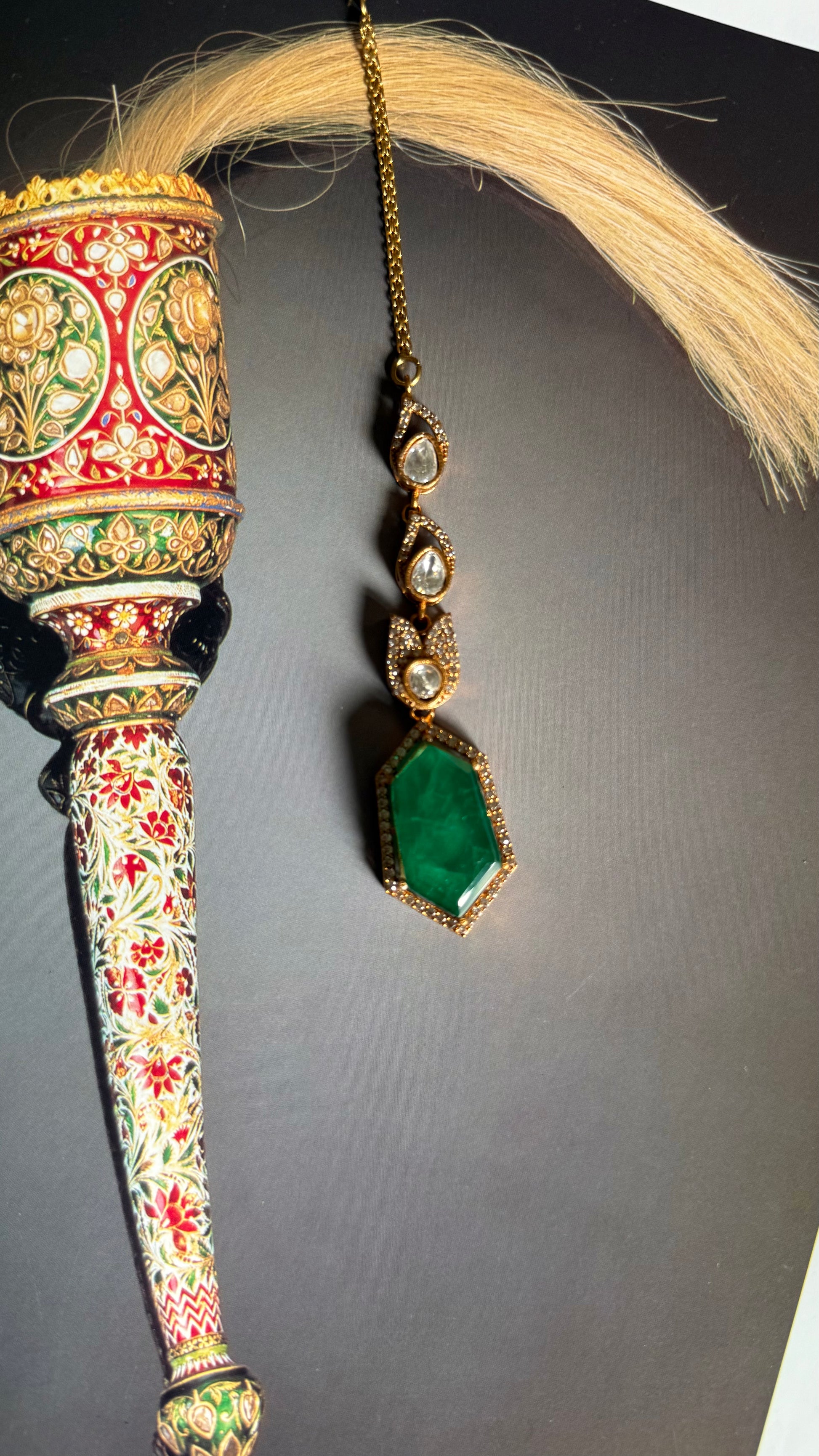 Emerald doublet moissanite maangtika