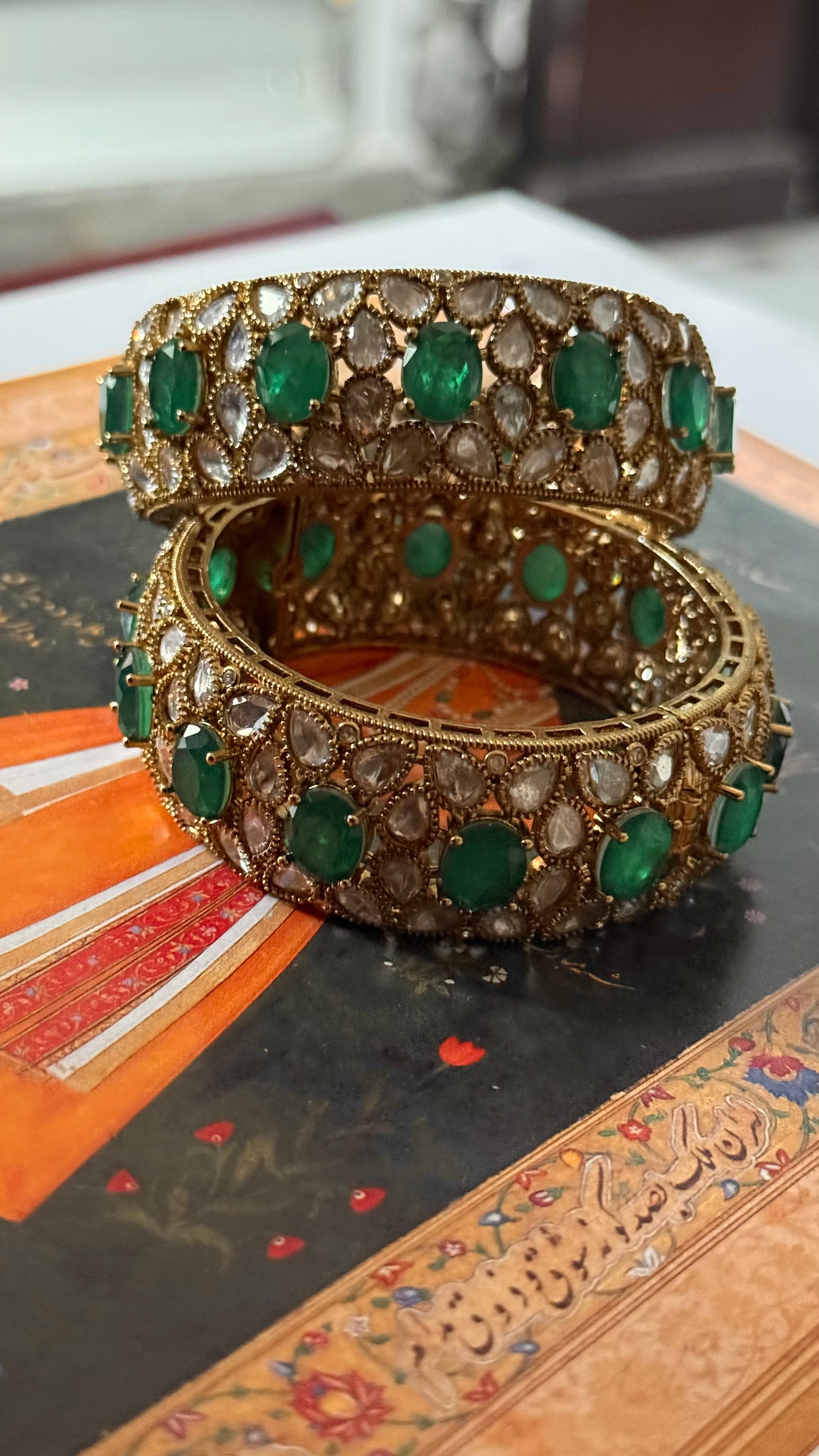 Emerald doublet polki Victorian openable bangle