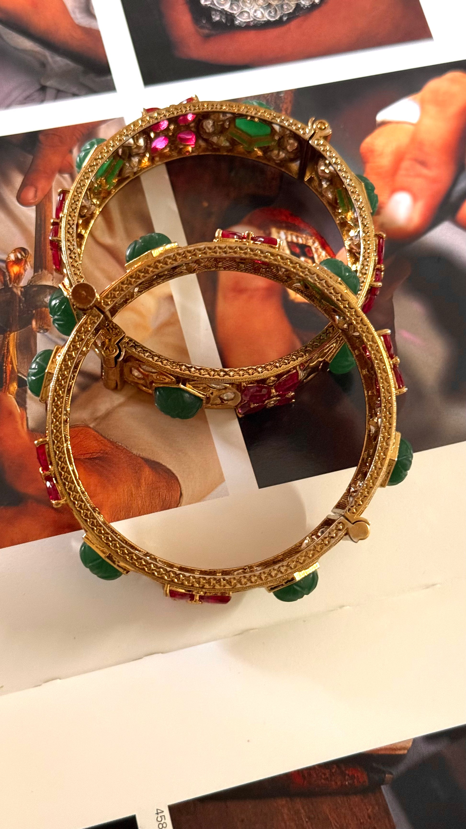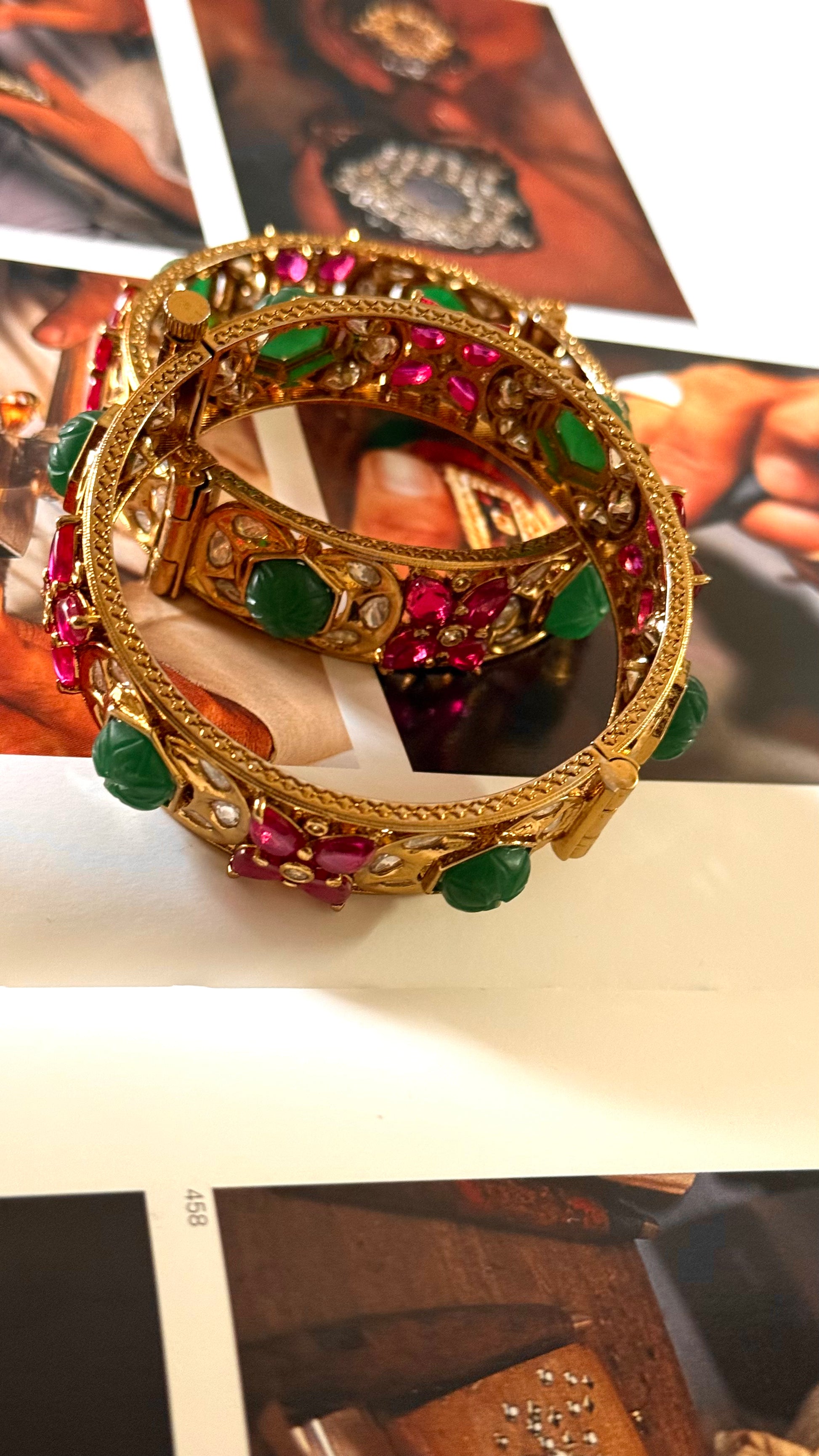 Emerald inlay & rani pink floral openable bangle