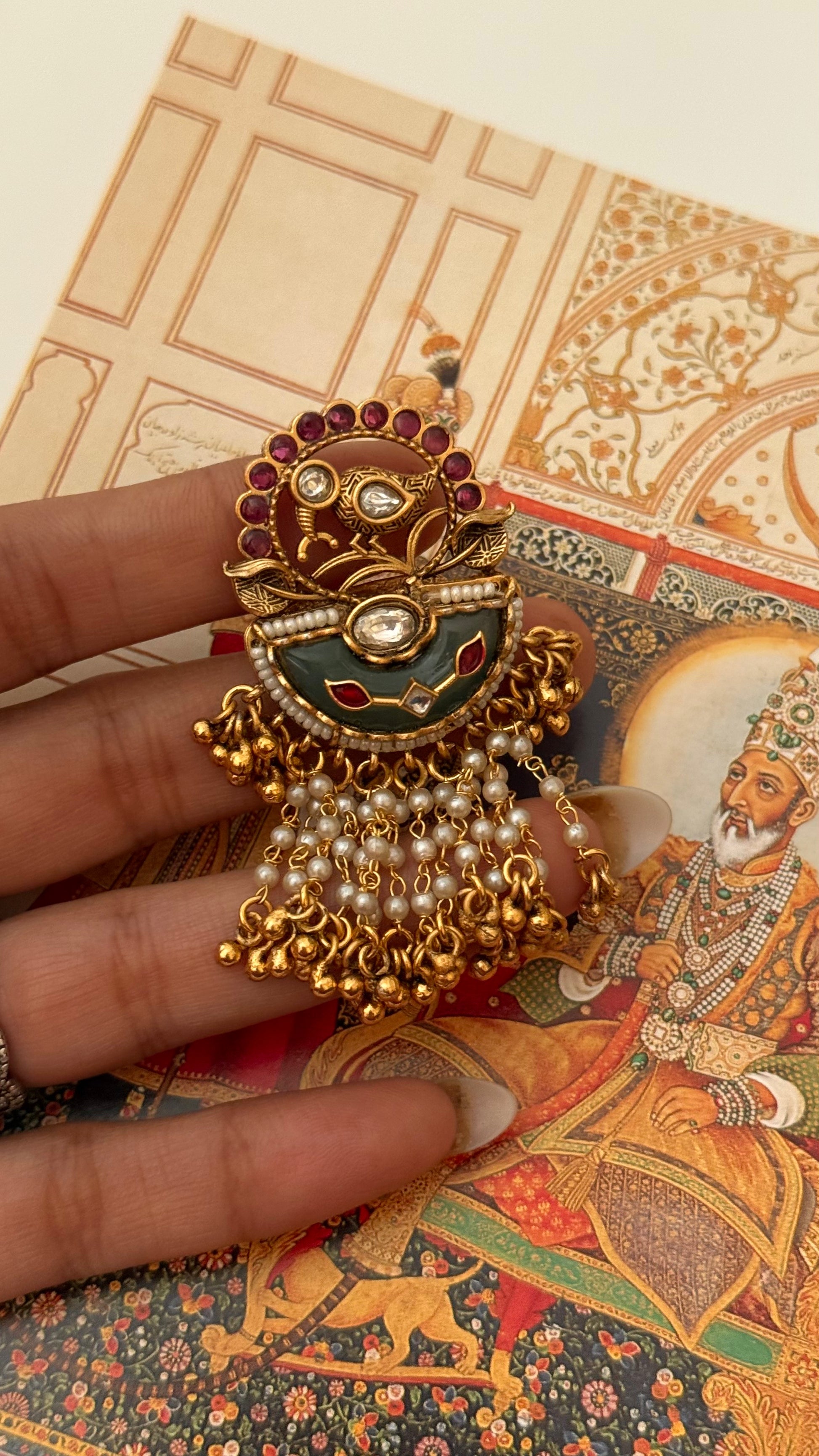 Emerald inlay & rani pink peacock rajwada adjustable ring