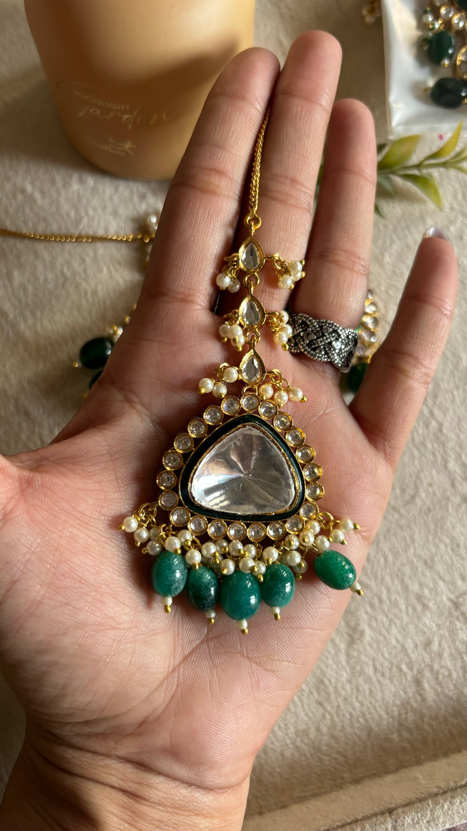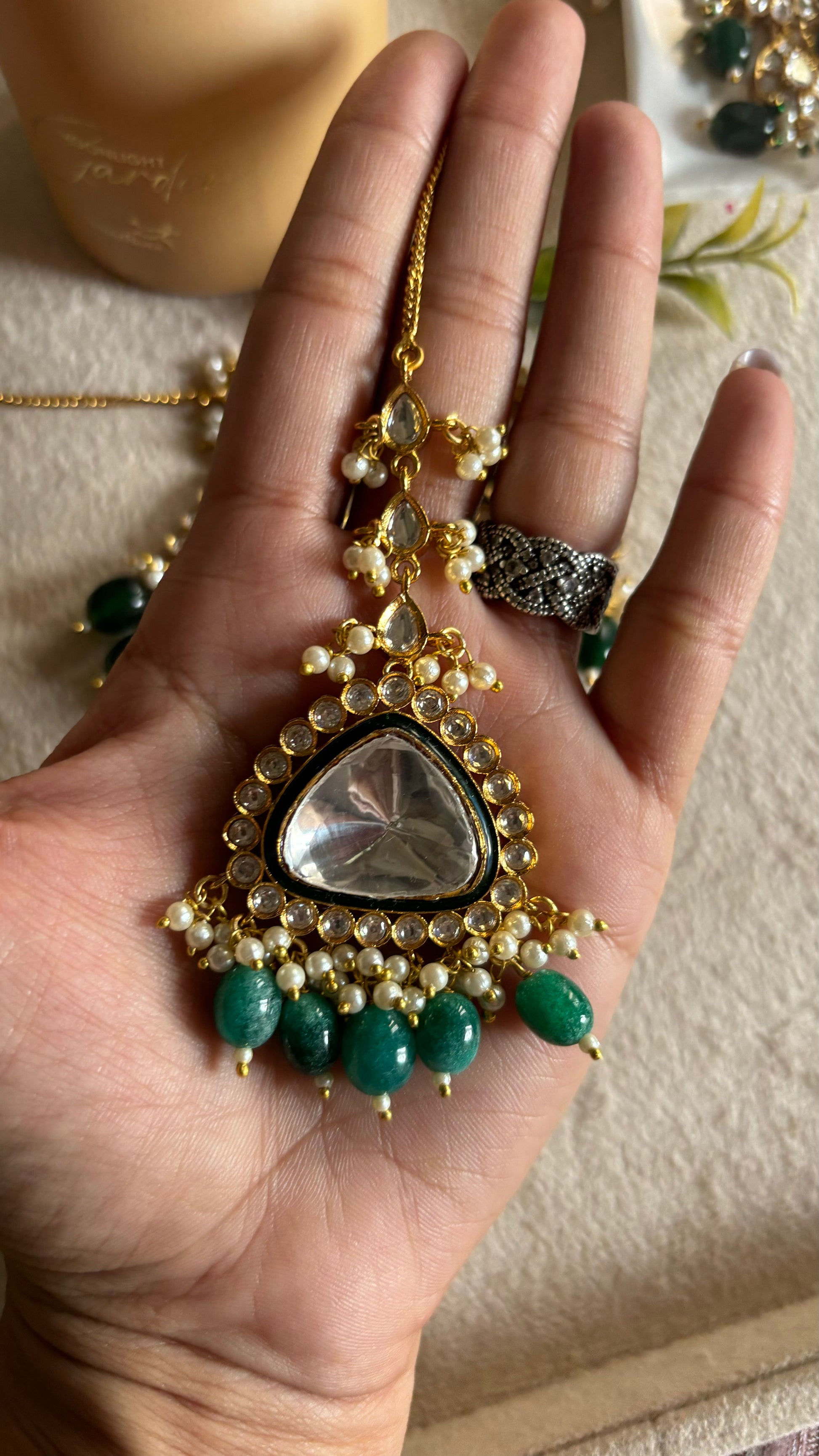 uncut meenakari Emerald maangtika