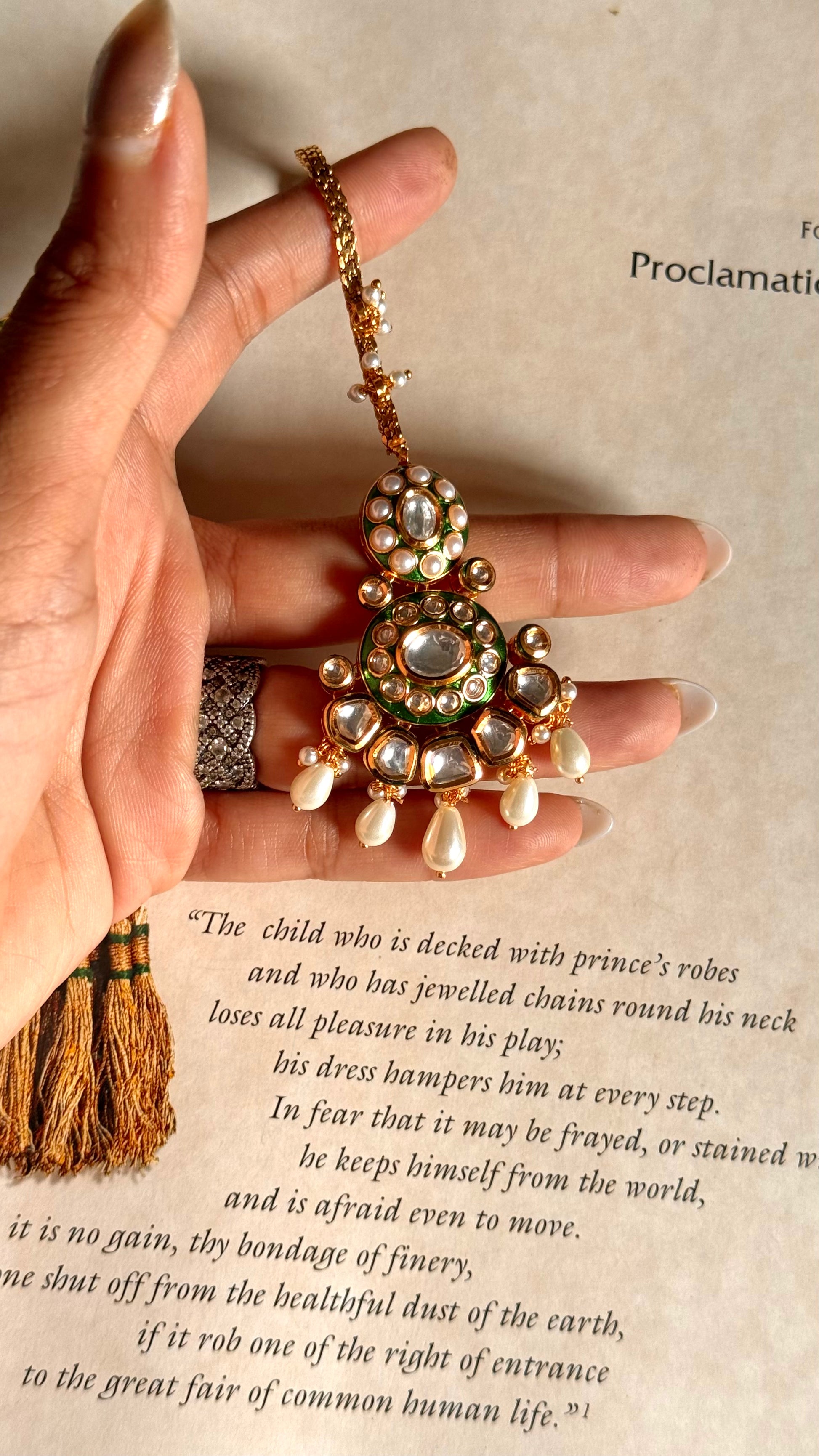 Emerald meenakari moissanite maangtika