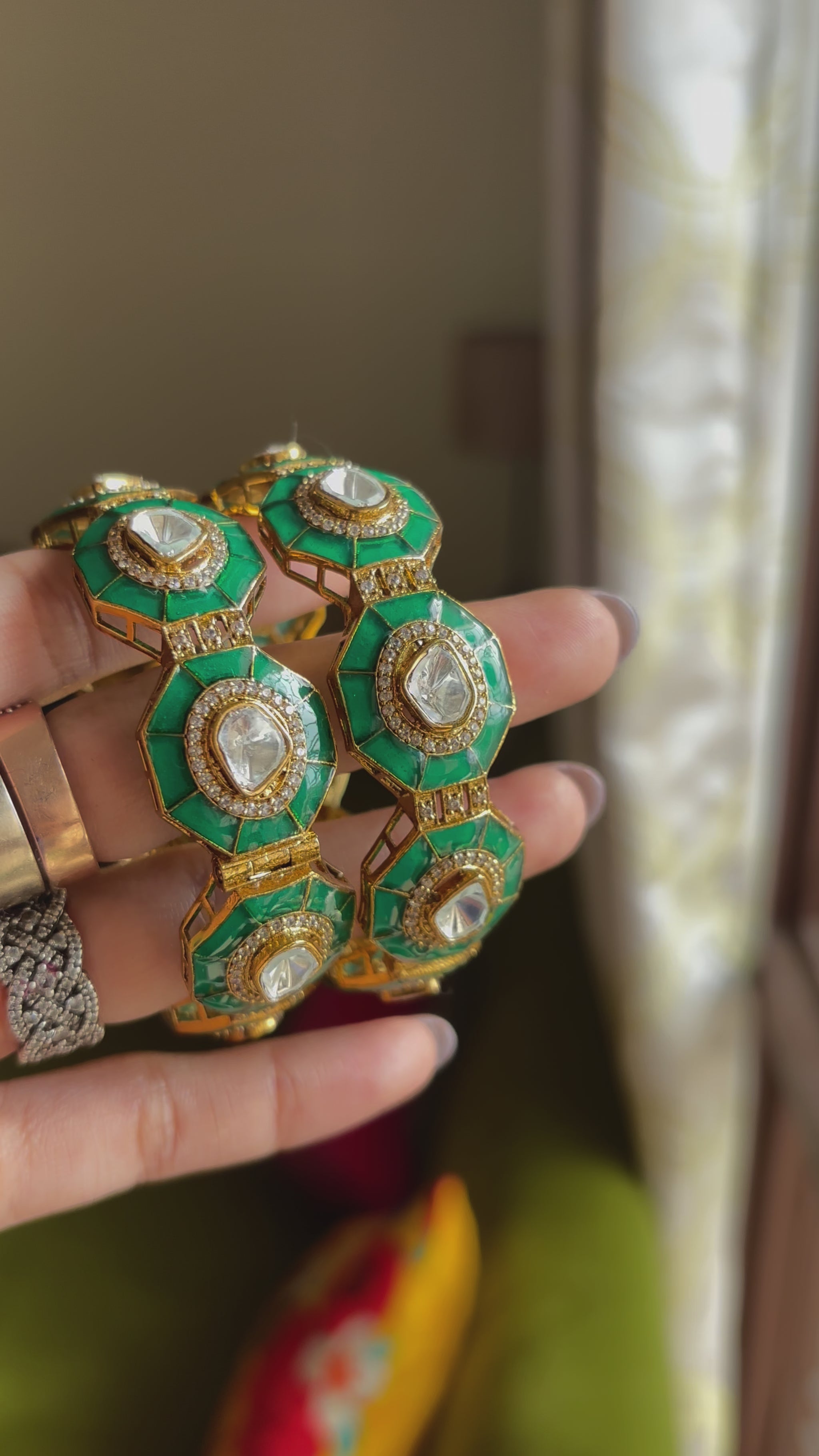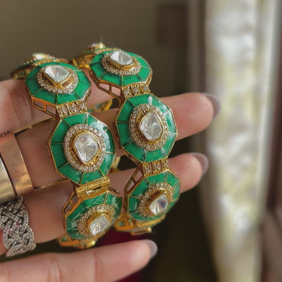 Emerald Moissanite polki bangles