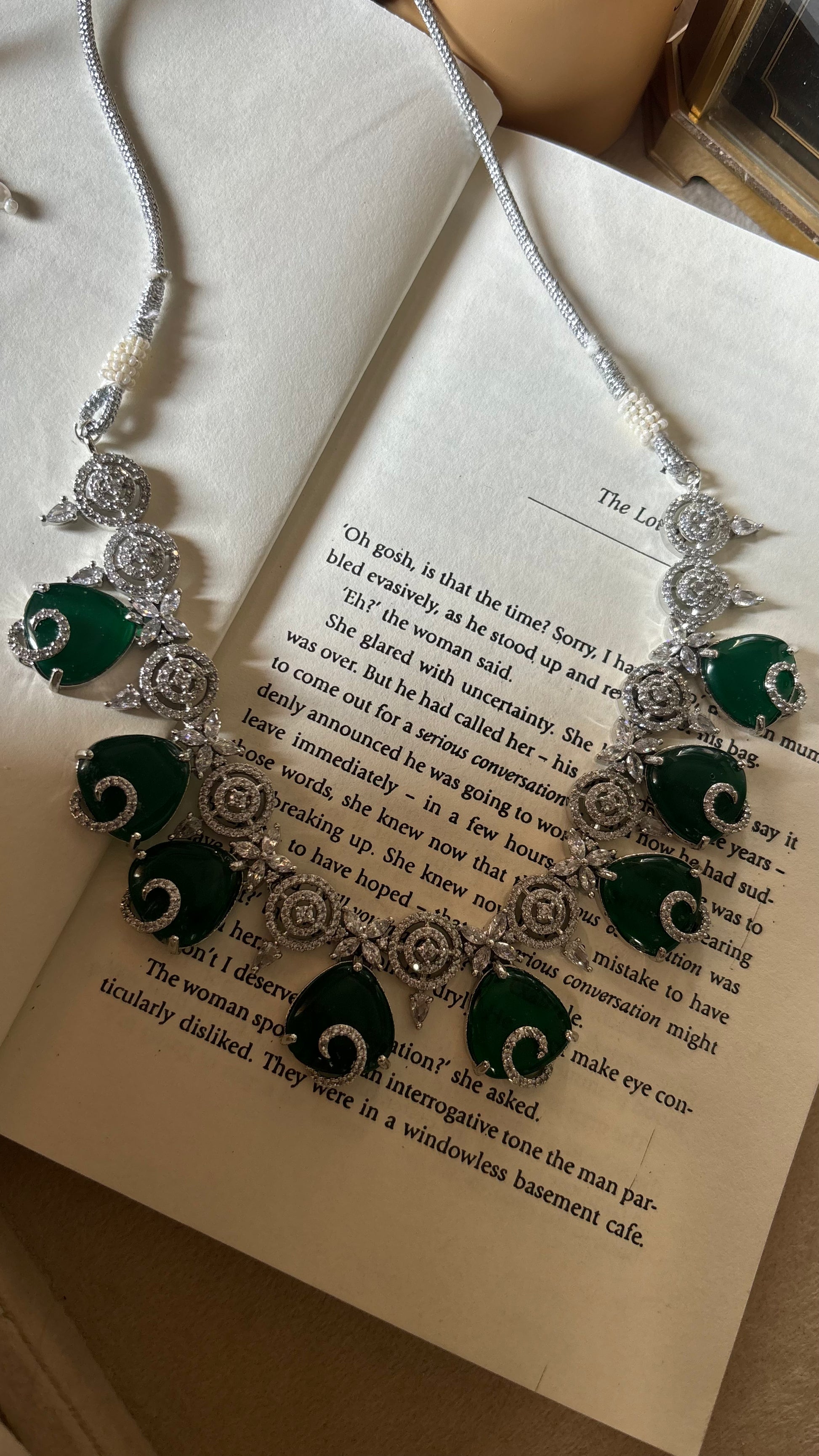 Emerald diamond collar necklace set