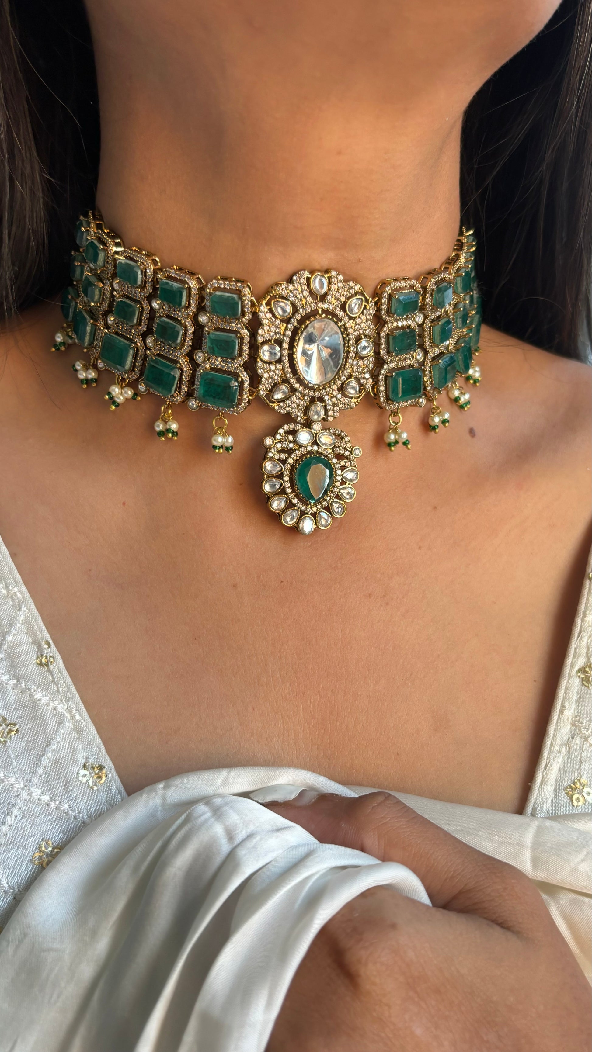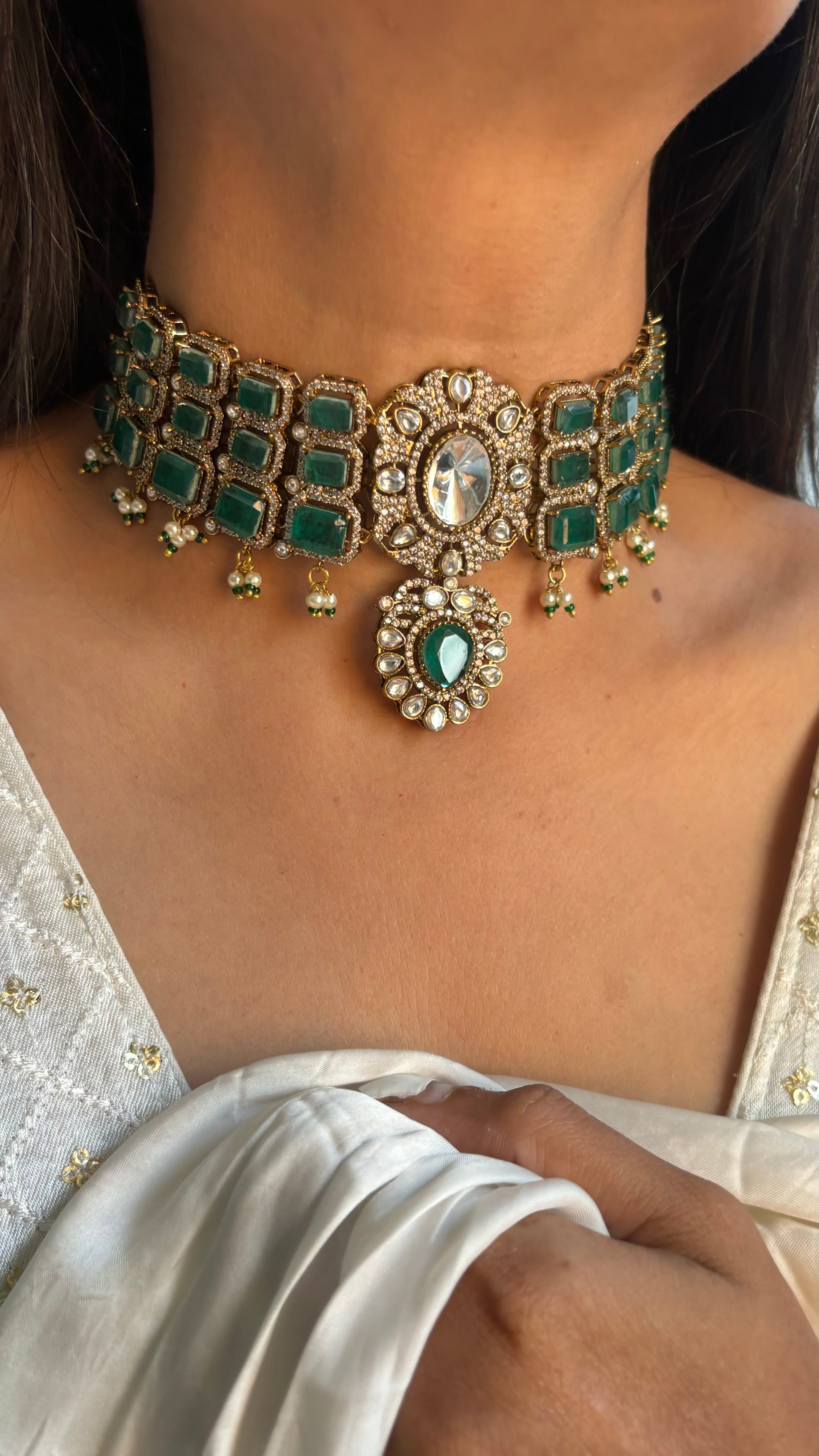 Emerald doublet victorian choker