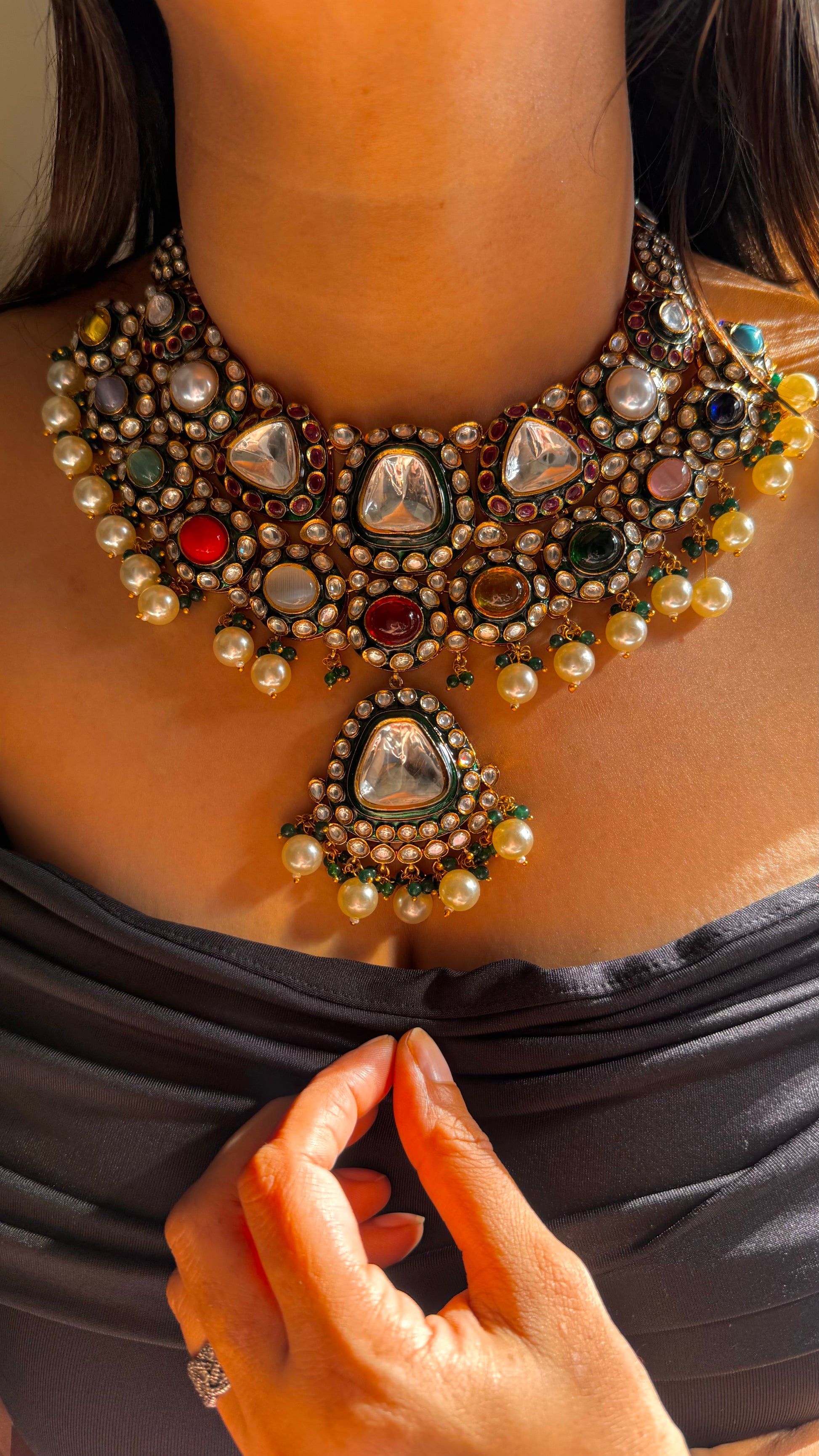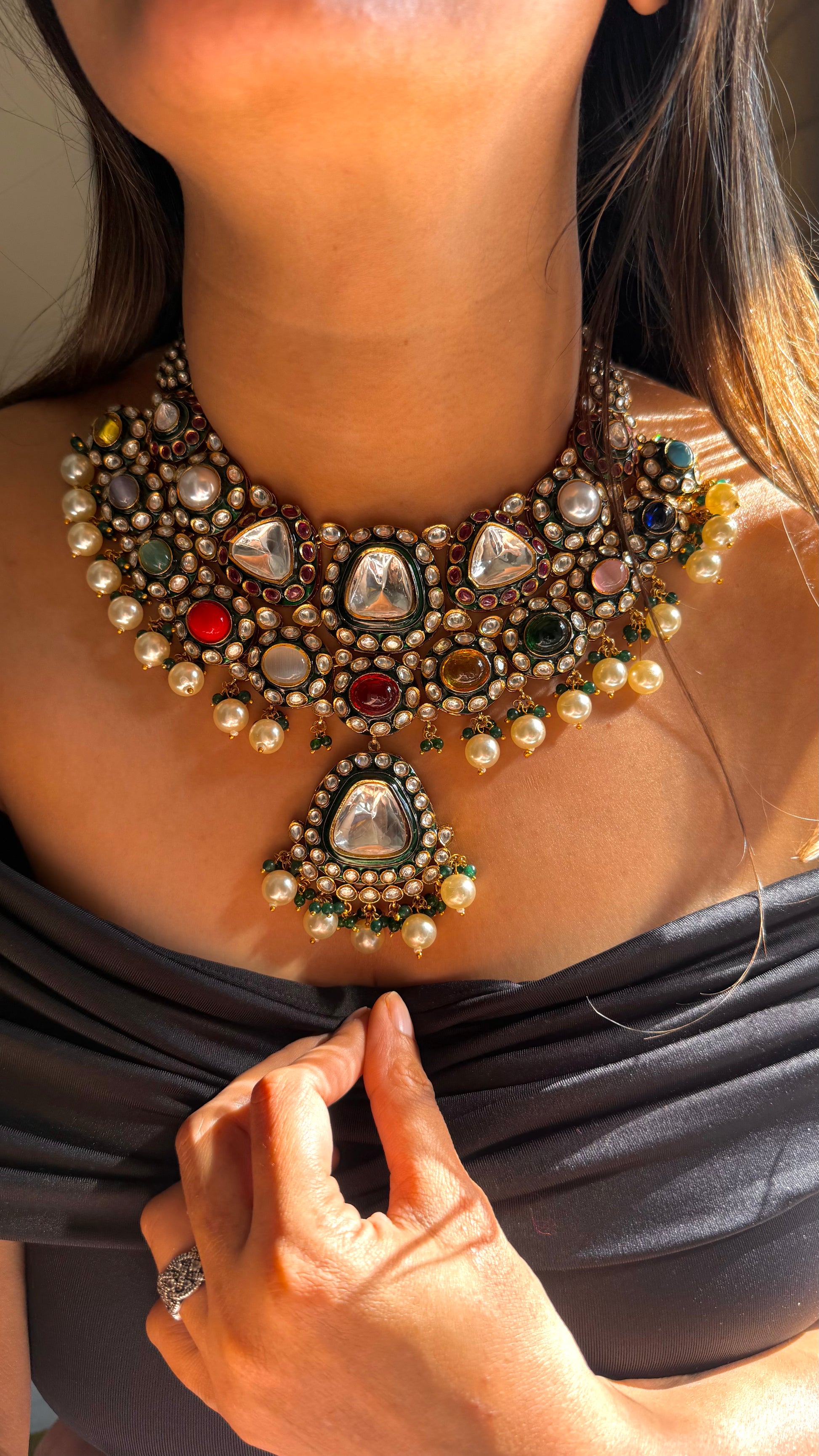 Heritage uncut polki meenakari navratna necklace