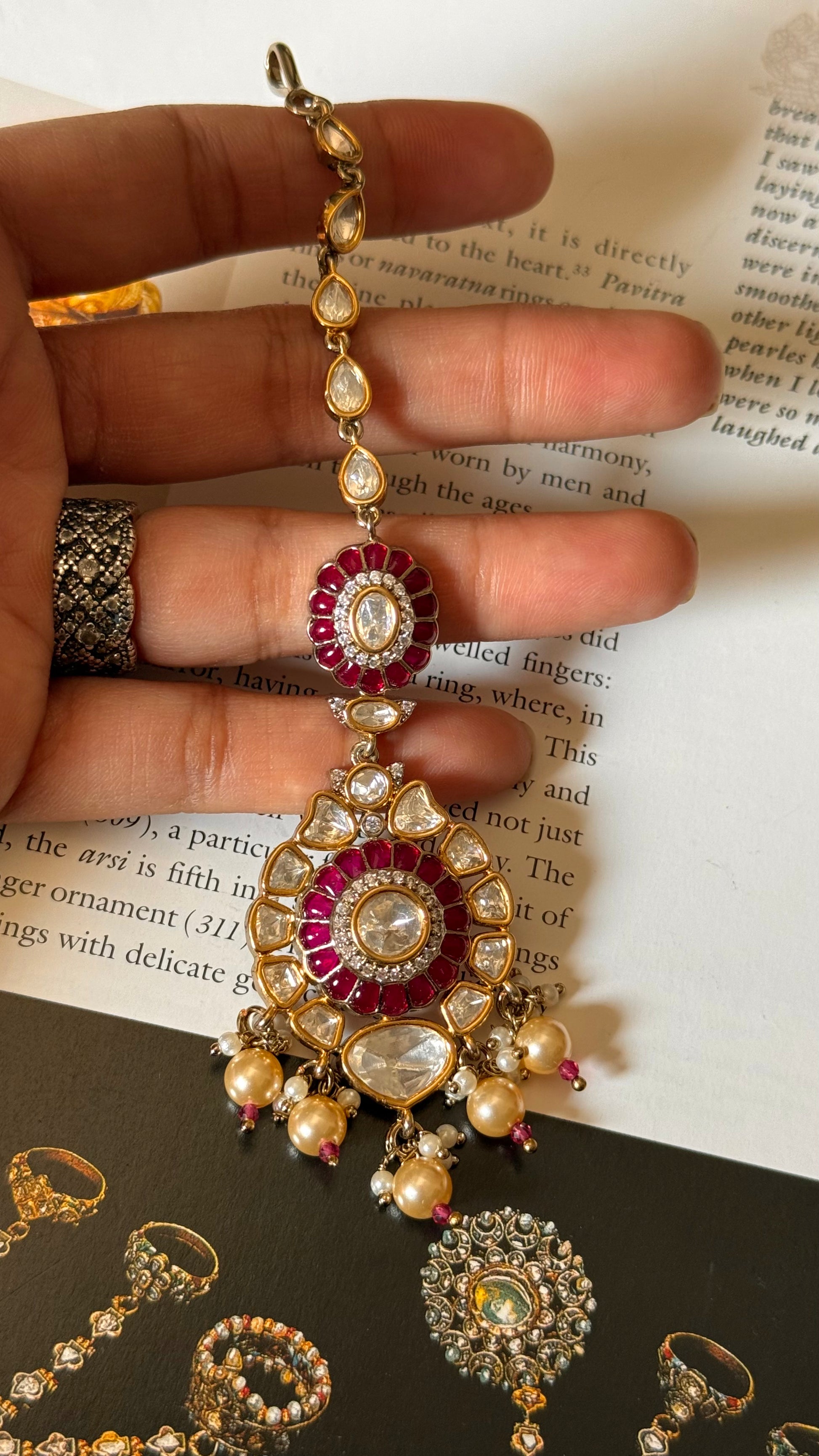 Rani pink ruby uncut polki Maangtika