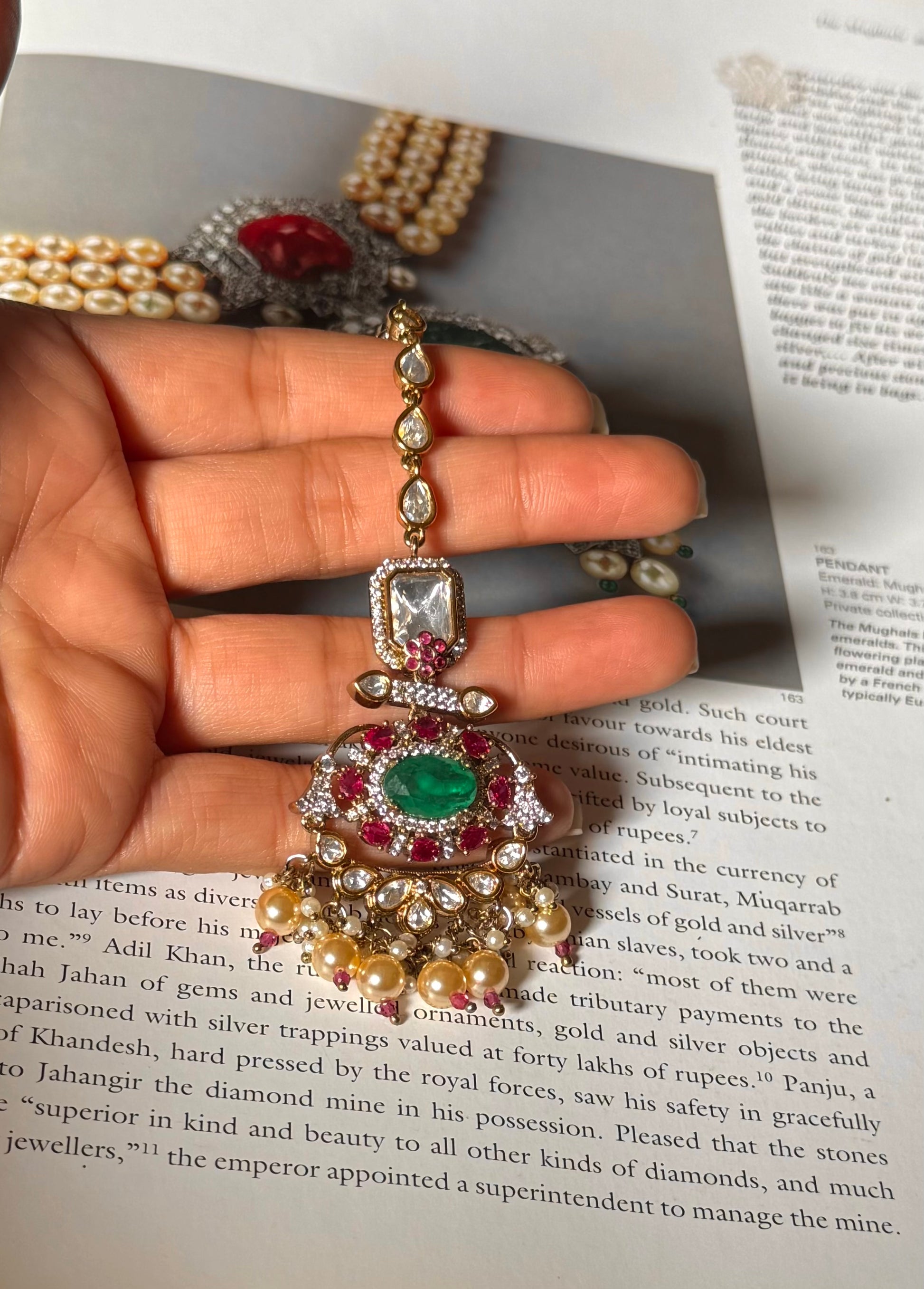 Emerald and rani pink victorian maangtika
