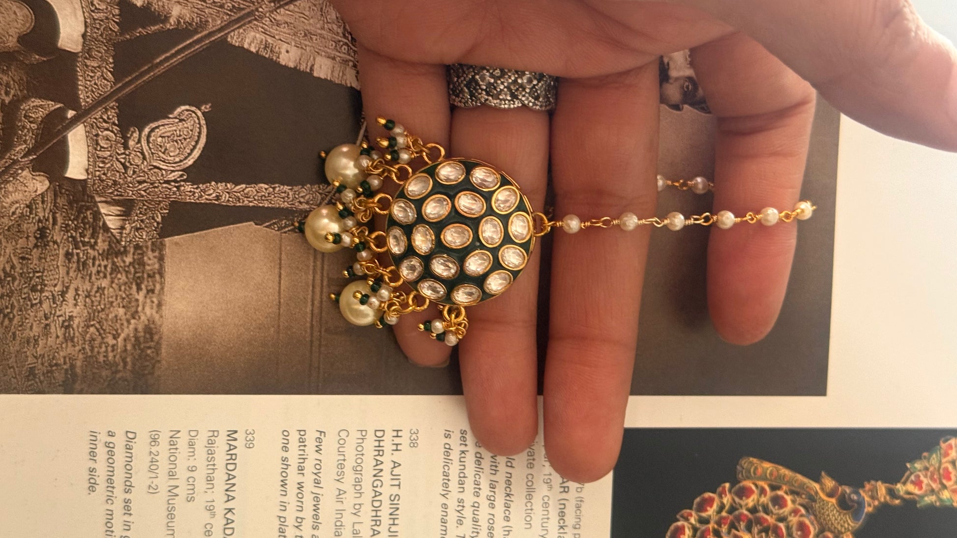 Emerald meenakari round maangtika