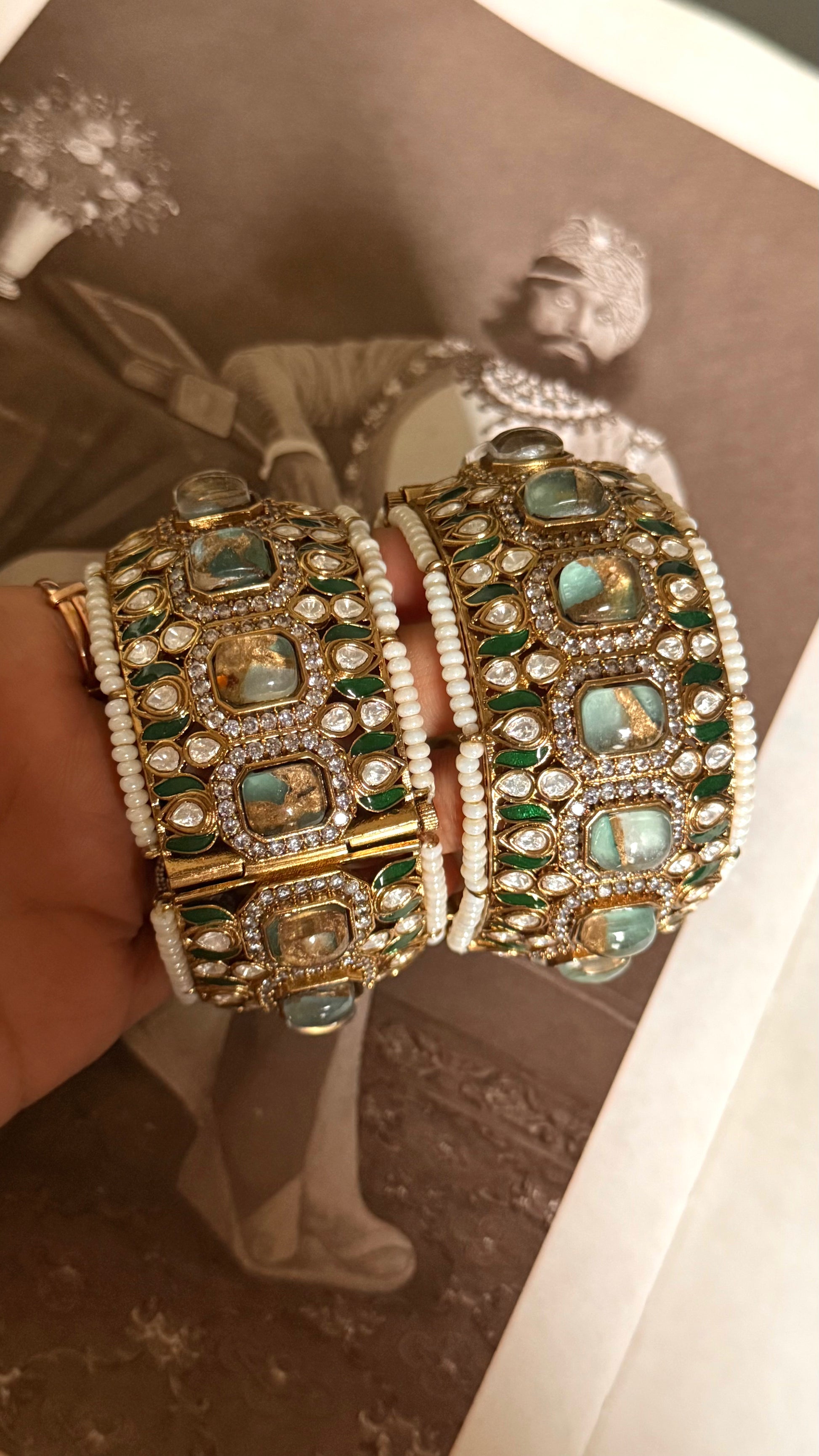 Mint doublet & emerald meenakari openable bangle