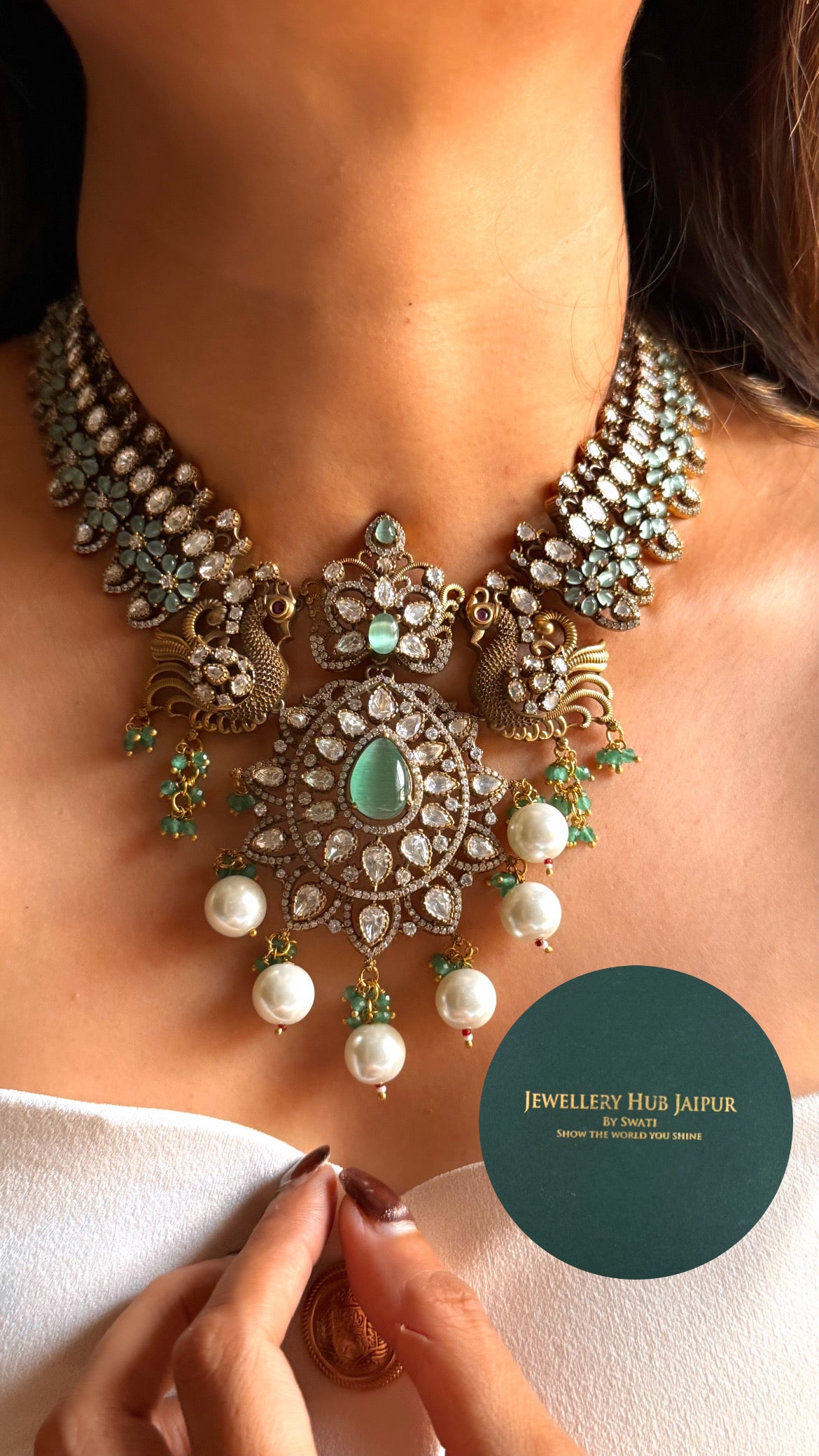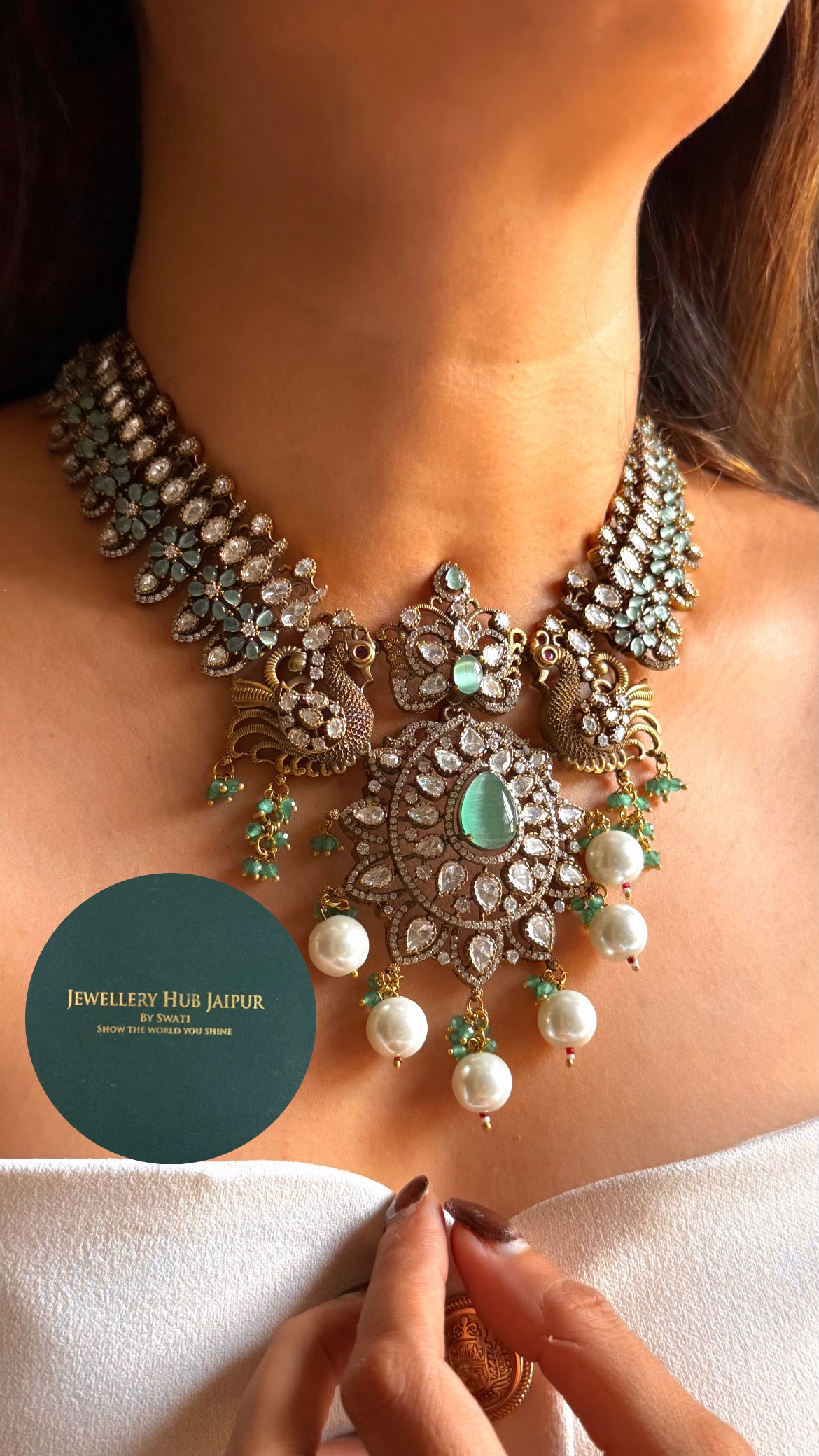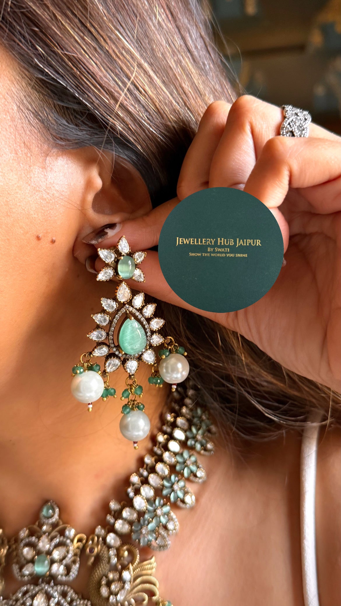 Munar-Mint doublet Moissanite uncut victorian mid length set