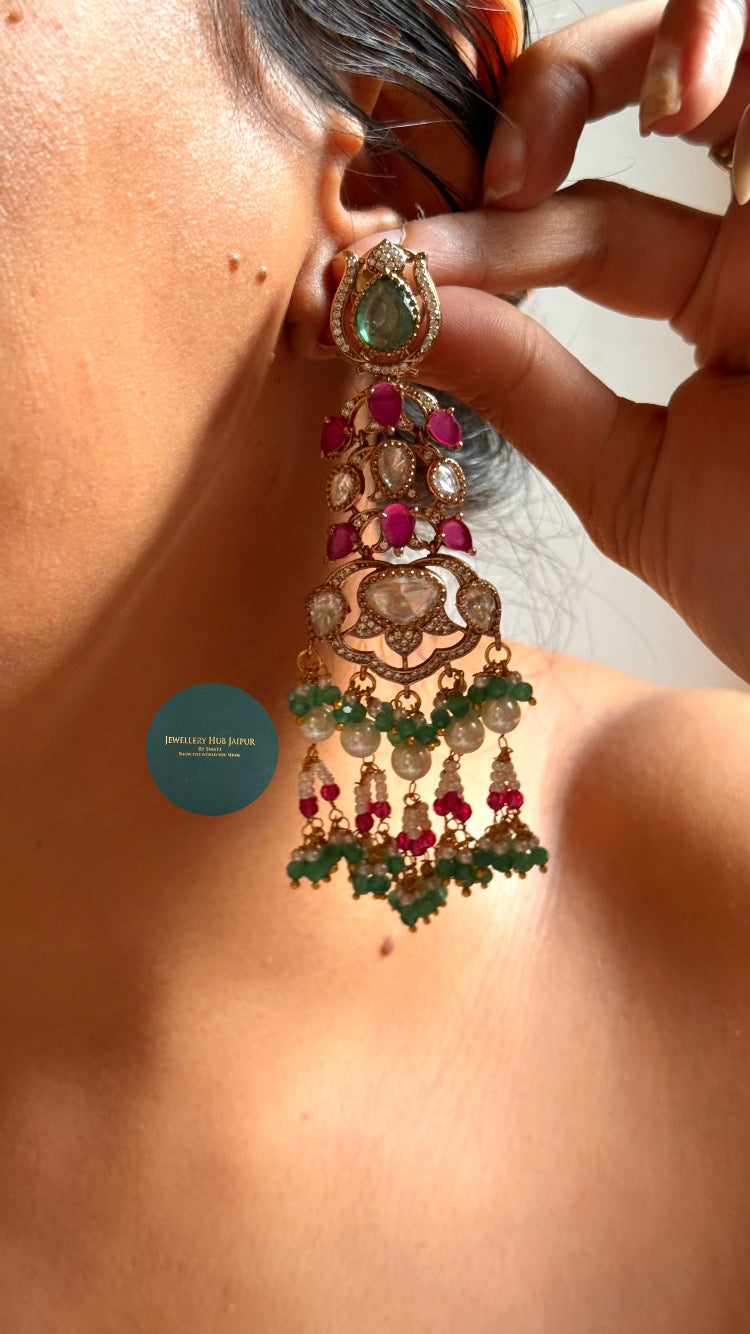 Mint doublet & rani pink Moissanite uncut polki choker set