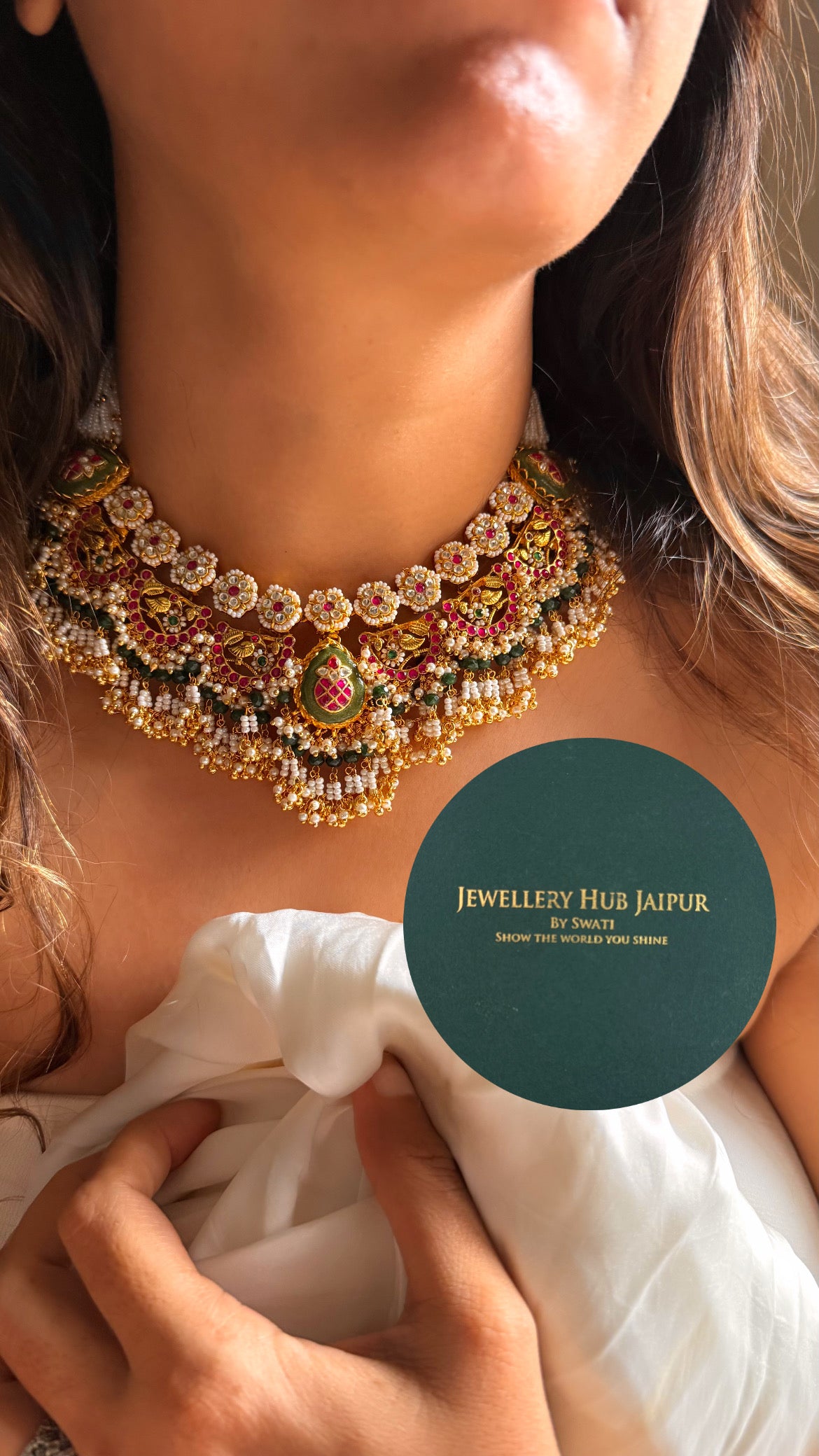 Handmade Heritage Polki Kalash inlay rajwada bridal collar set