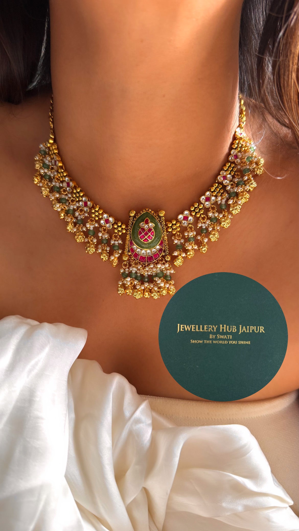 Handmade Heritage Polki Mint inlay Kalash design rajwada collar set