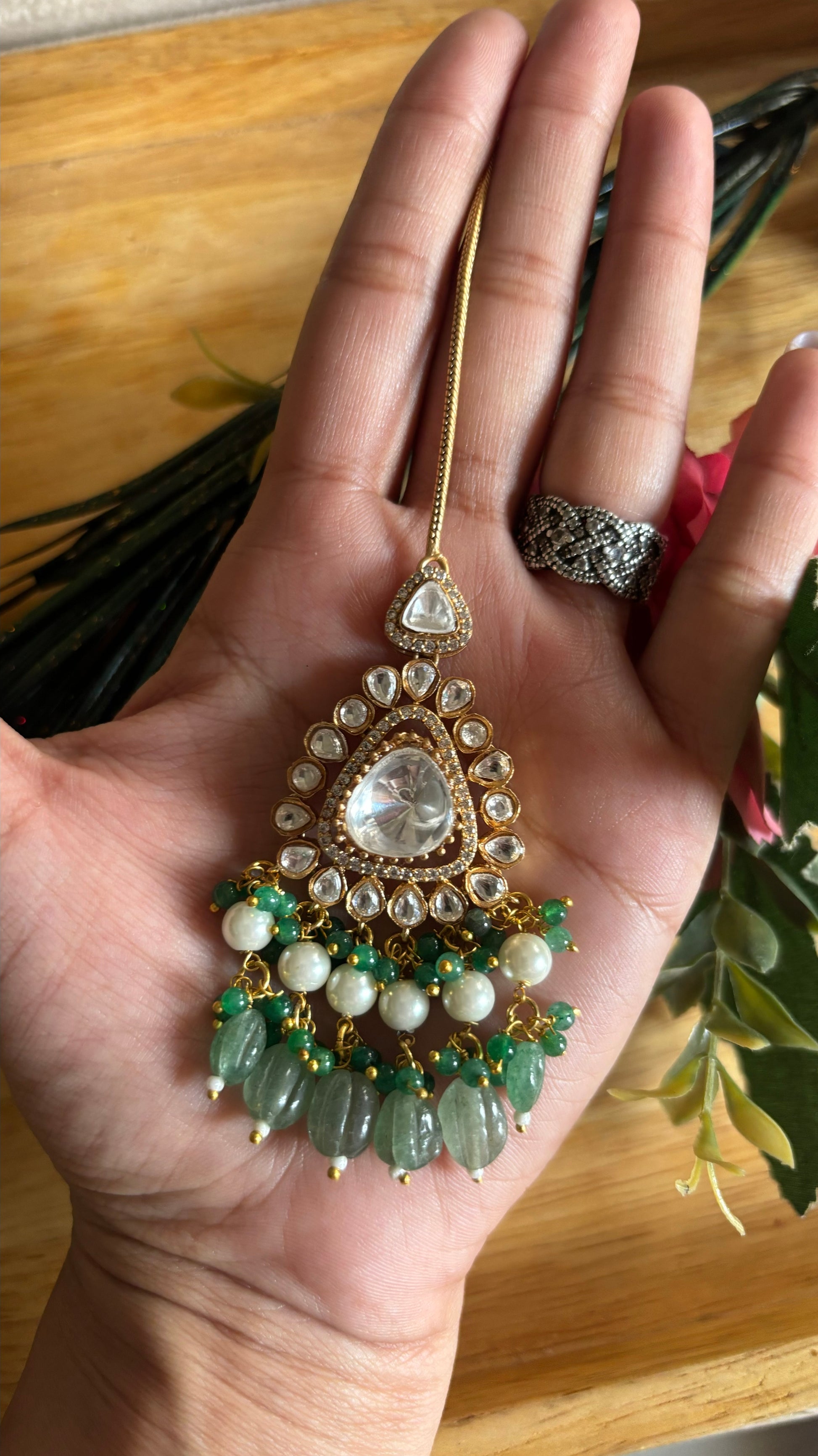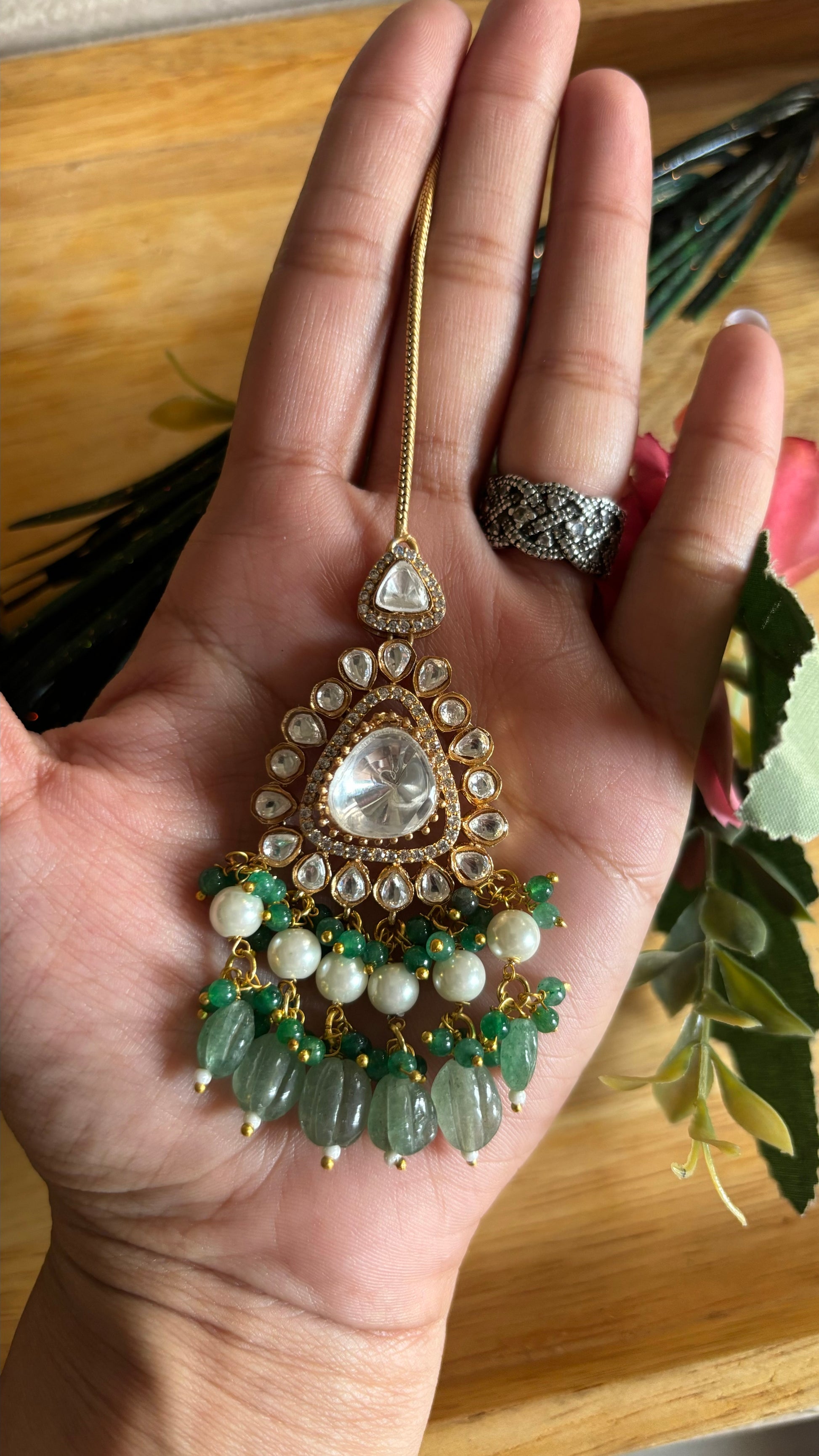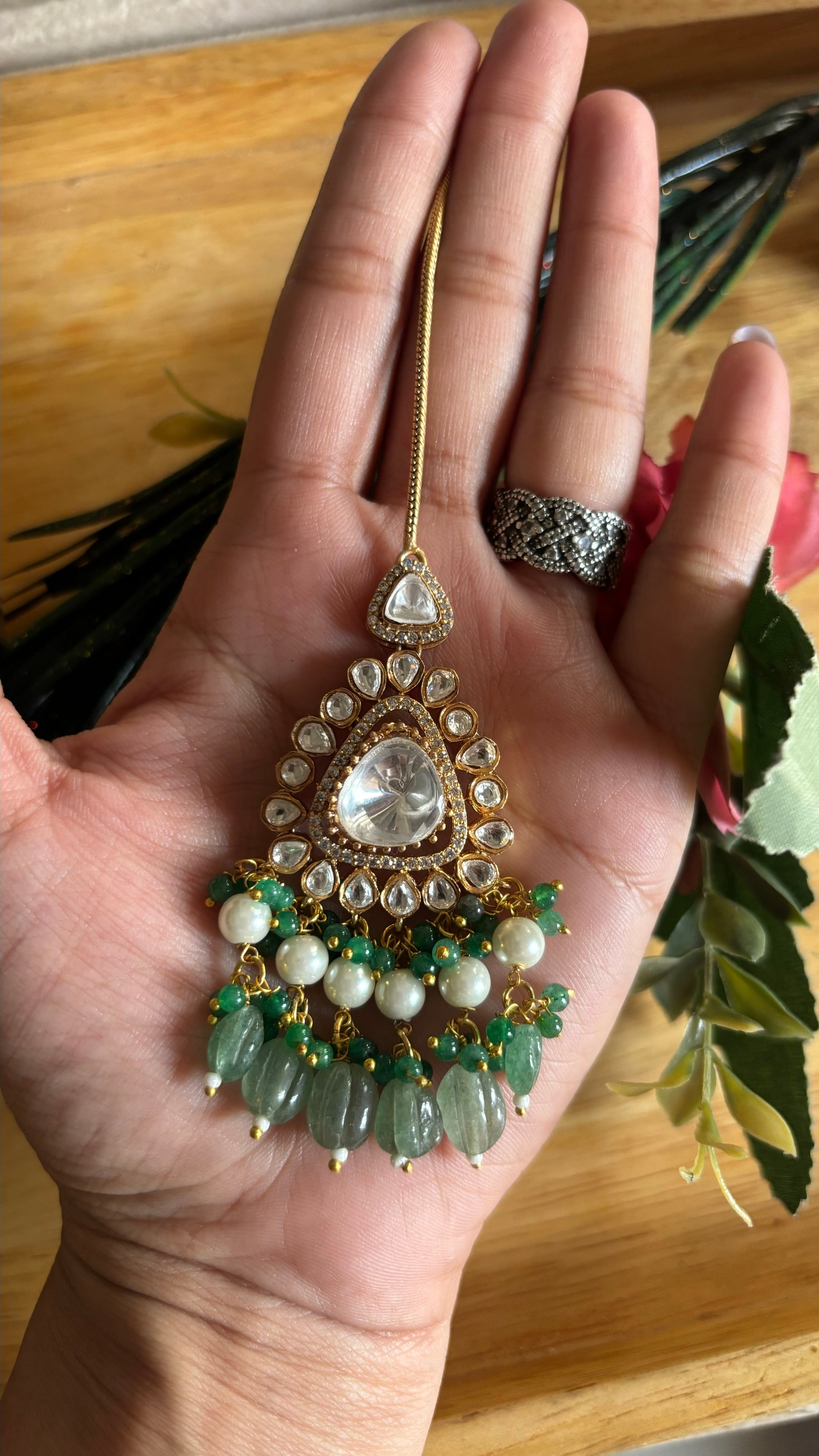 Mint maang tika
