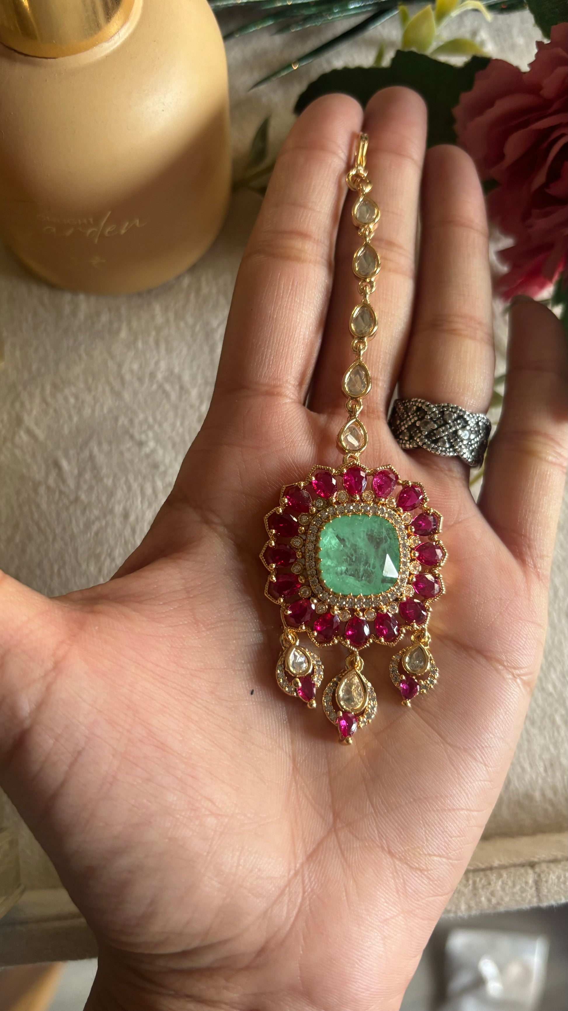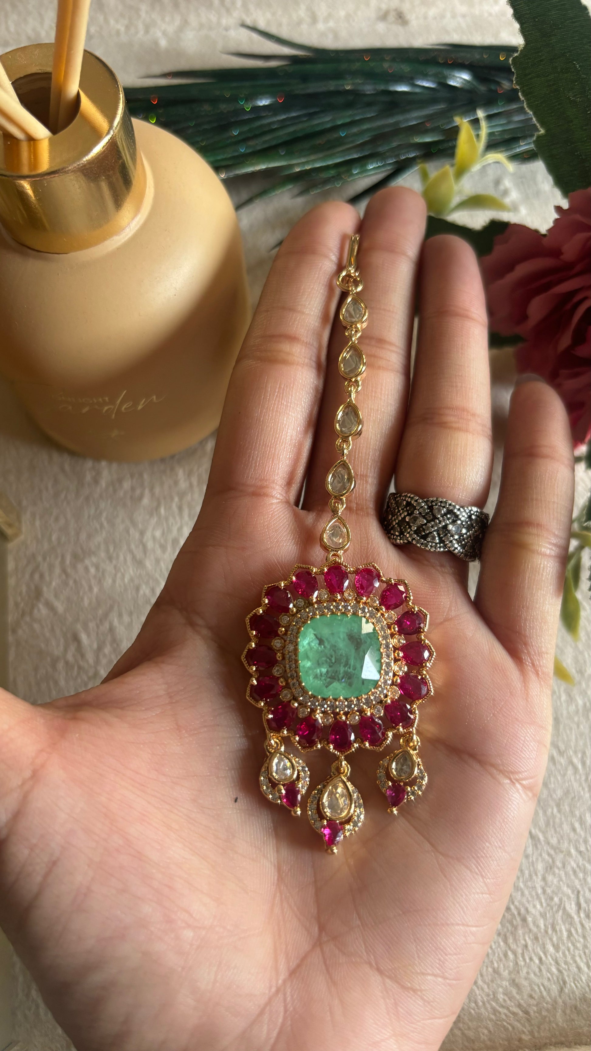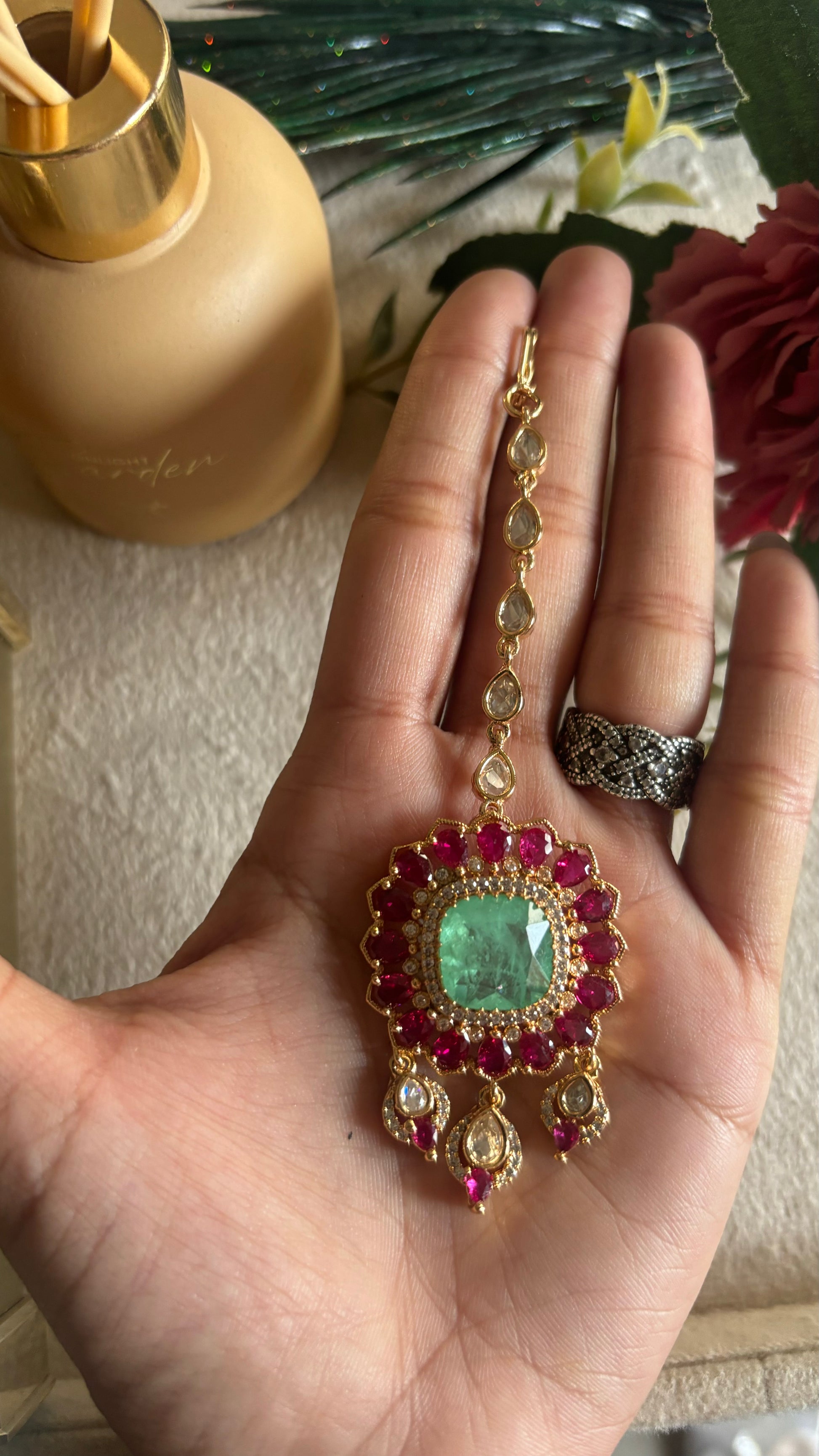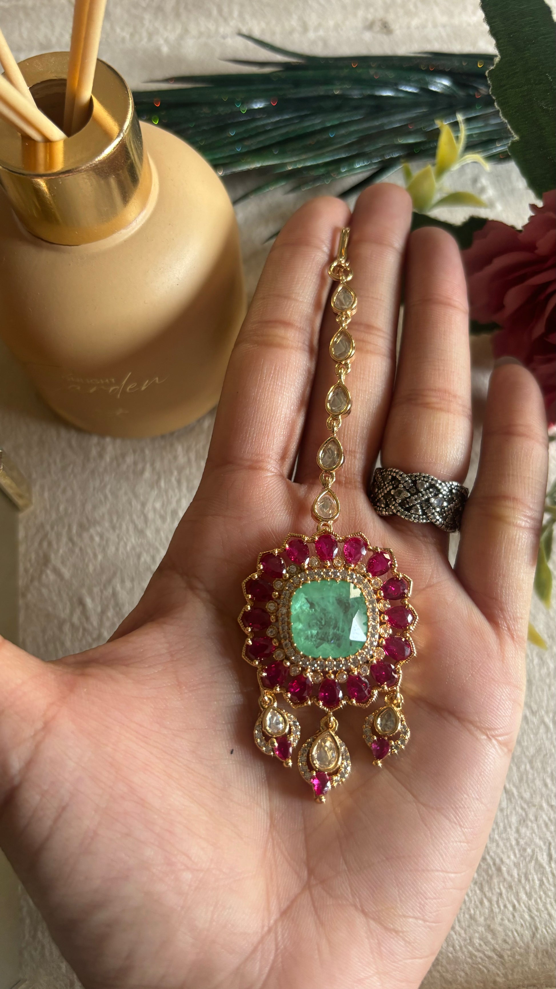 Mint pink polki mangtika