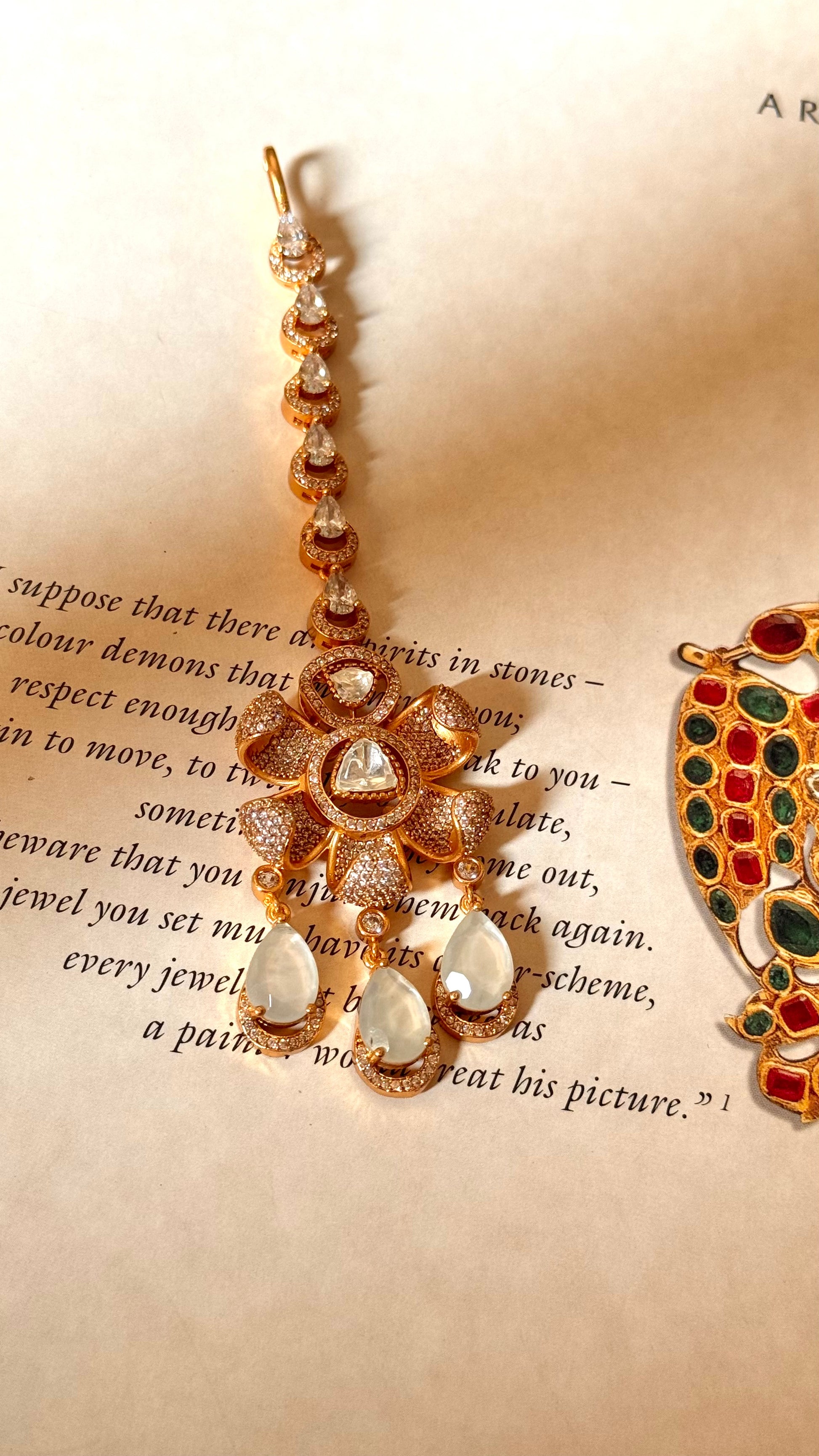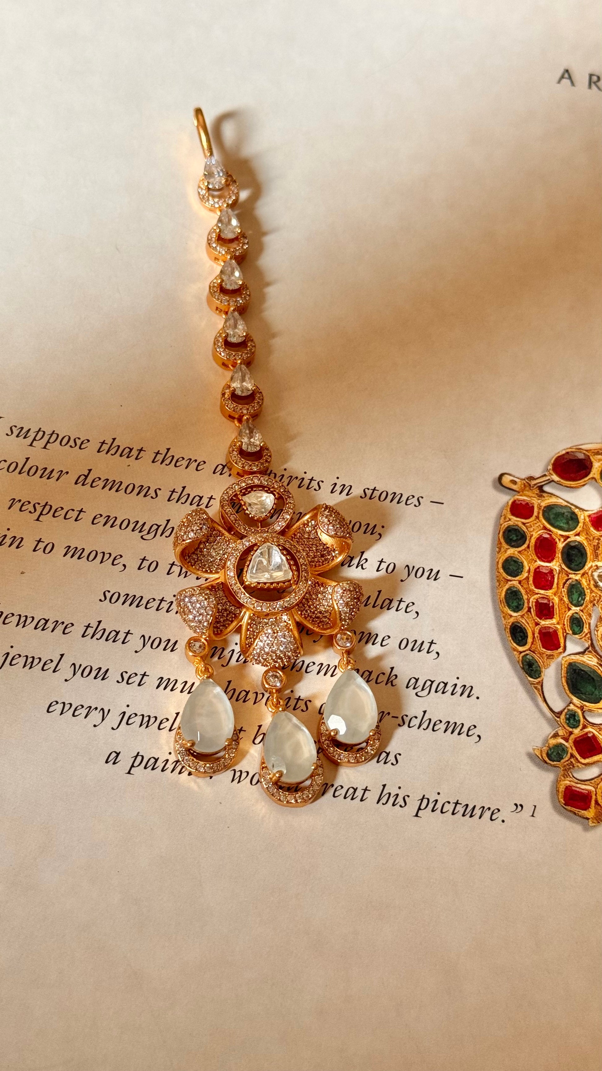 Moissanite floral with mother of pearl drop maangtika