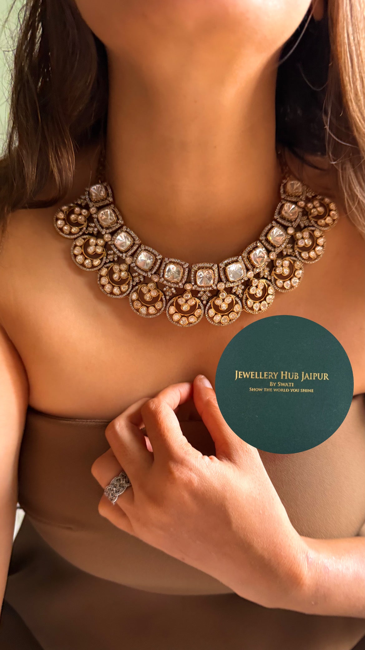 Real uncut Moissanite polki with floral design collar set