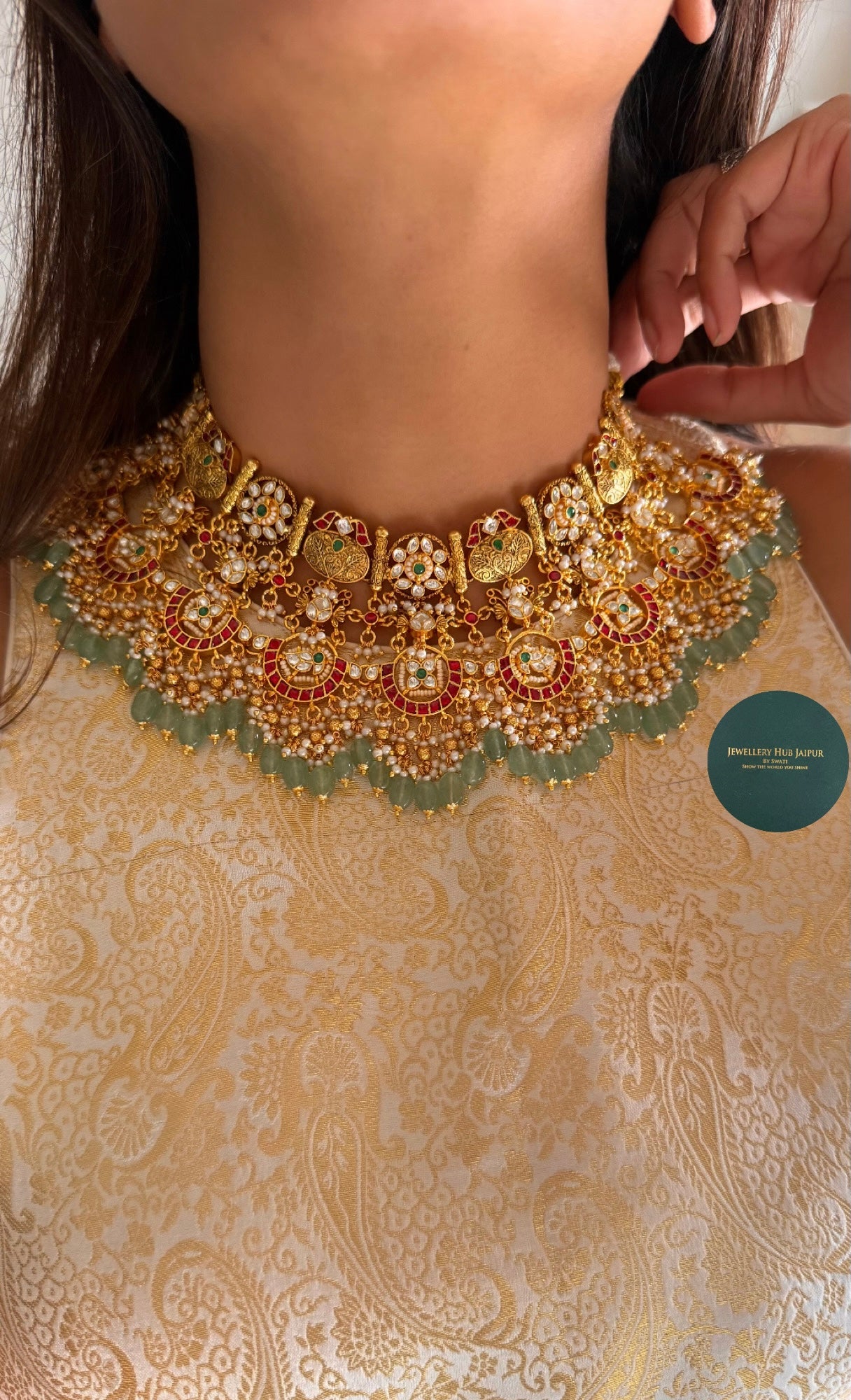 Heritage ruby & mint drop paachi polki necklace
