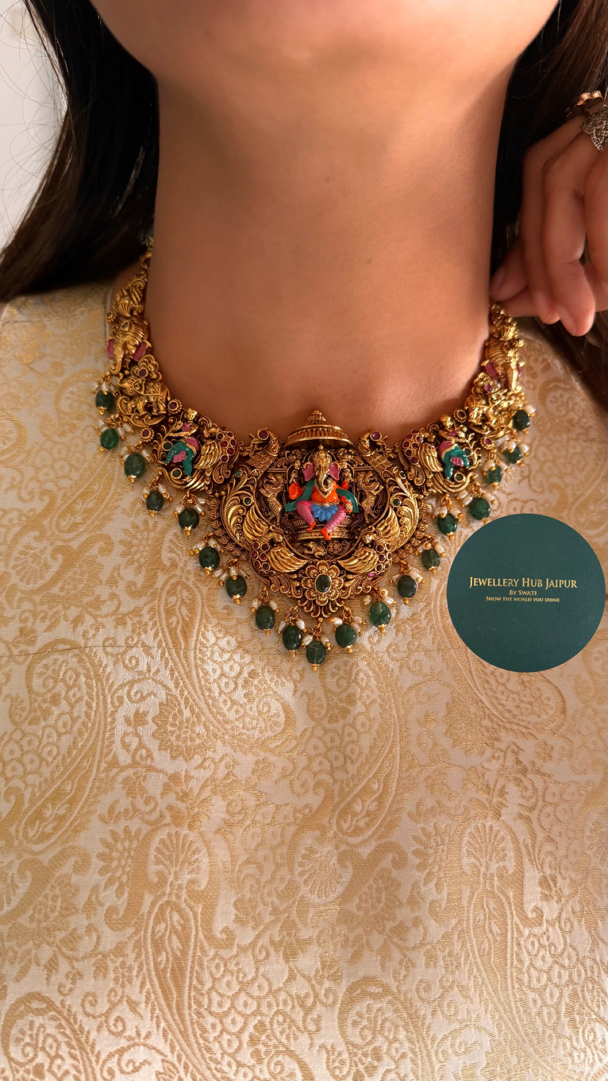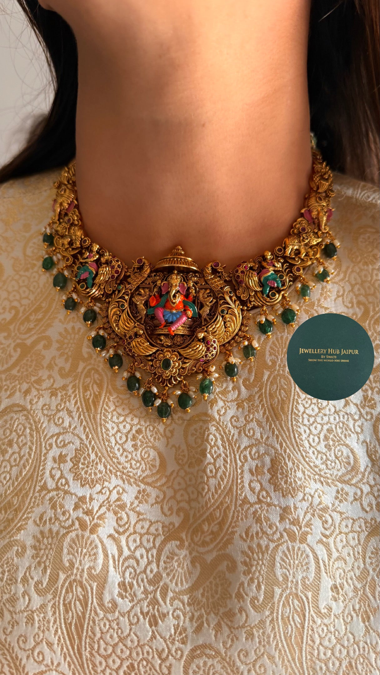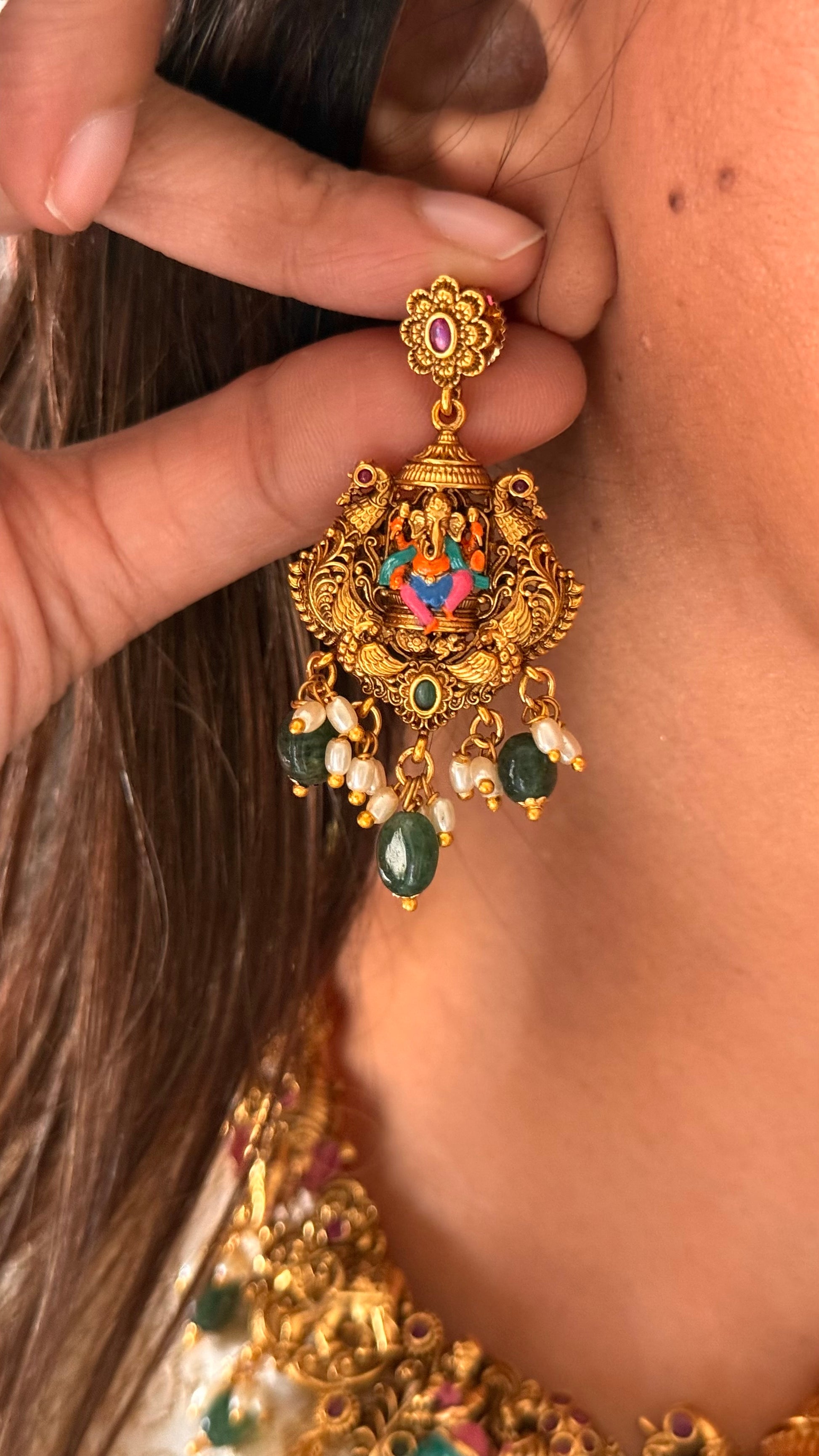 Lord Ganesha temple meenakari necklace