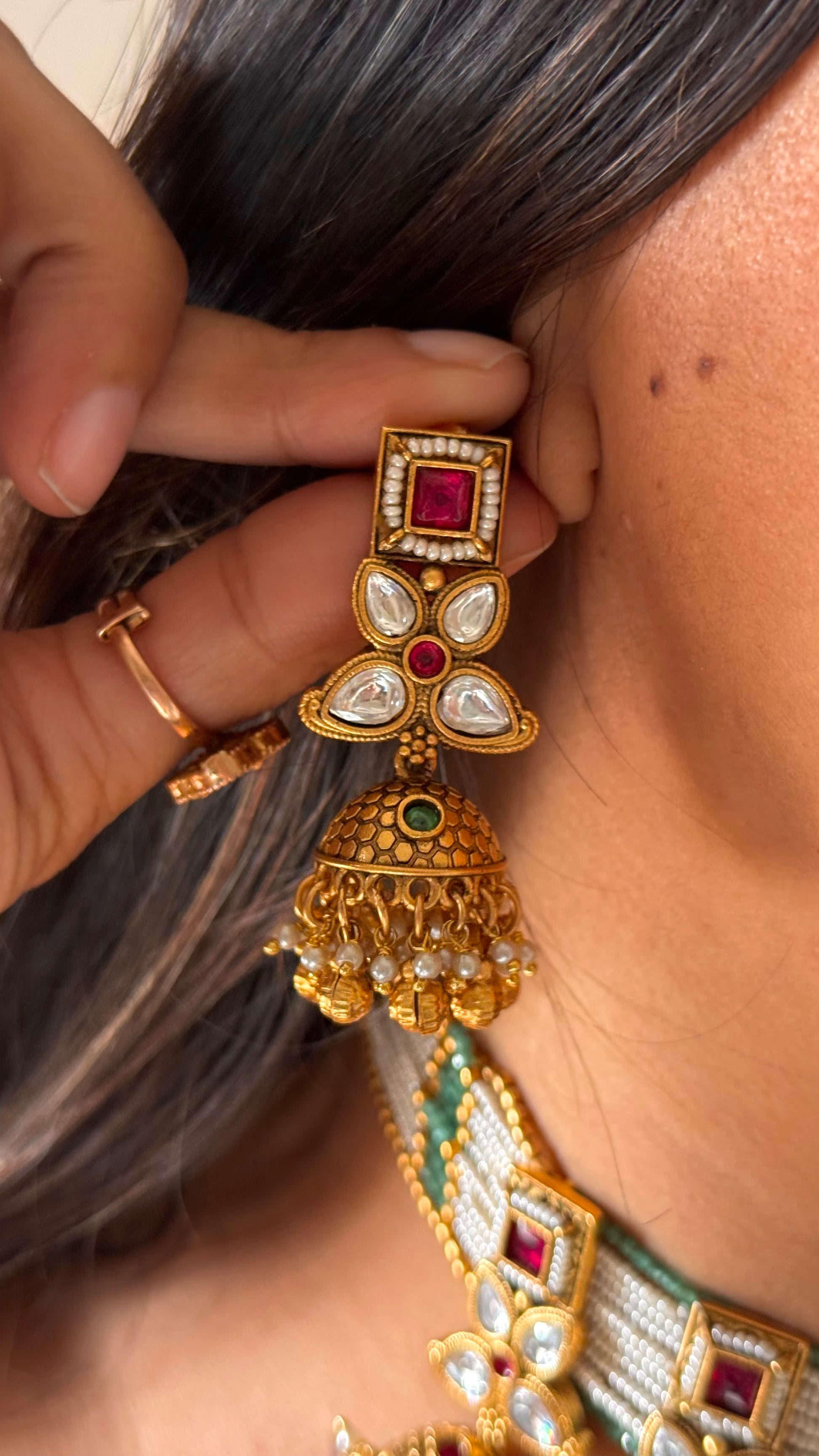 Ruby & emerald jhumki heritage necklace