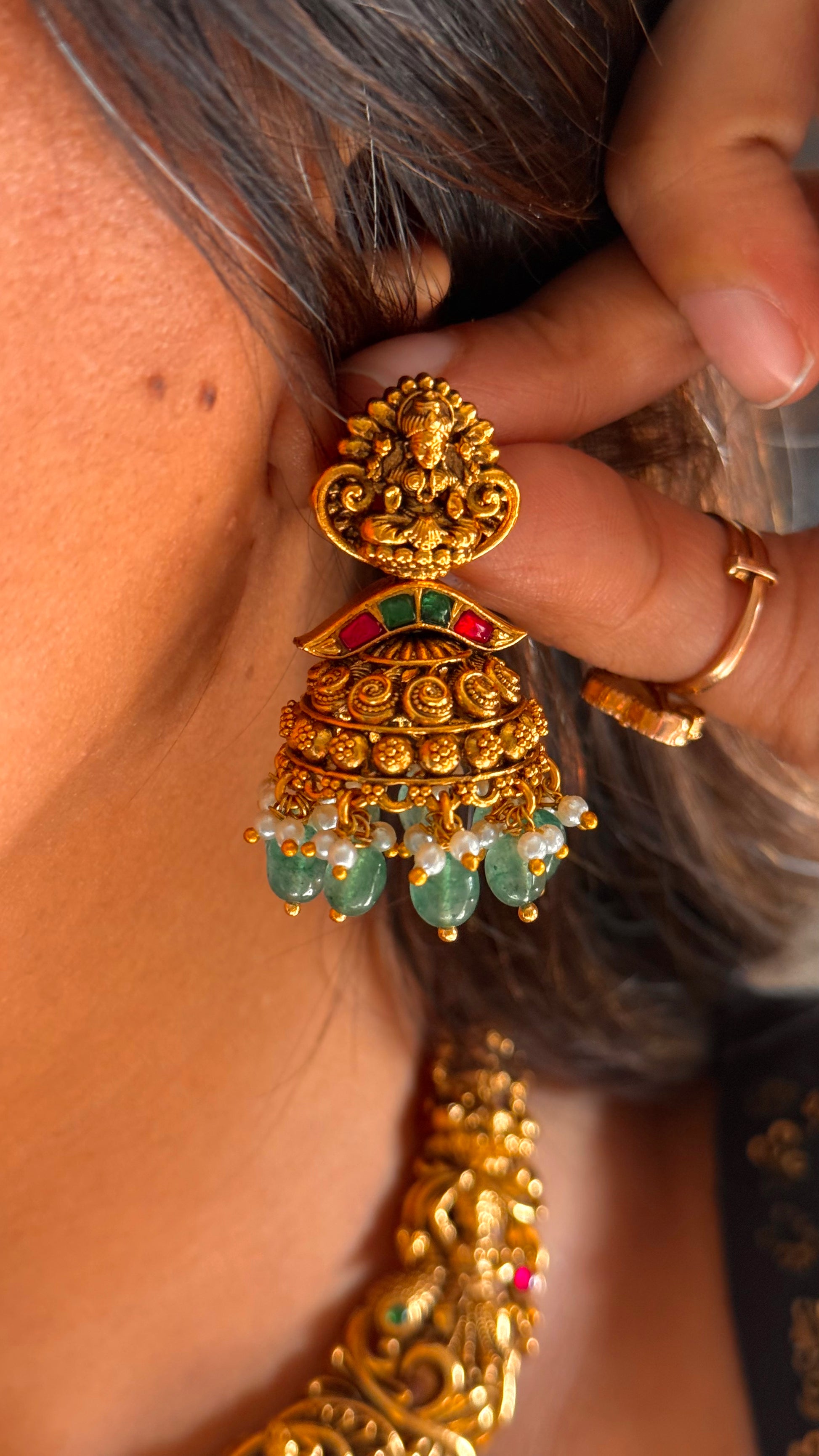 Goddess Laxmi inspired paachi kundan temple necklace with mint drops