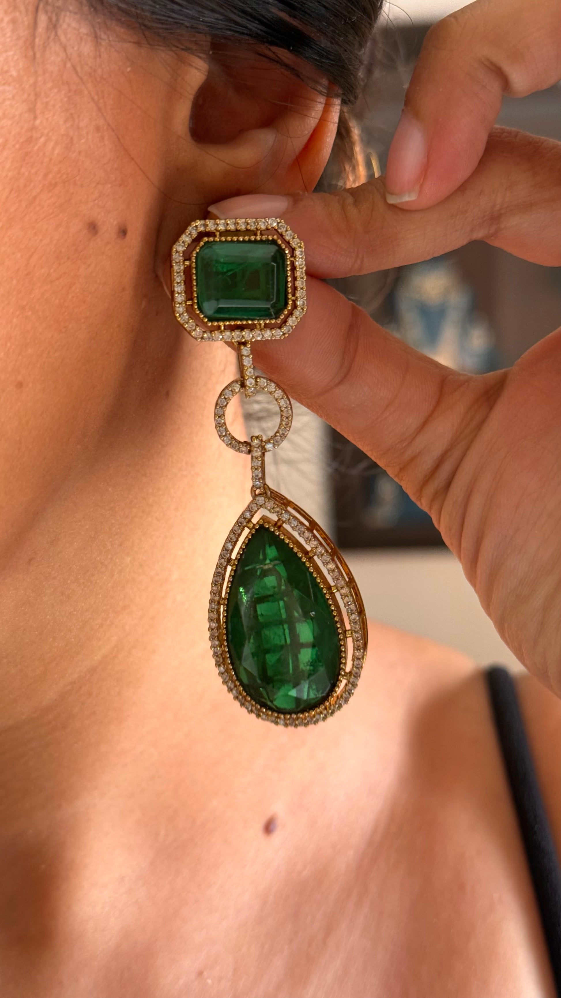 Emerald tear drop long pendant minimal necklace