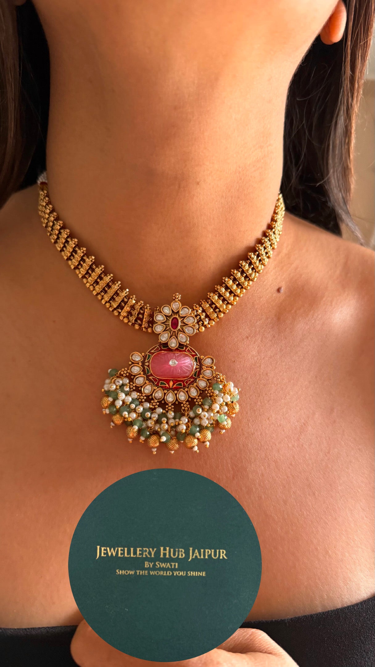 Rose quarts rajwadi necklace with jhumki