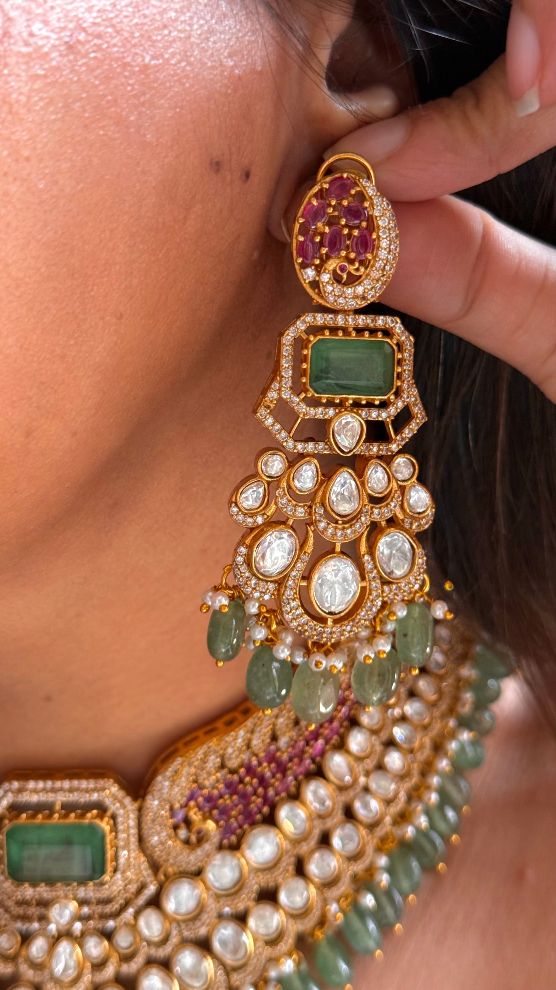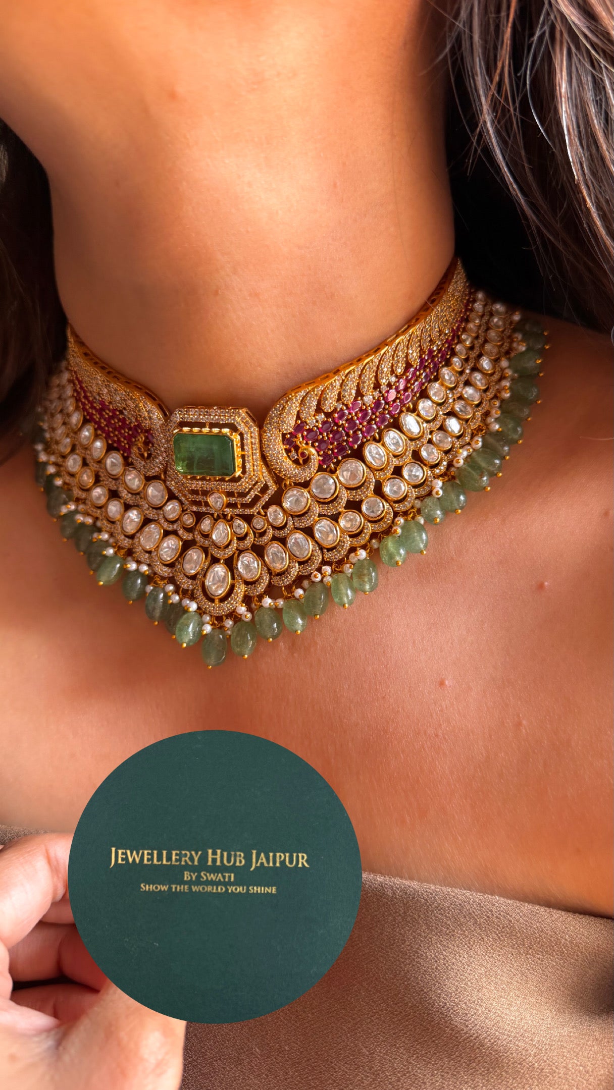 Rani pink ruby moisaanite with mint drops choker Necklace