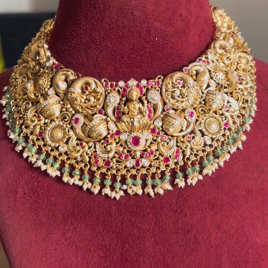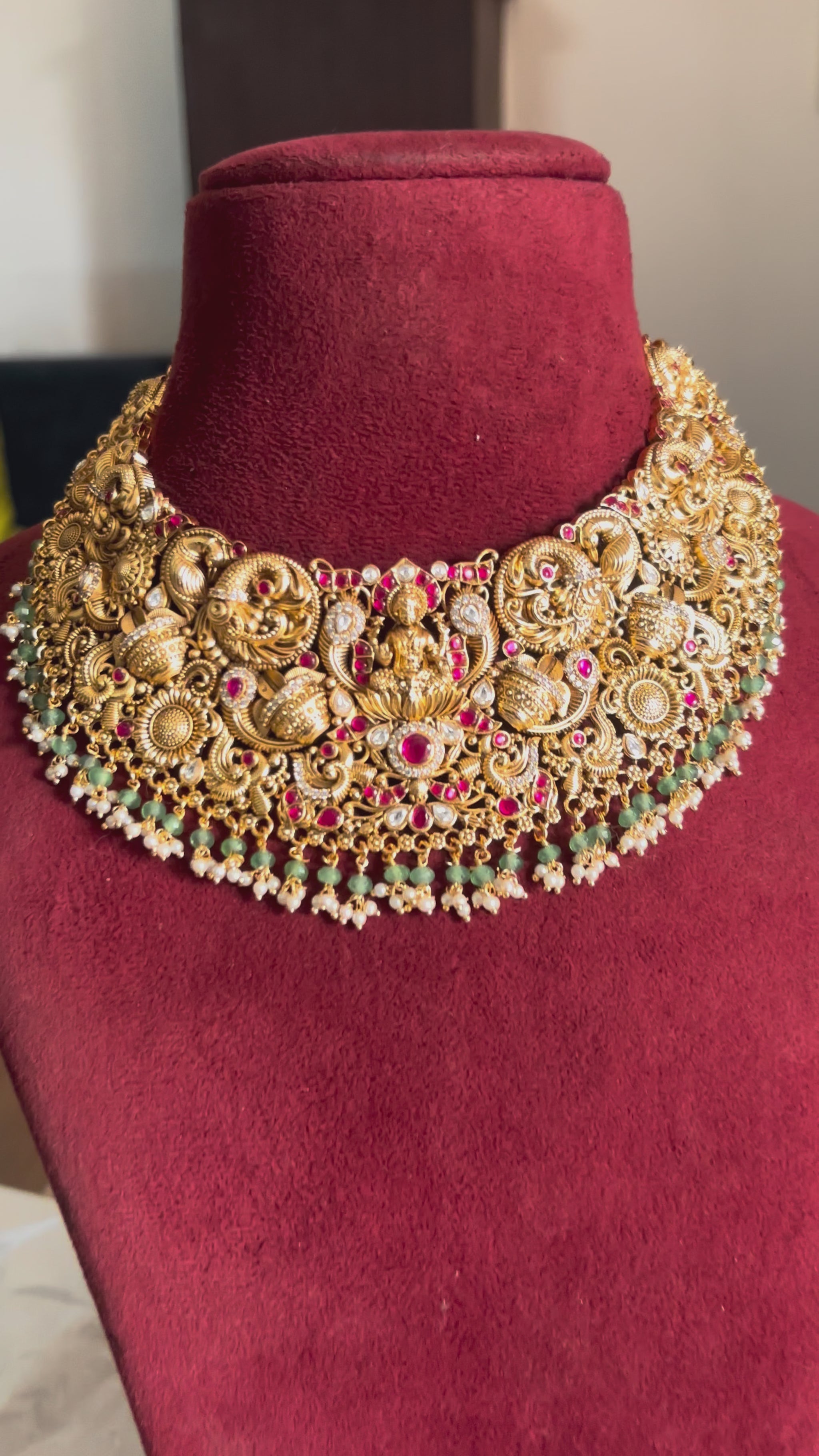 Rani pink ruby with mint goddess Laxmi collar necklace