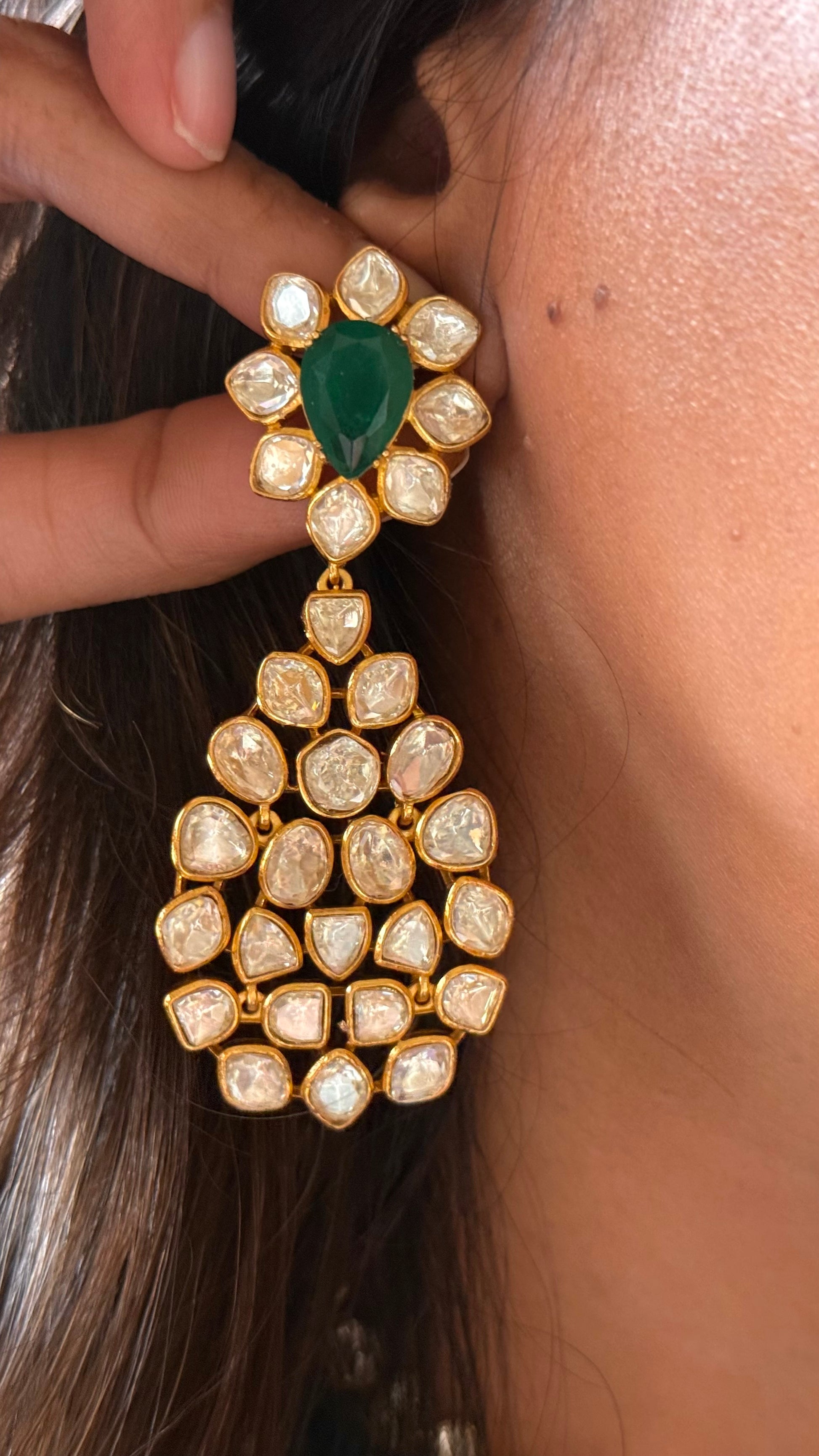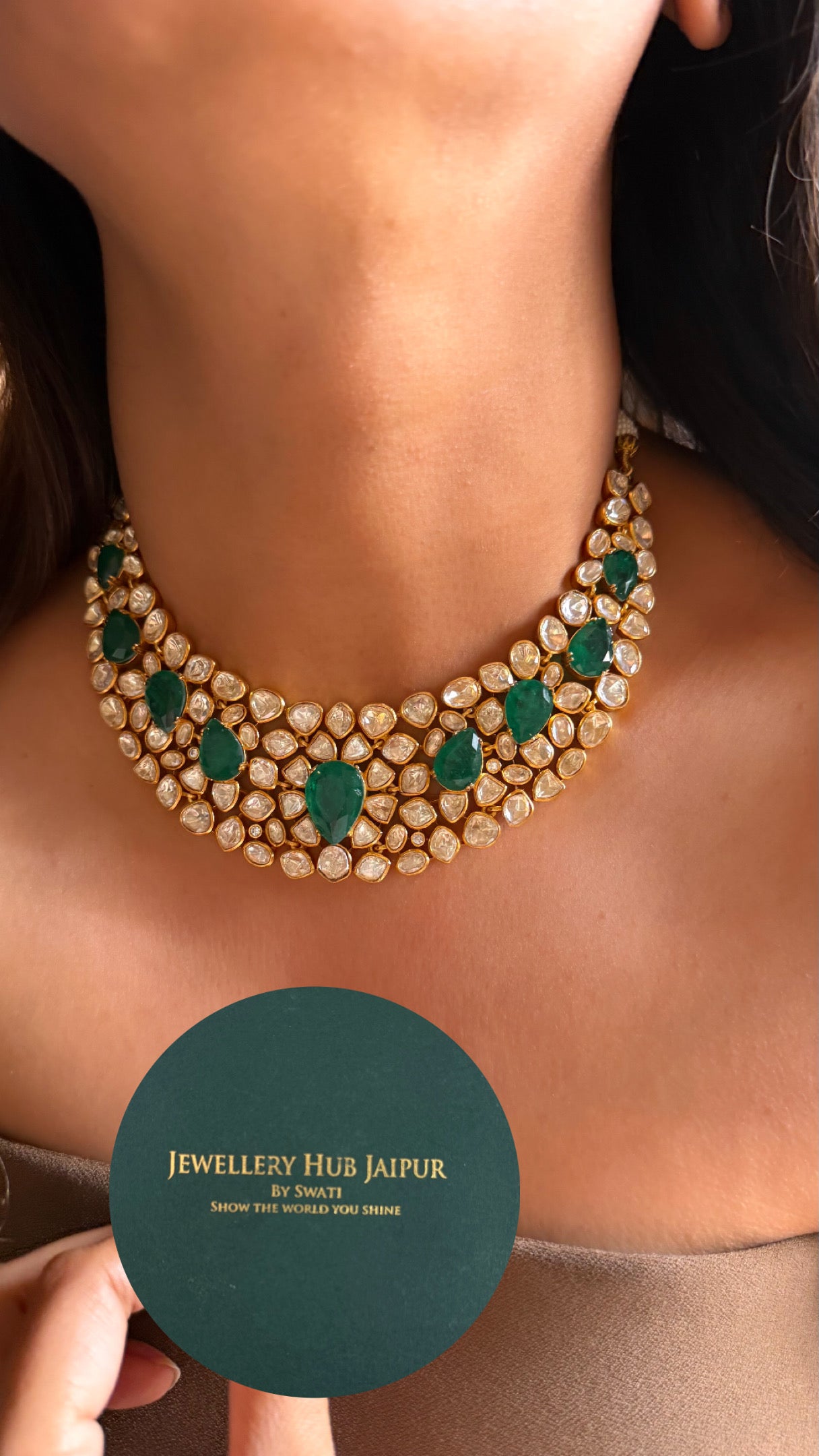 Emerald doublets with peeli polki moissanite peeli polki Necklace