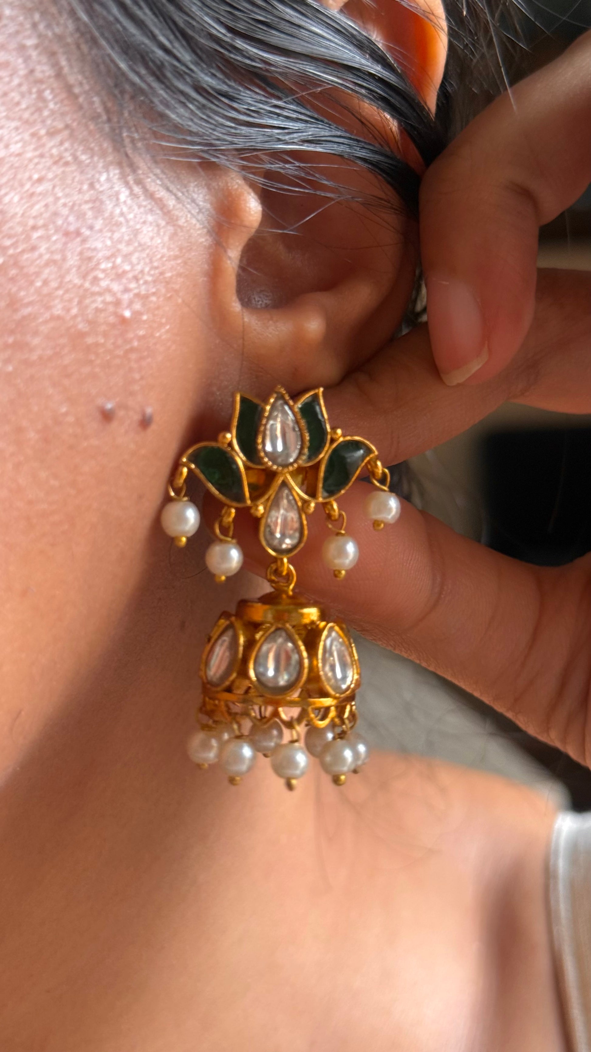 Lotus inspired emerald paachi Kundan choker Necklace set