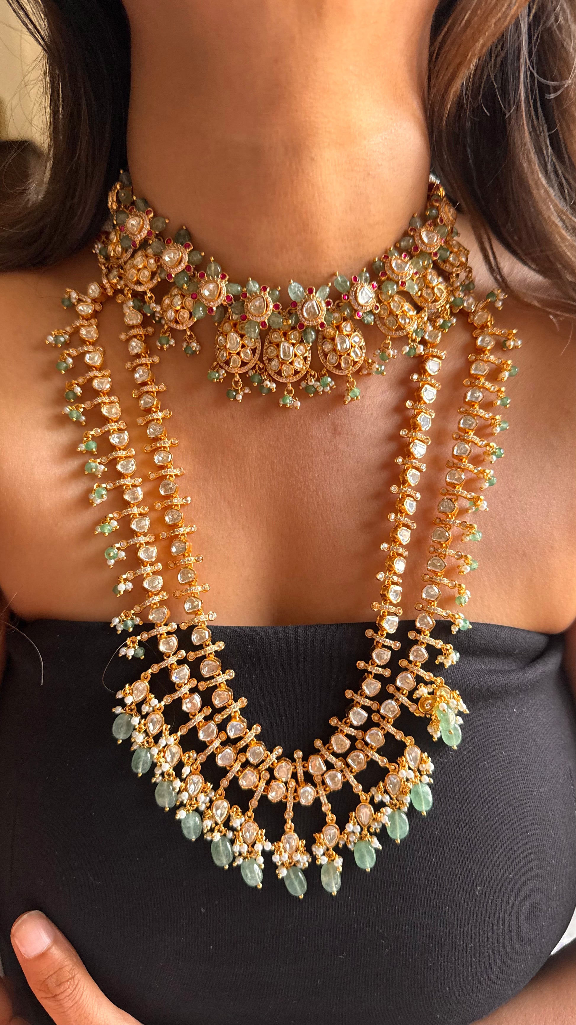 Real moissanite choker & long necklace combo