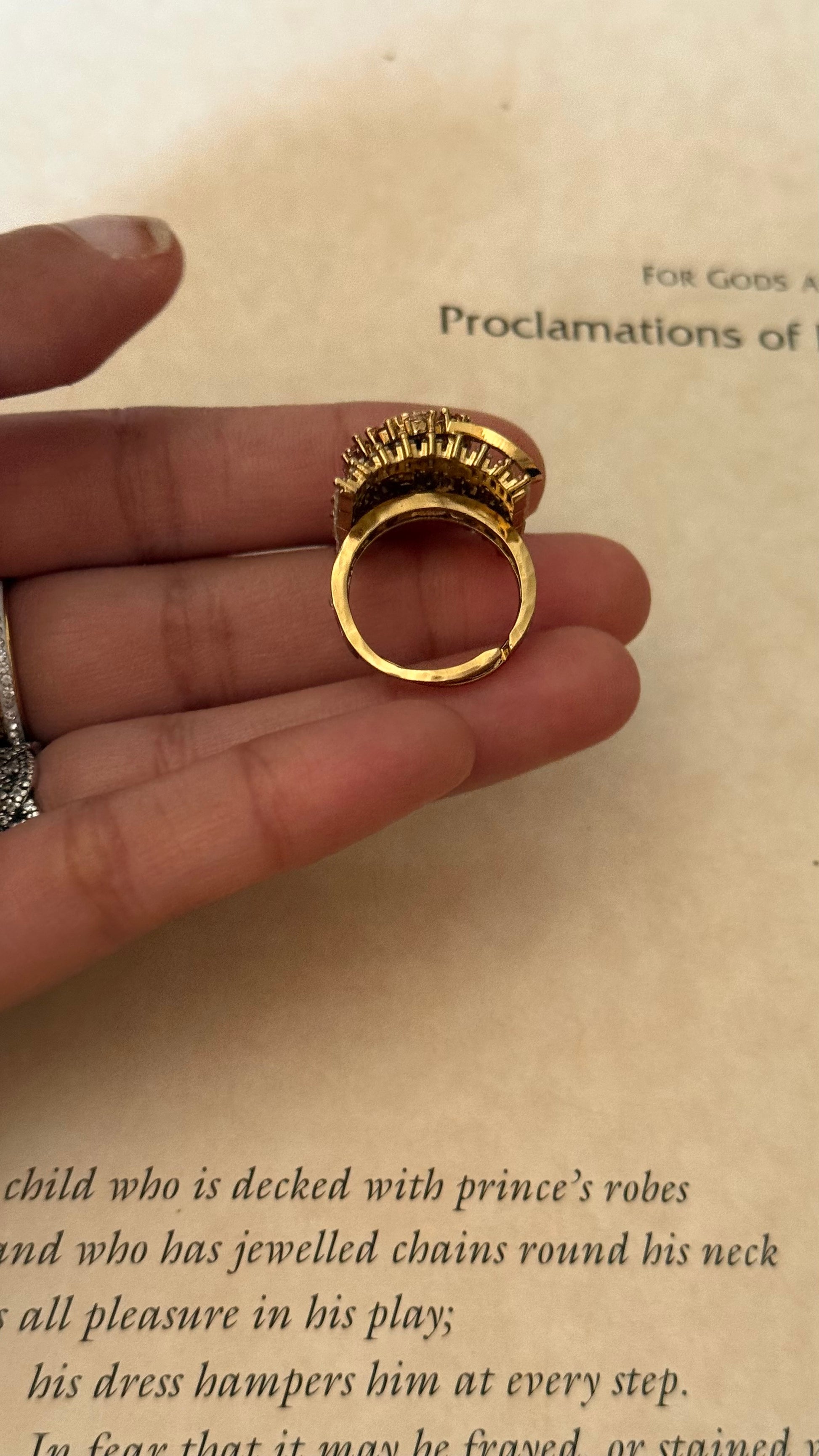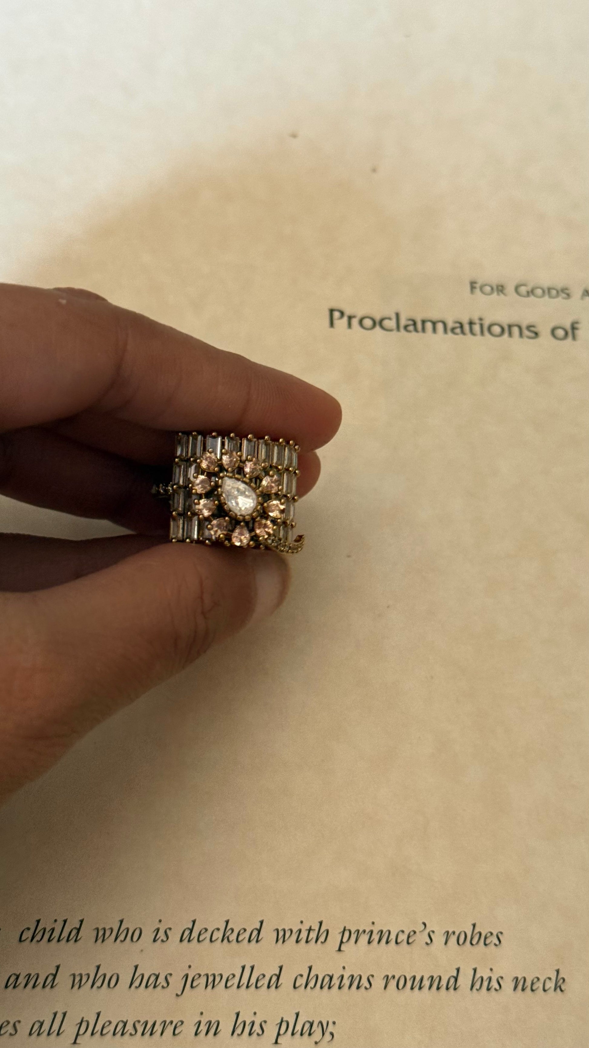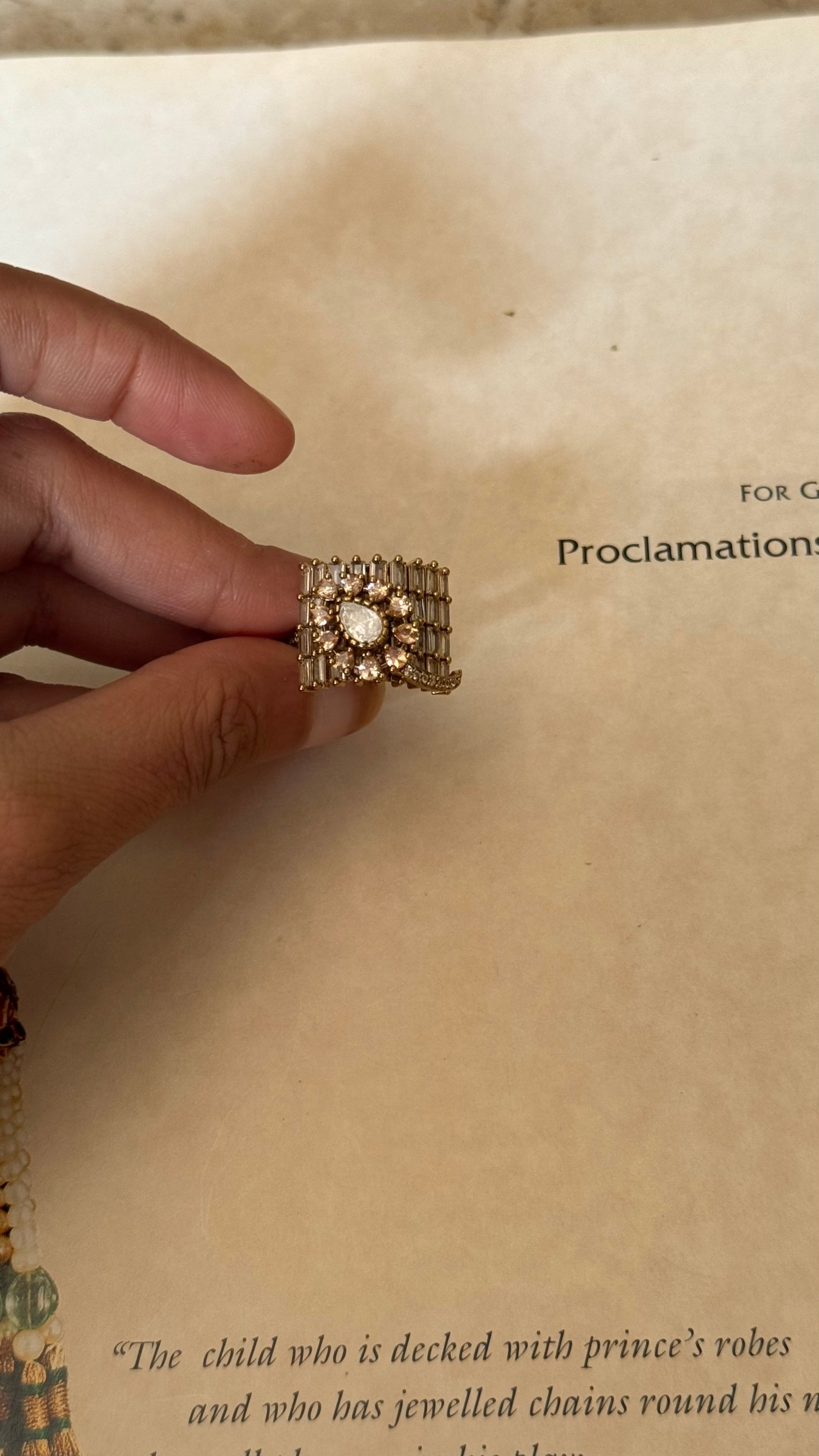 Peach moissanite uncut polki designer adjustable ring