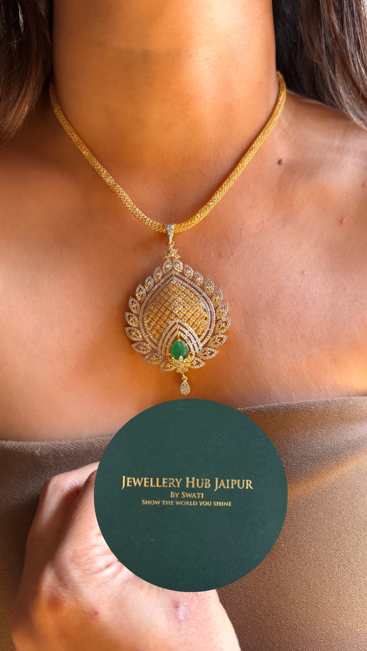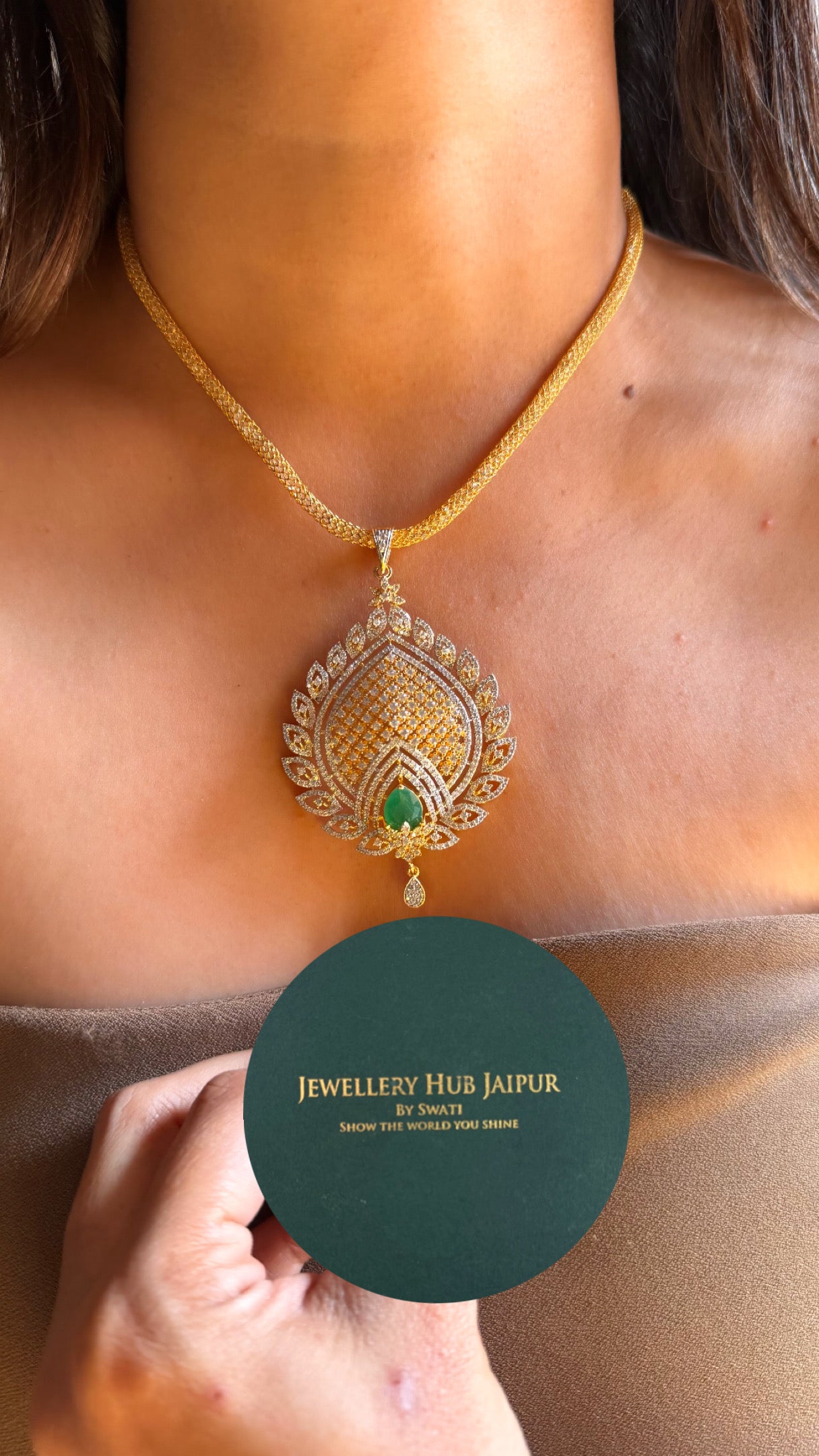 Emerald doublet stone designer Pendant set