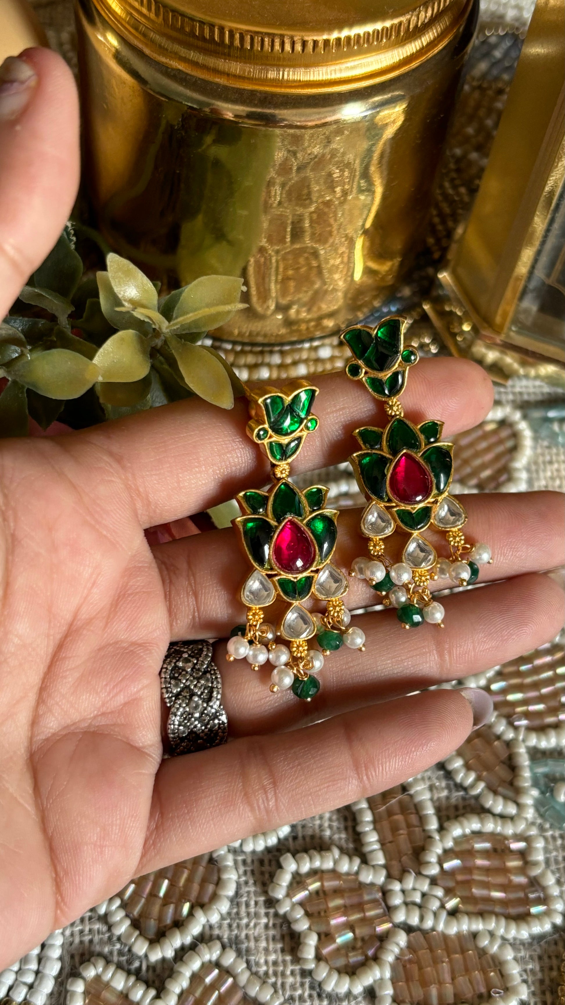 Rani pink & emerald paachi earrings