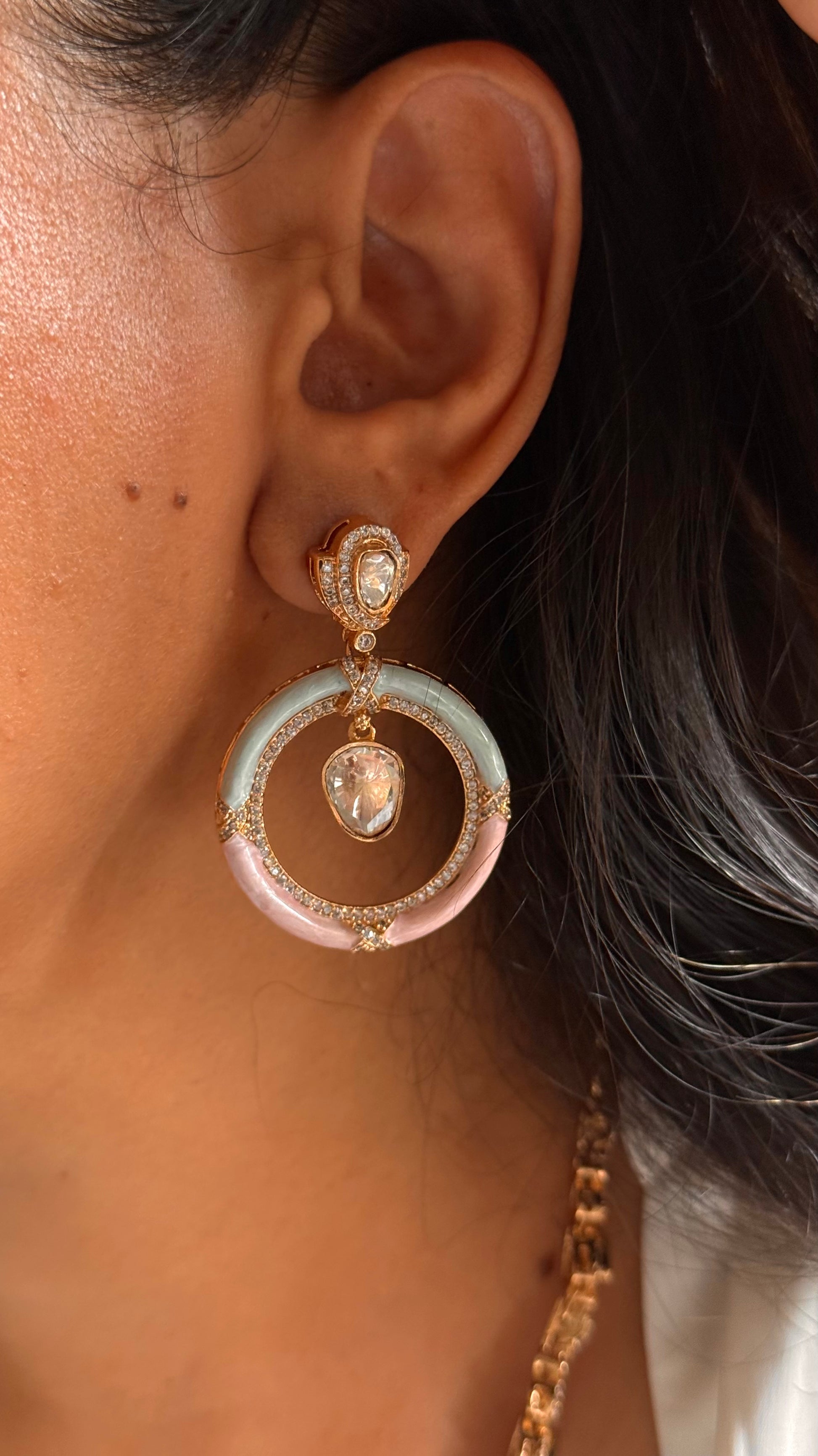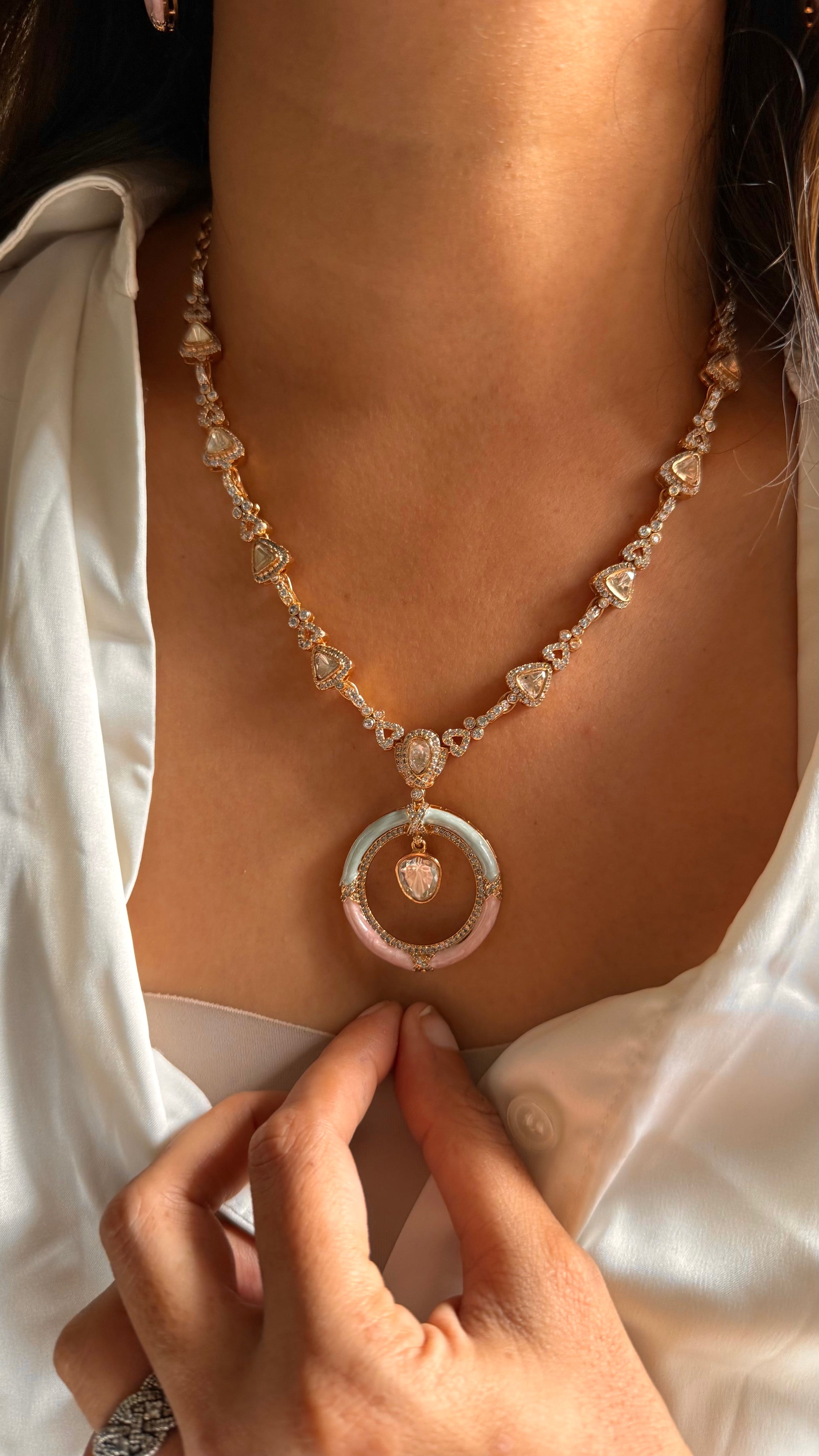 Pink & Blue Enamel moissanite Pendant Necklace Set