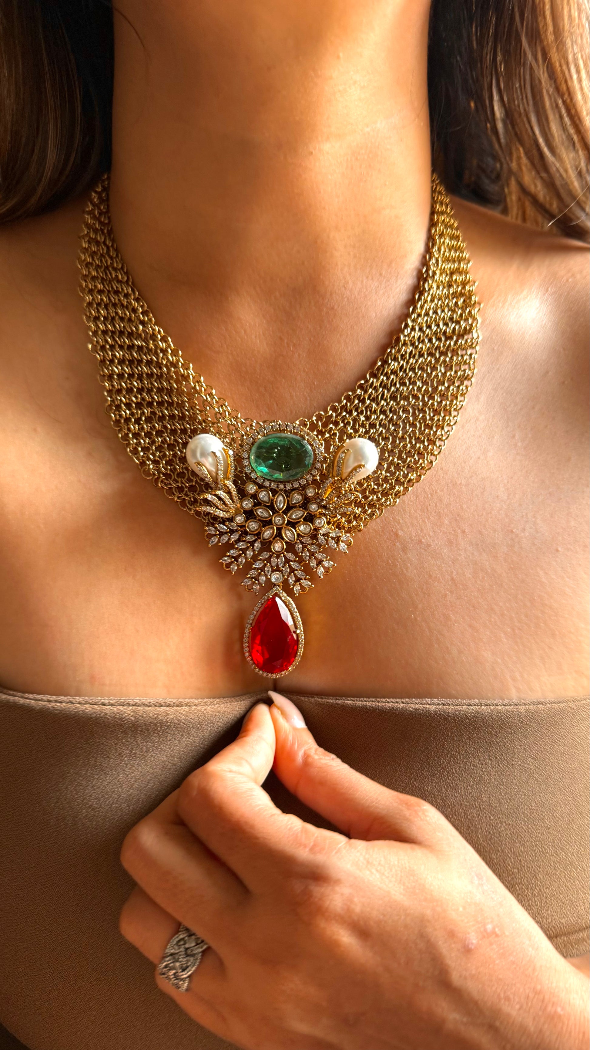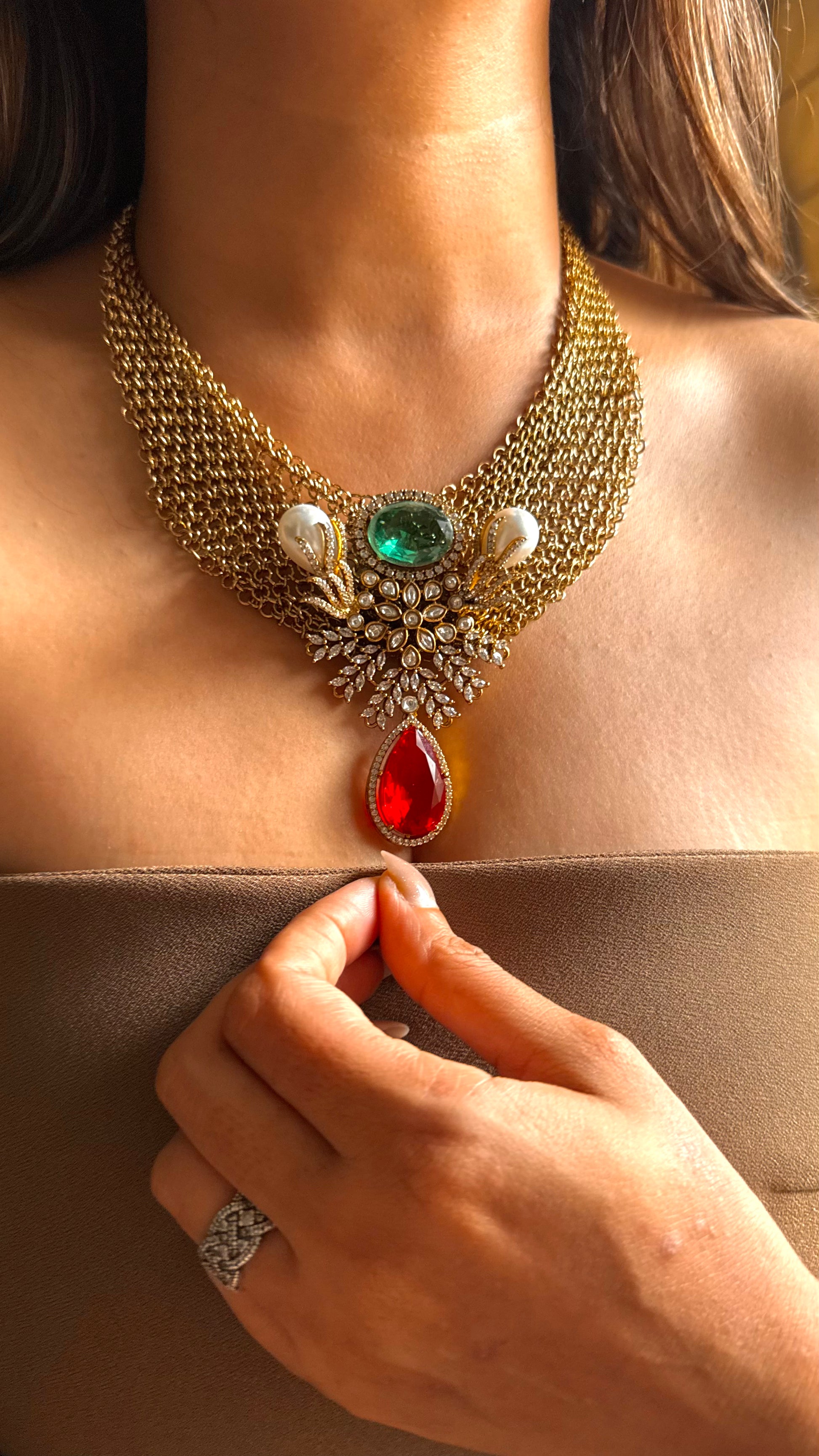 Radhika Sabhyasachi inspired emerald & ruby collar set
