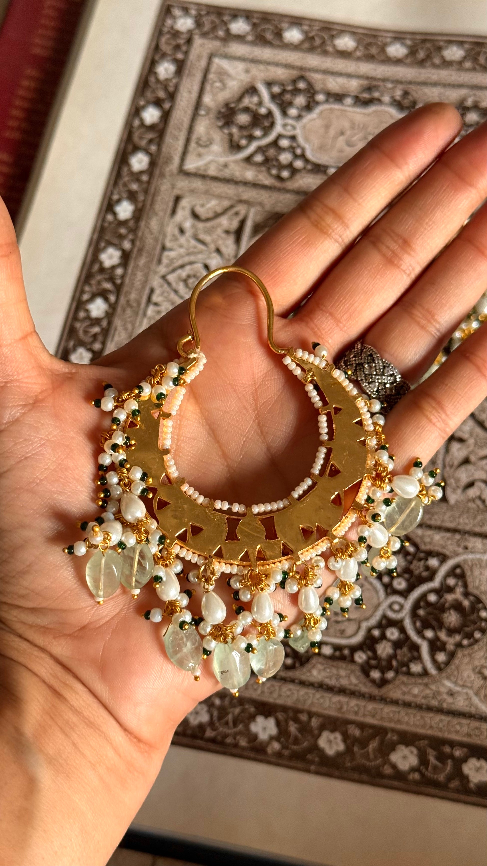 Paachi rani pink & emerald rajwada earrings with mint drop